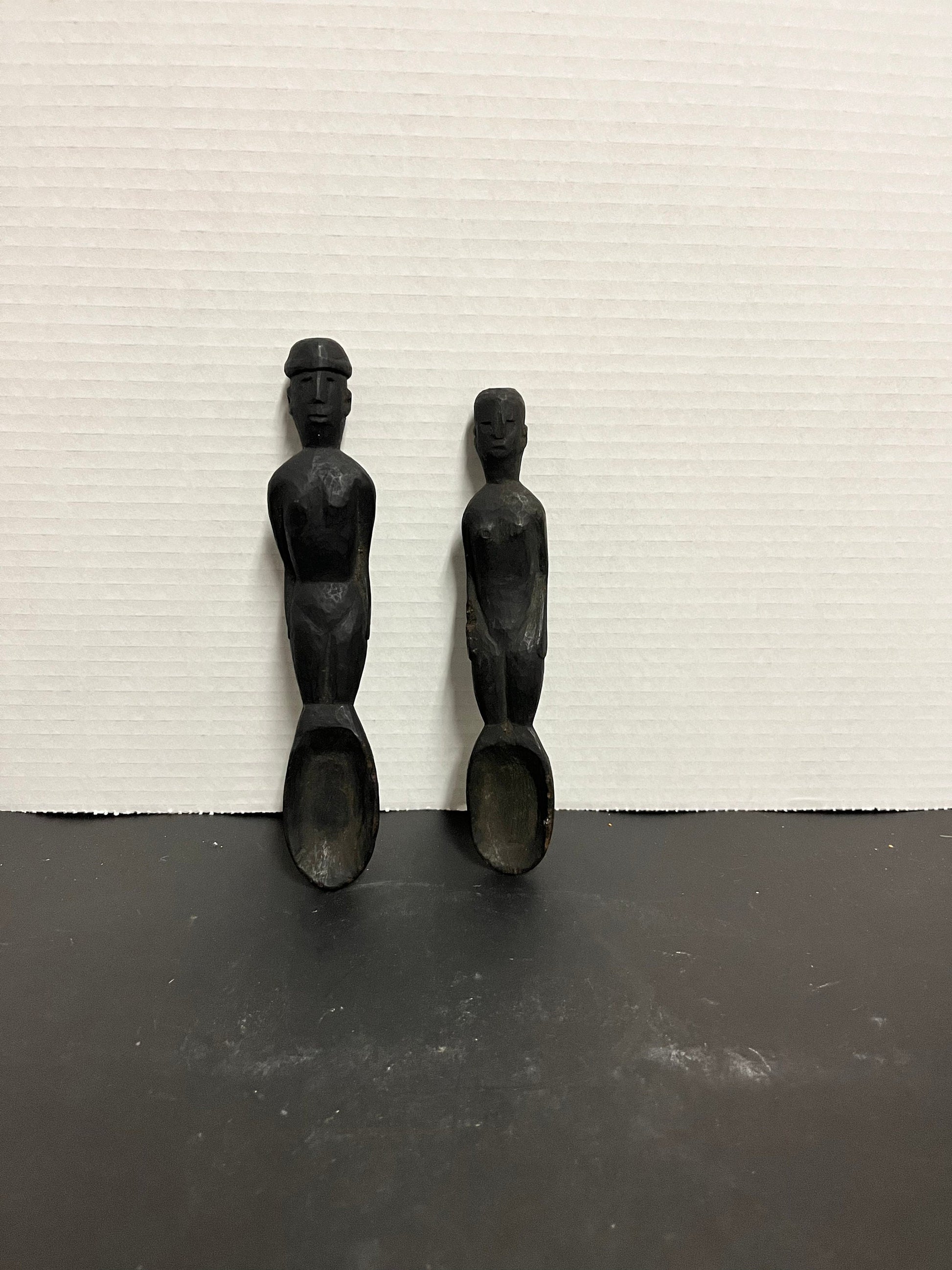 Museum quality African, most likely Ethiopian antique, authentic ceremonial would spoons, depicting, man and woman - 7 and 8 inches long
