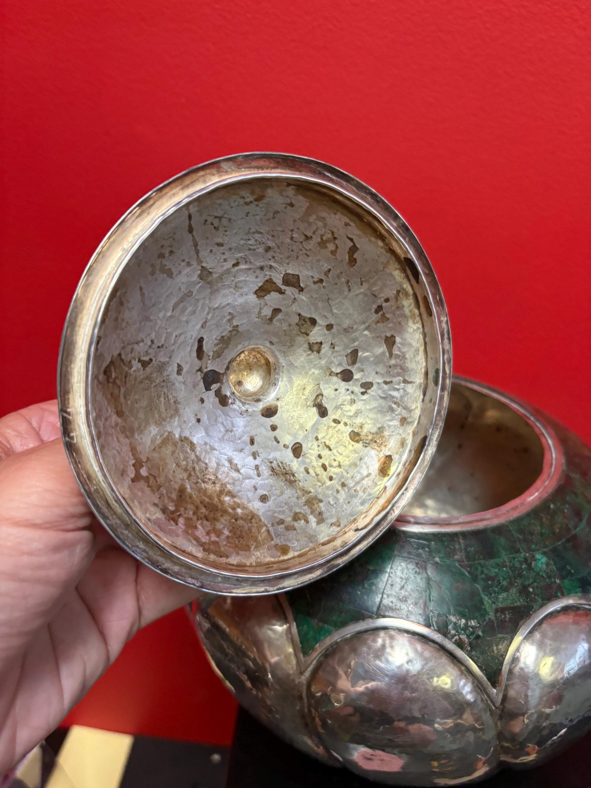 Museum quality los Costillo taxaco Mexico silver and malachite style finish approx 7 inches tall wow 1.2 KG