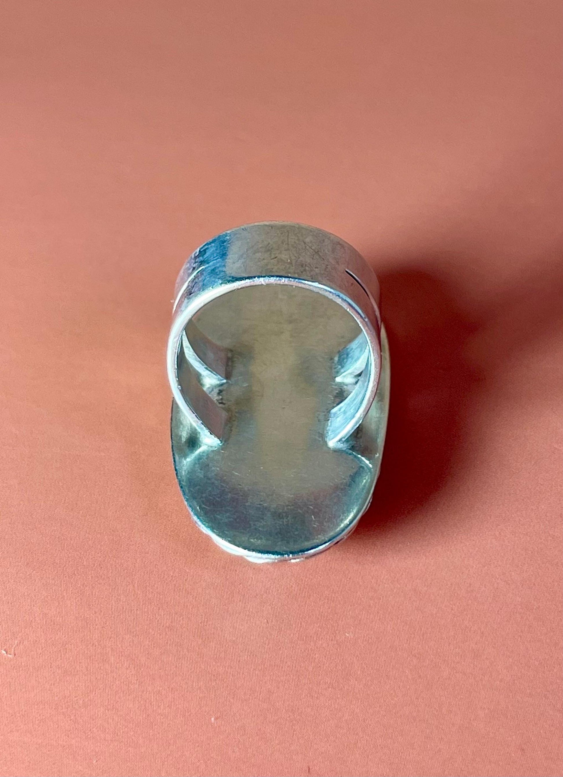 This handcrafted Navajo ring features a vibrant turquoise stone set in untested silver, offering a unique blend of traditional craftsmanship and natural beauty.