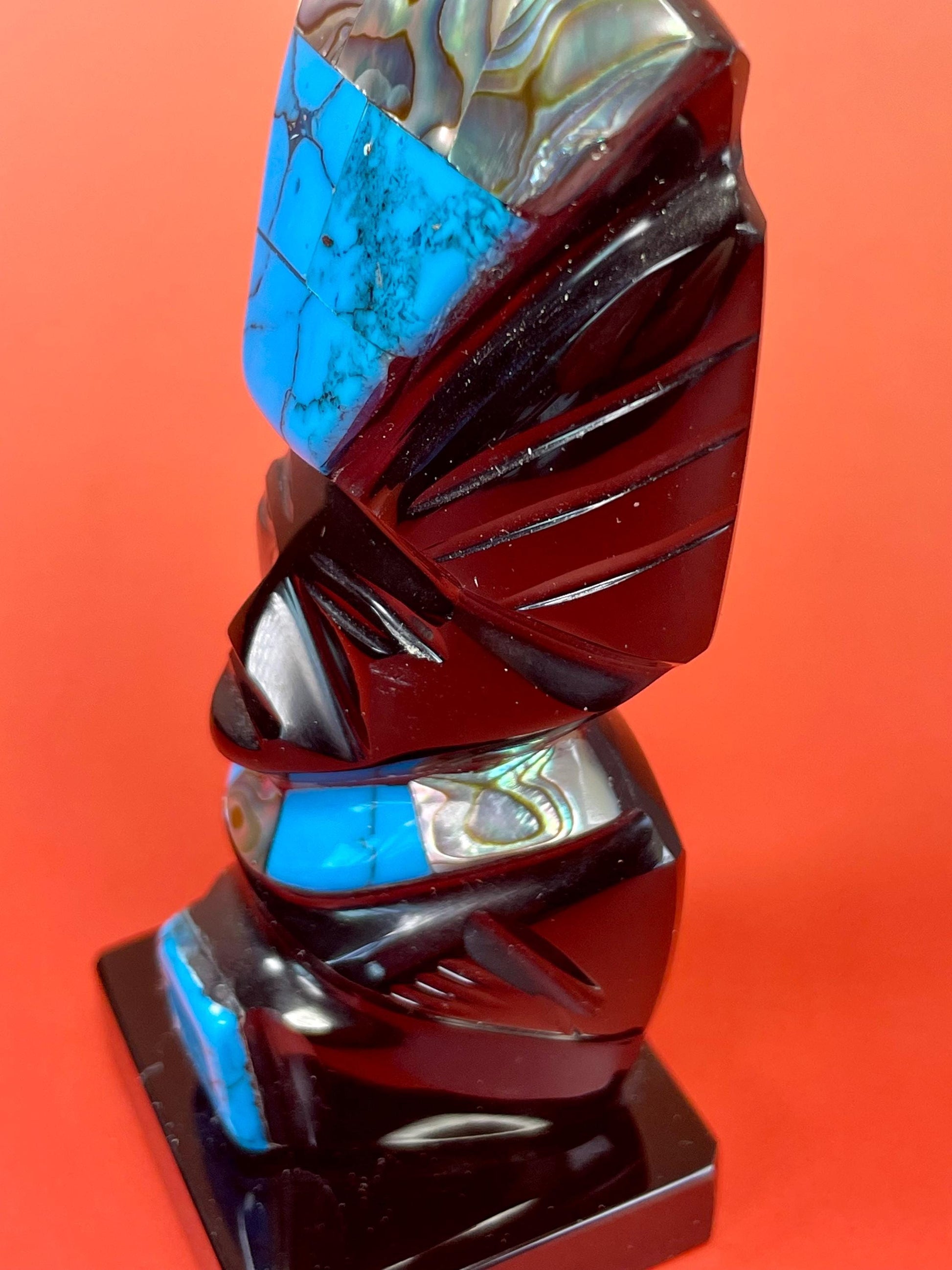 Mexican Turquoise, Obsidian and Abalone figure. 4.25 x 2.25 inches