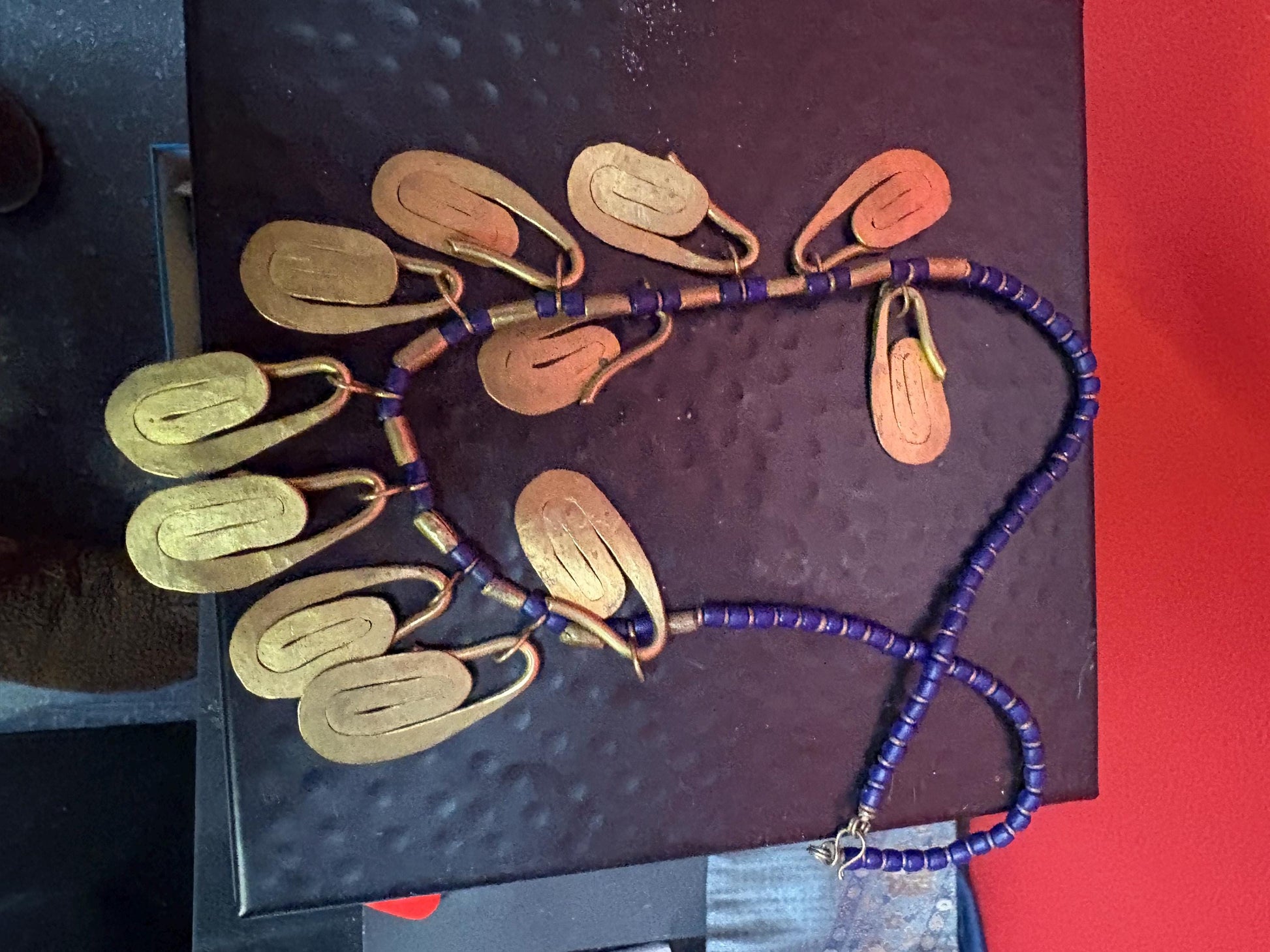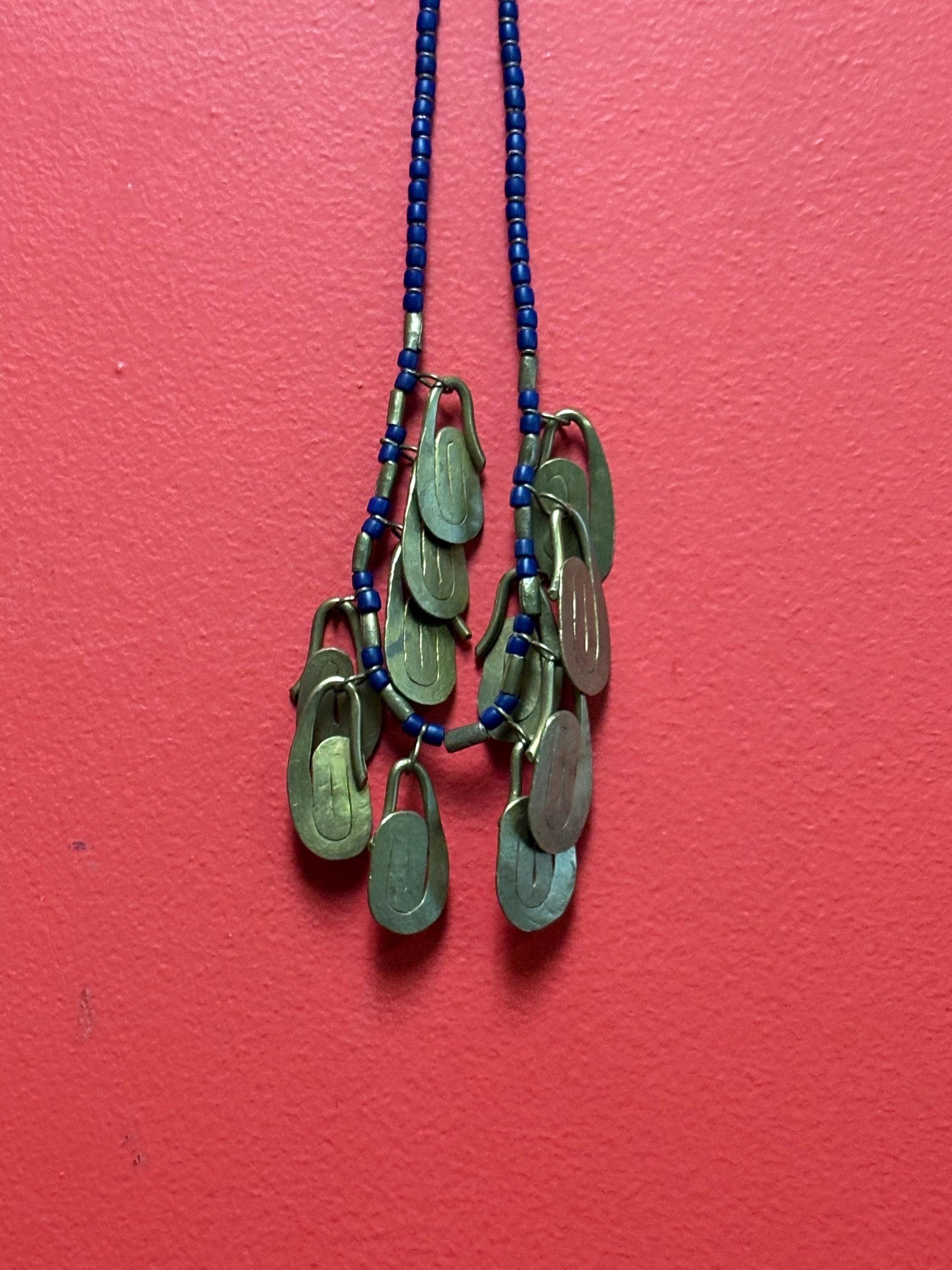 Old African trade bead and brass necklace approx 20 inches long really unique piece