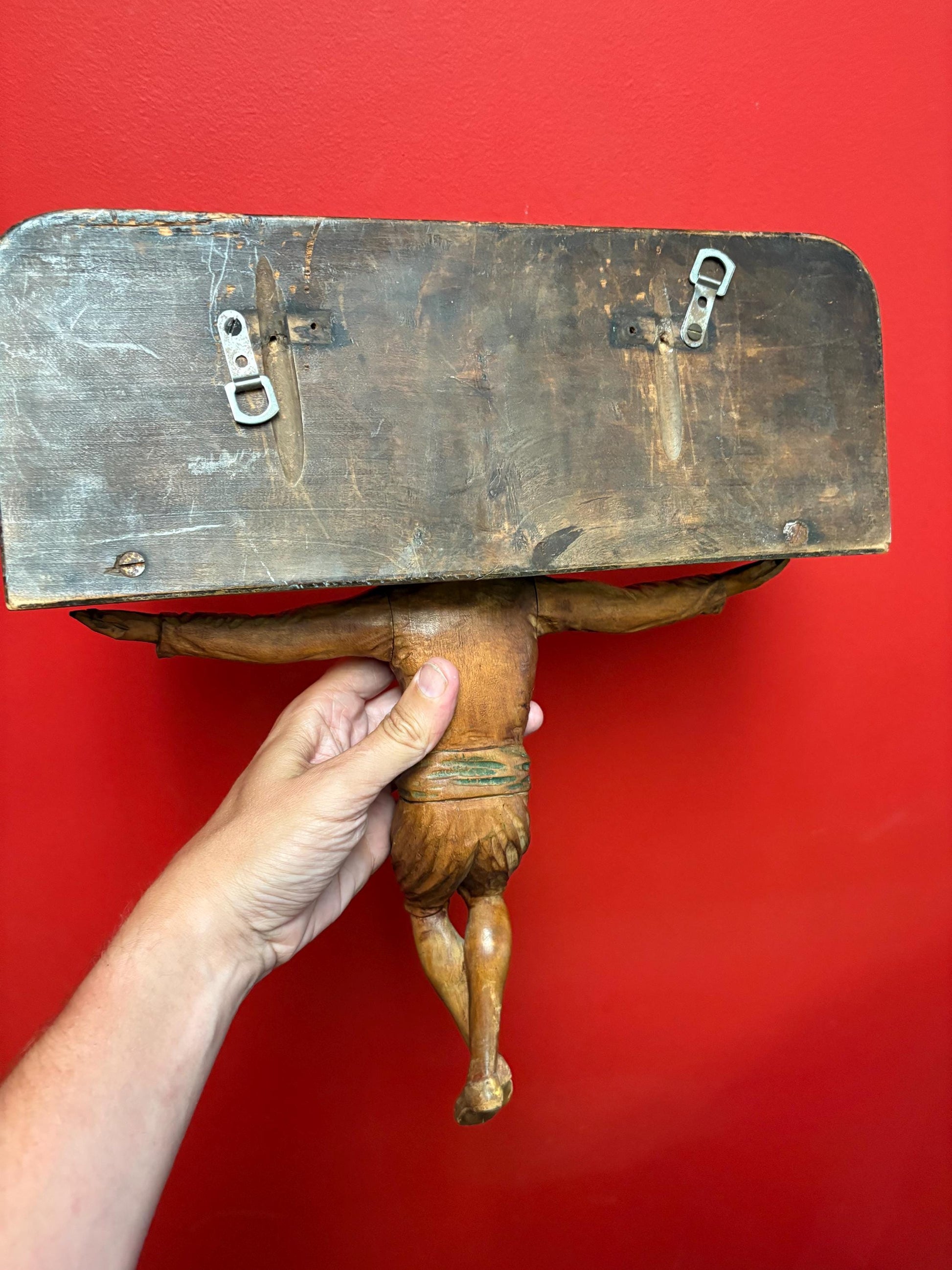 Outstanding antique 17 x 14 inch wide pipe holder Persian religious piece of art tobacco great condition hangs wow