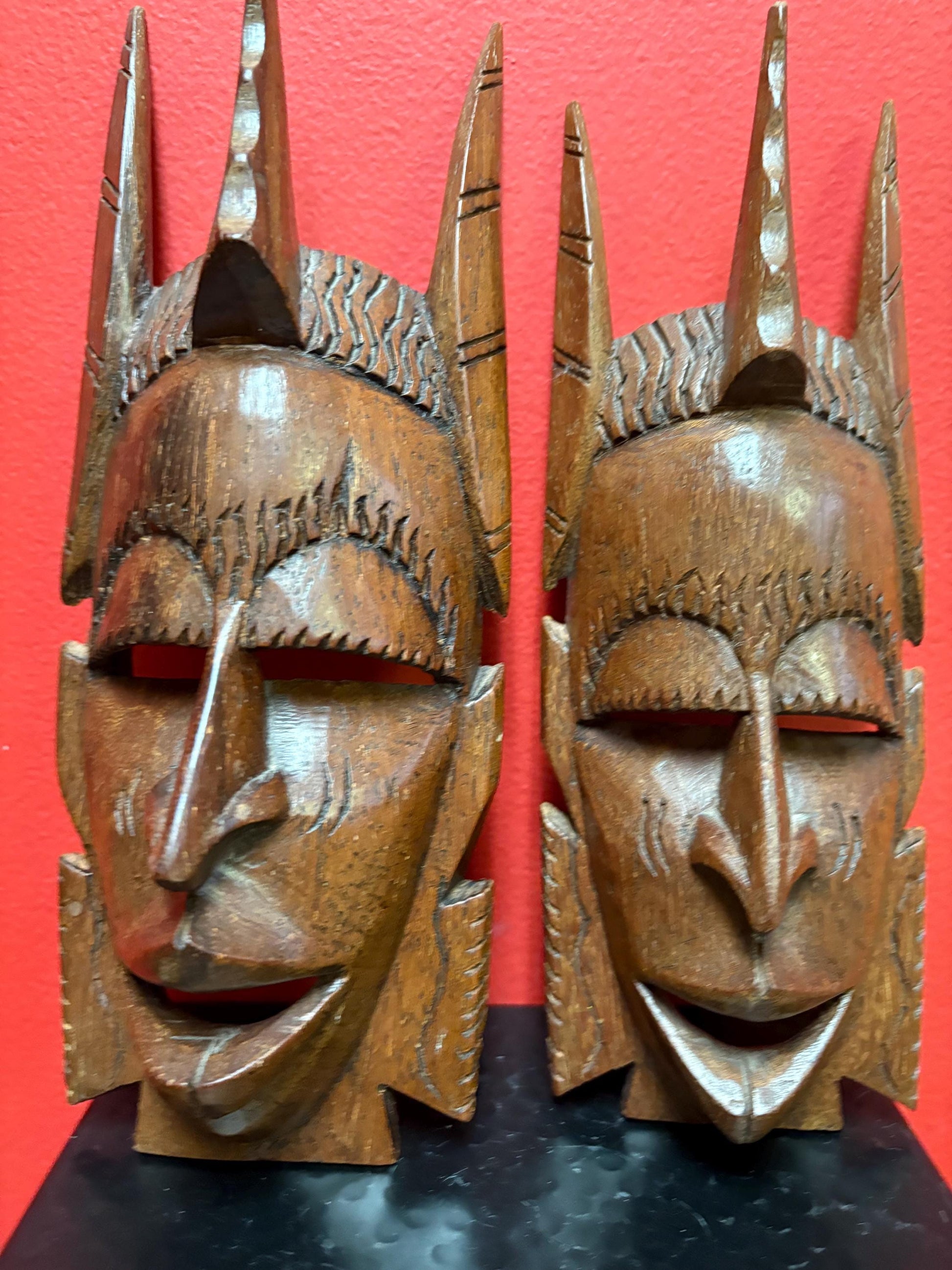 Pair of cool Asian masks in good condition - 10 and 11 inches tall and ready to hang