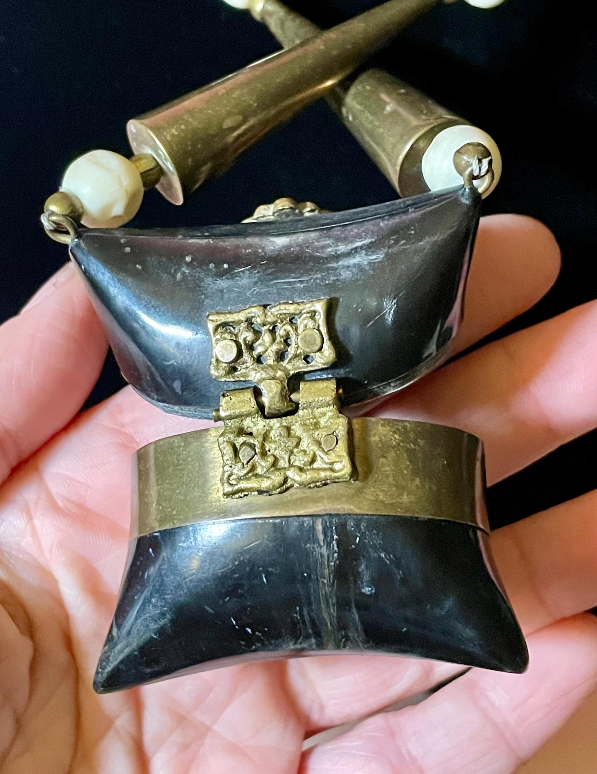 Persian Bone, Brass and Horn Necklace with Mini Purse