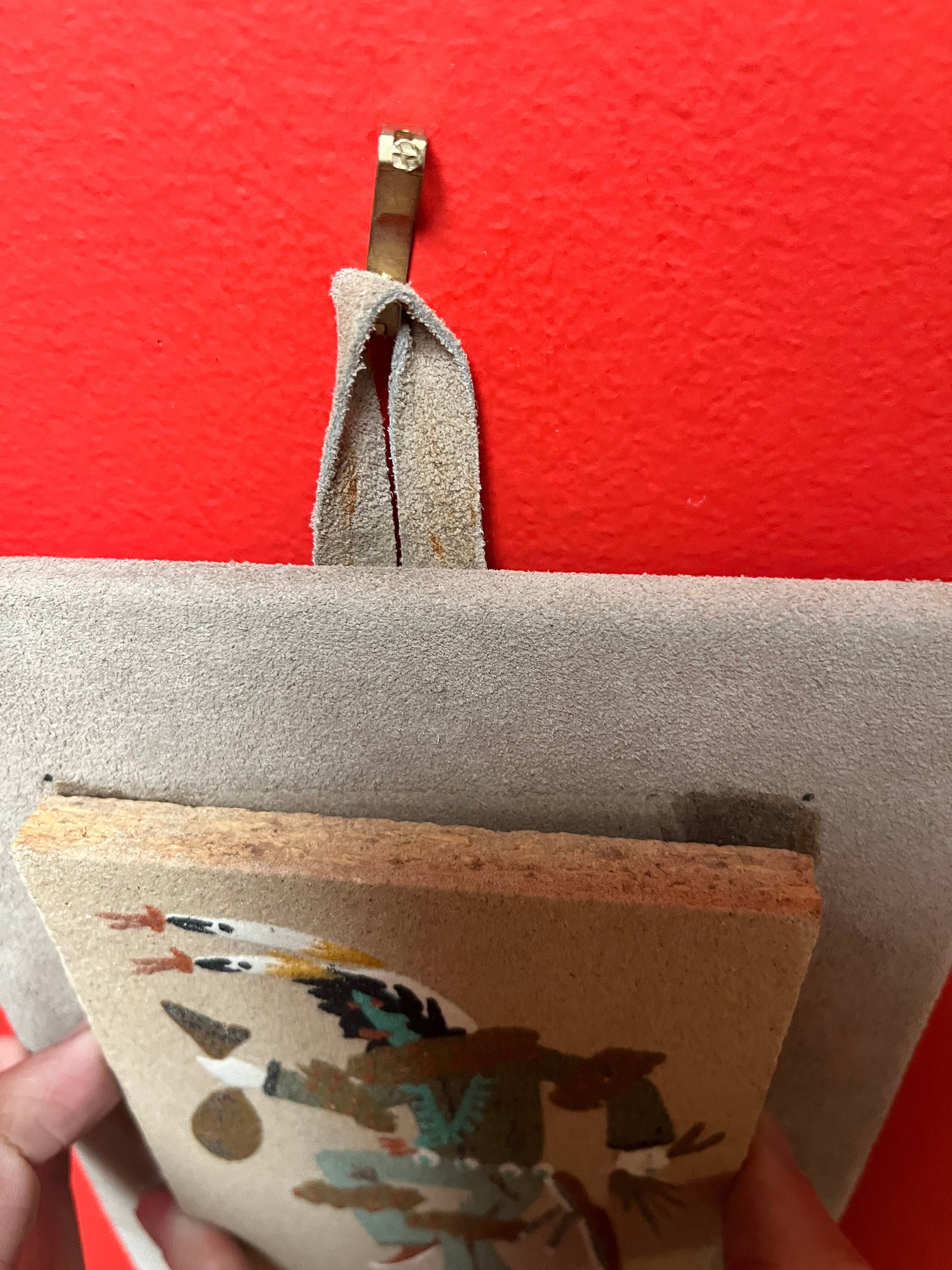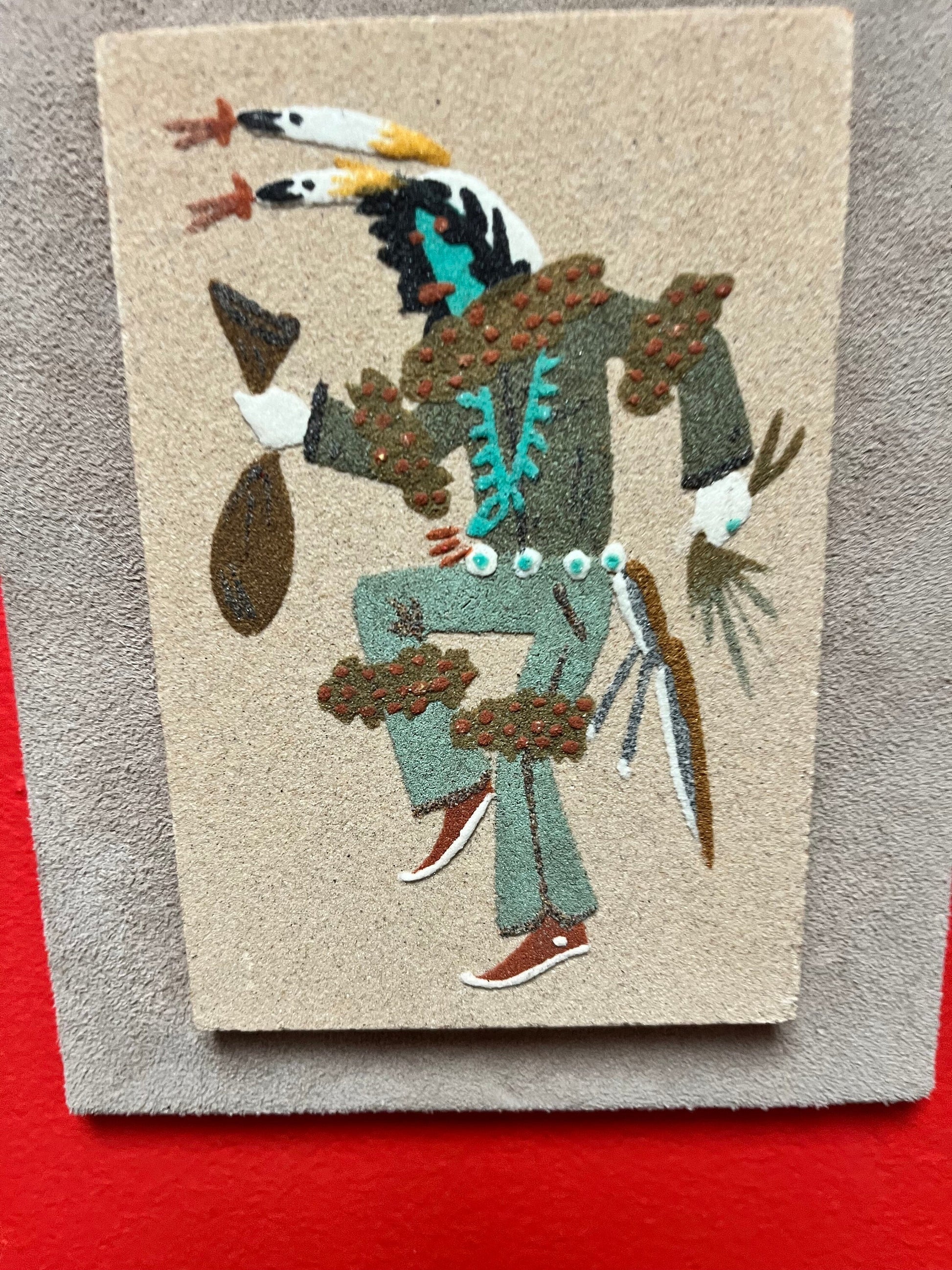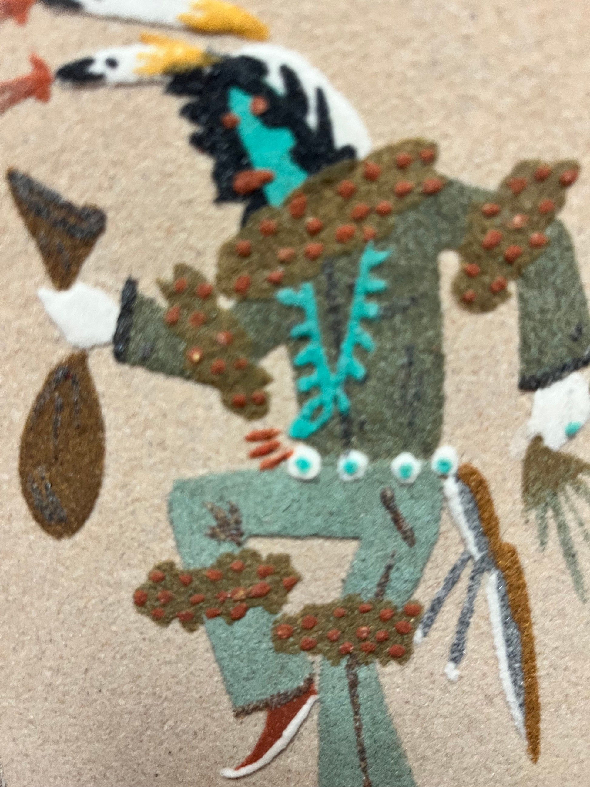 Pretty 8 x 6 antique authentic Navajo sand painting signed with info on back and frame as is frame