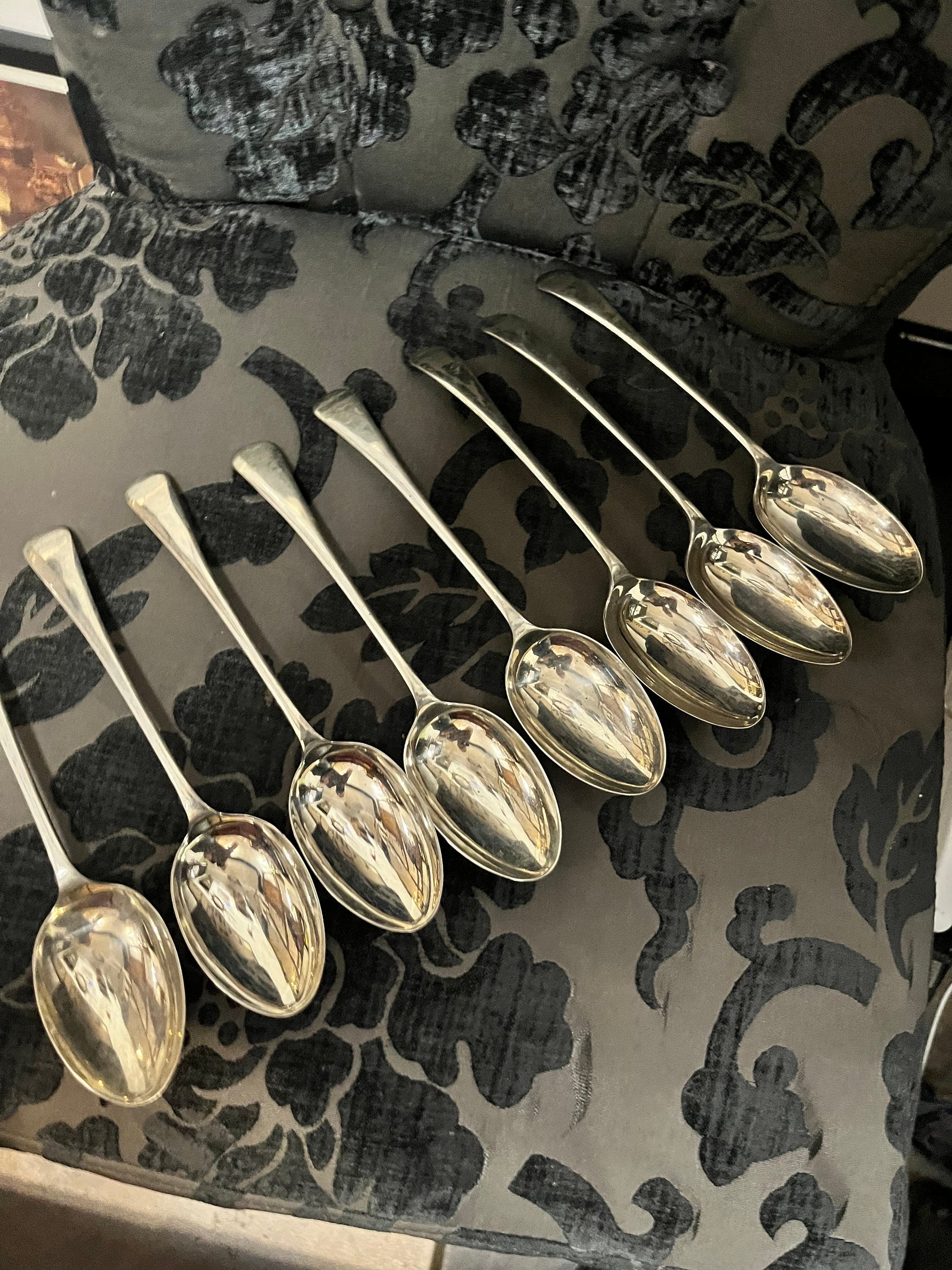 Set 8 English Antique silver plated spoons8 a half inches long each Good condition and ready to use