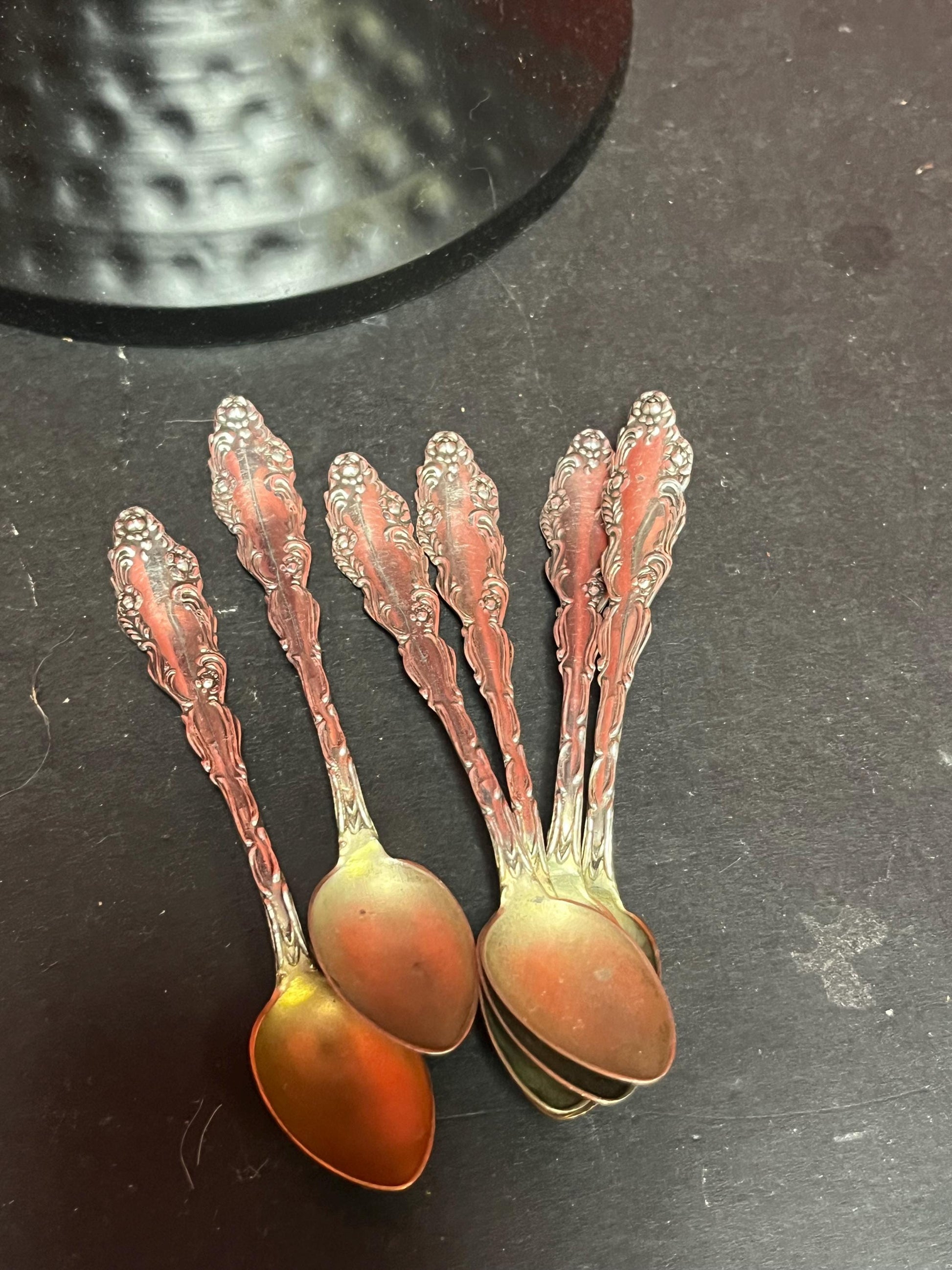 Set of six lovely English sterling hallmarked coffee spoons - 4 inches long