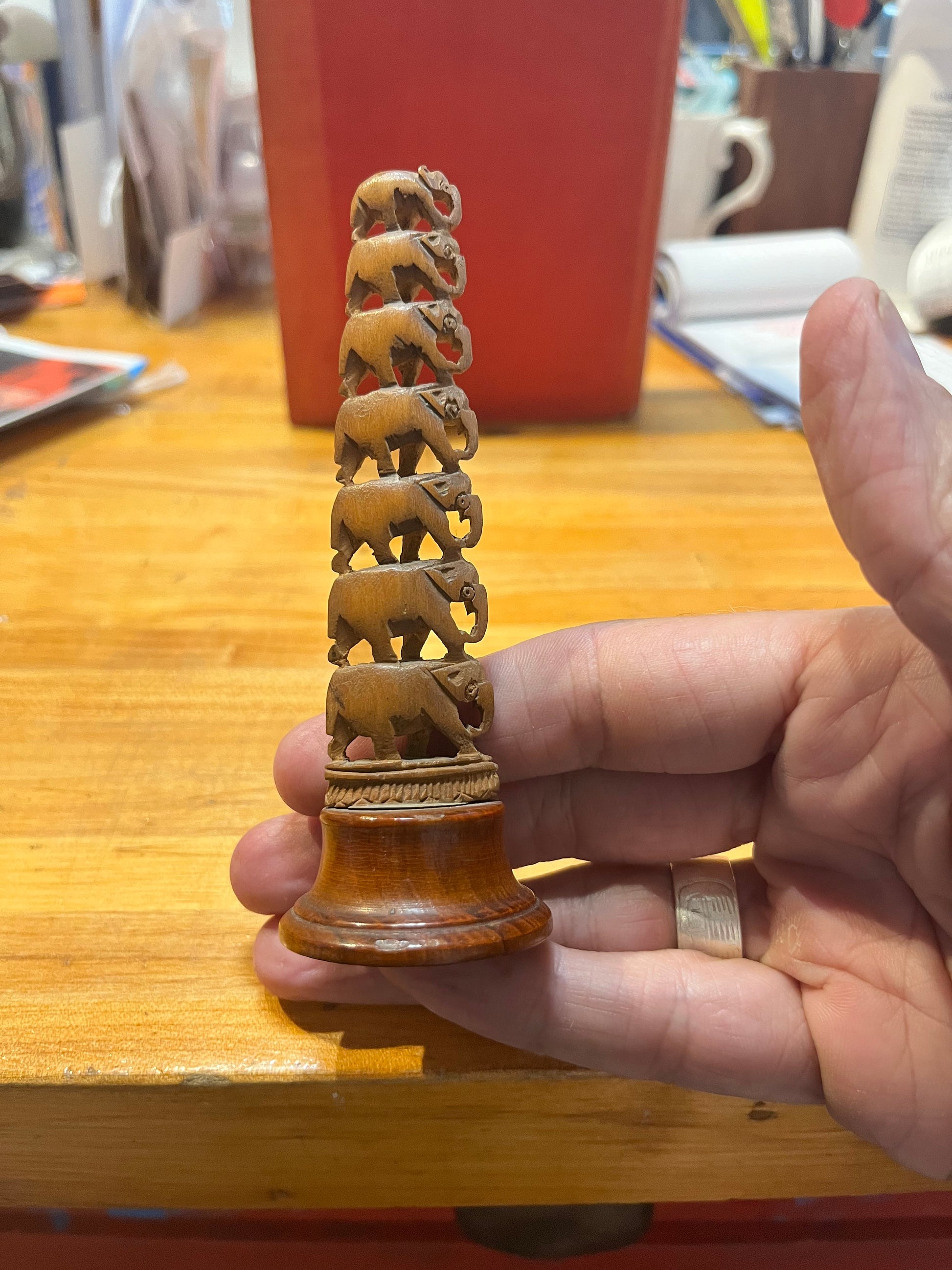 Sexy little 4.5 inch Asian carved teak elephants stacking statue well detailed 7 elephants wow detail super price great gift