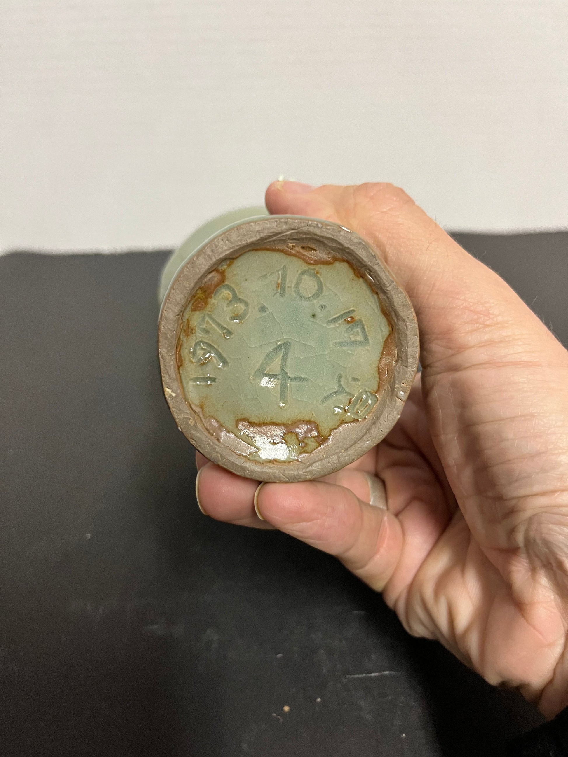 Sexy vivacious, curvy, 9 inch tall 1970s Asian celadon vase wowzers with an intense floral decoration and amazing glaze makes perfect gift