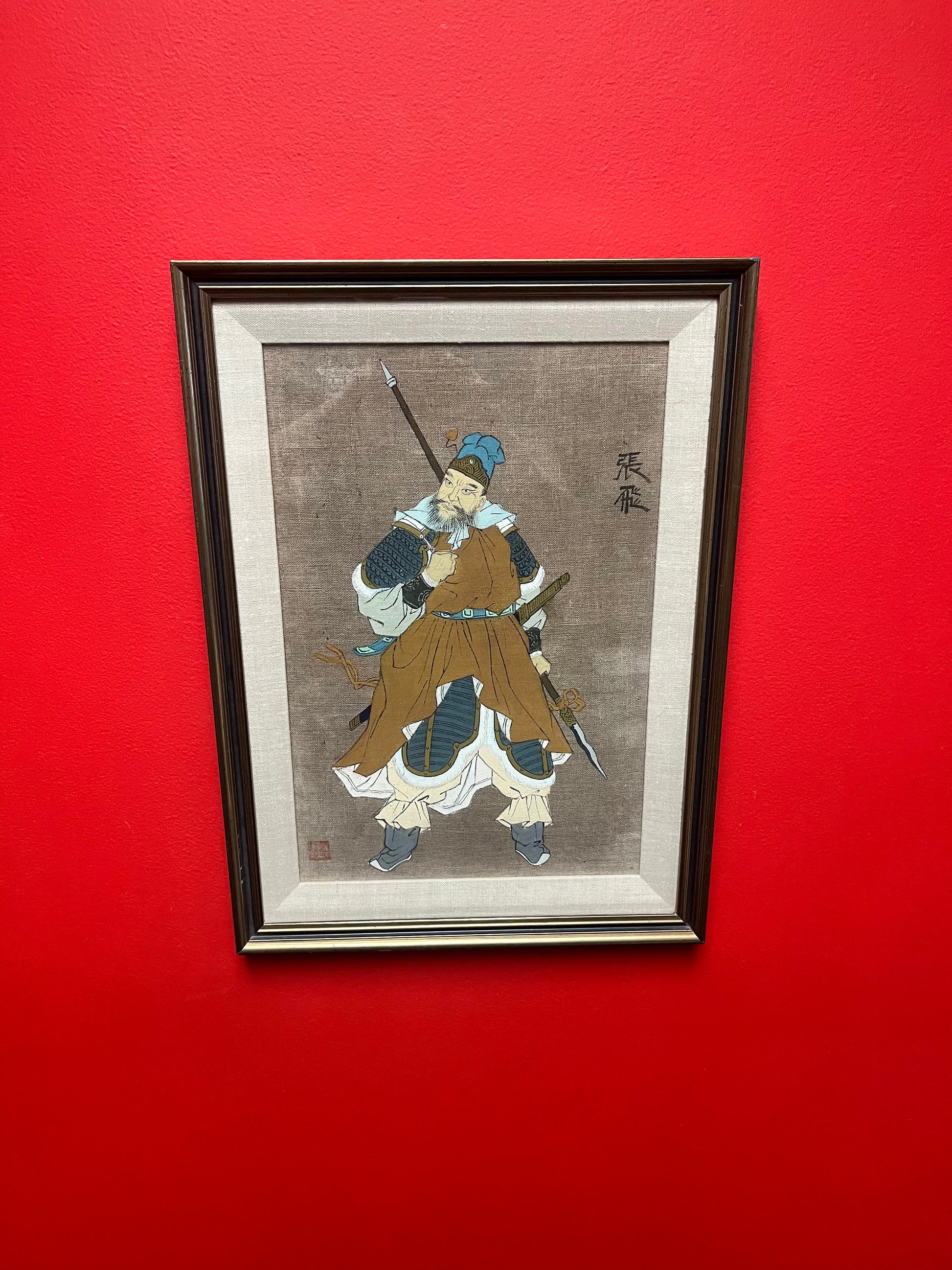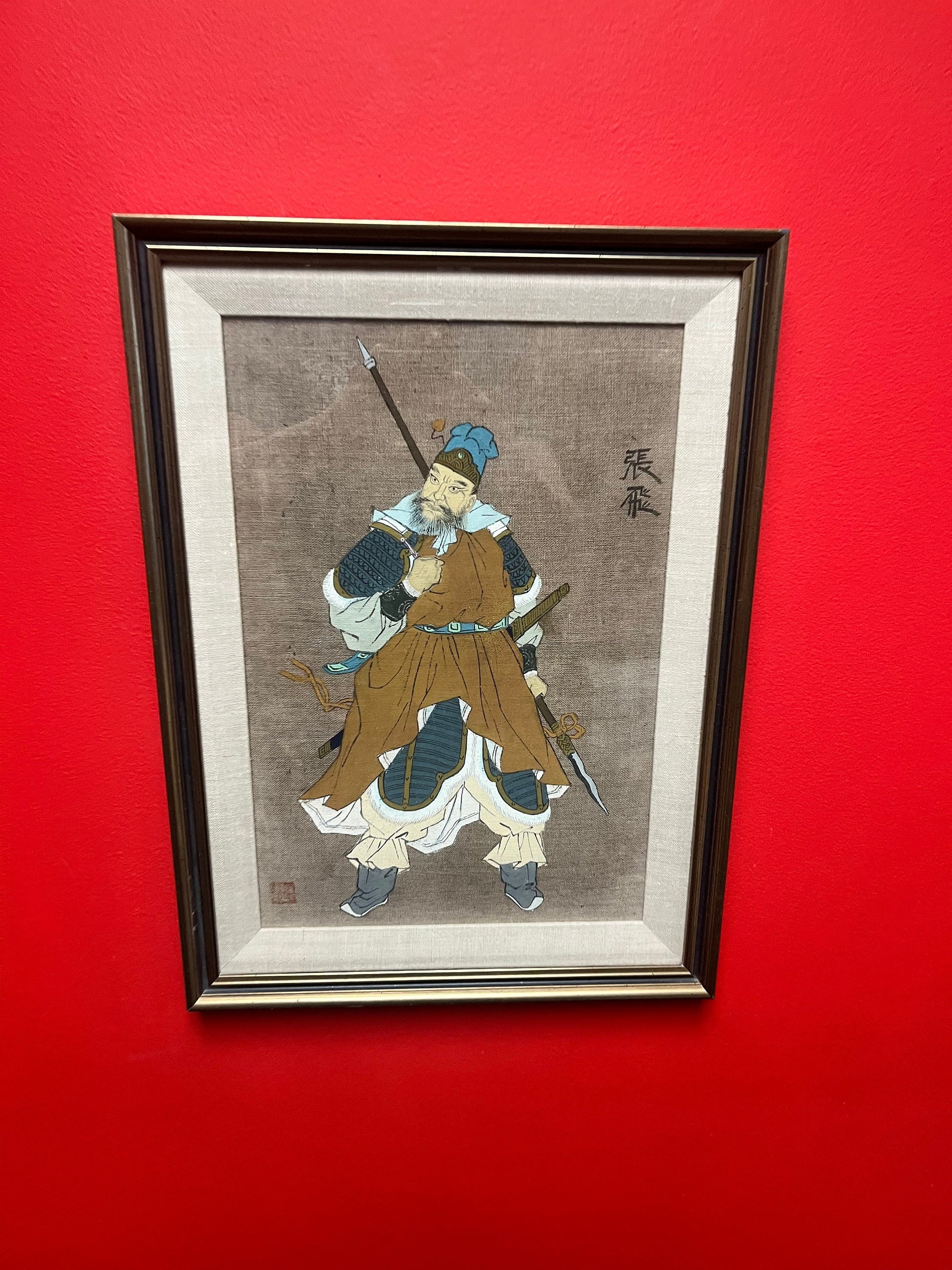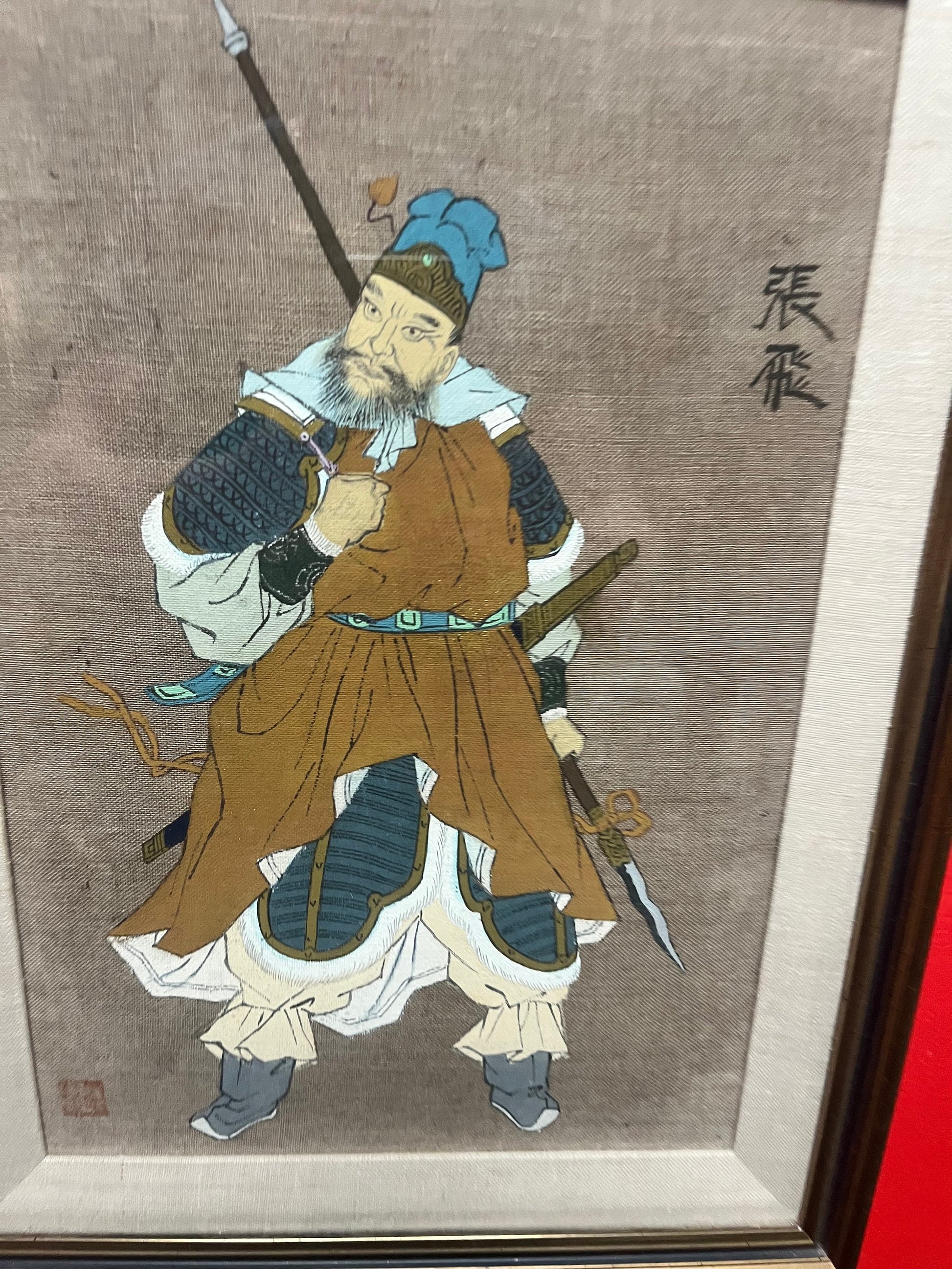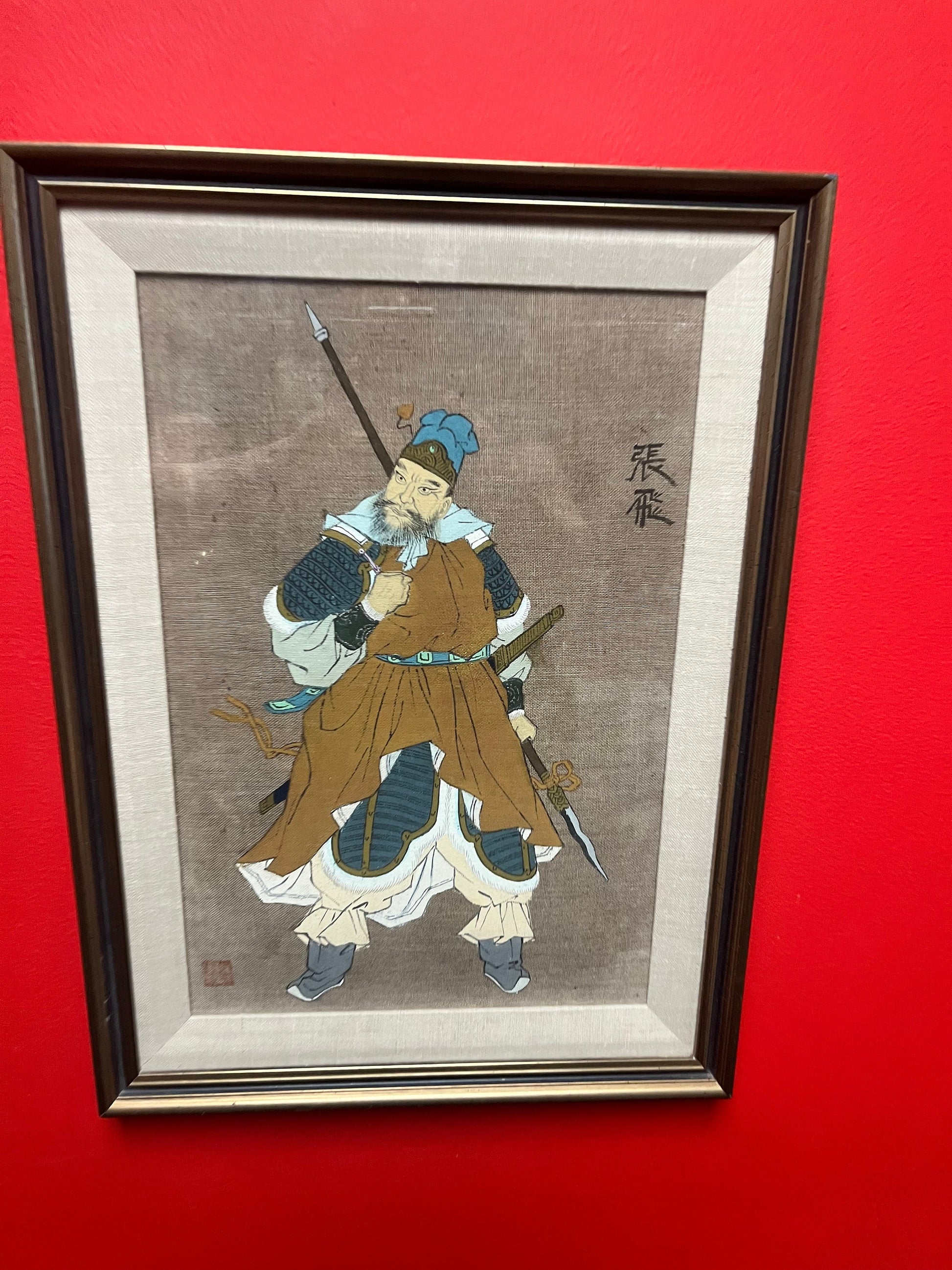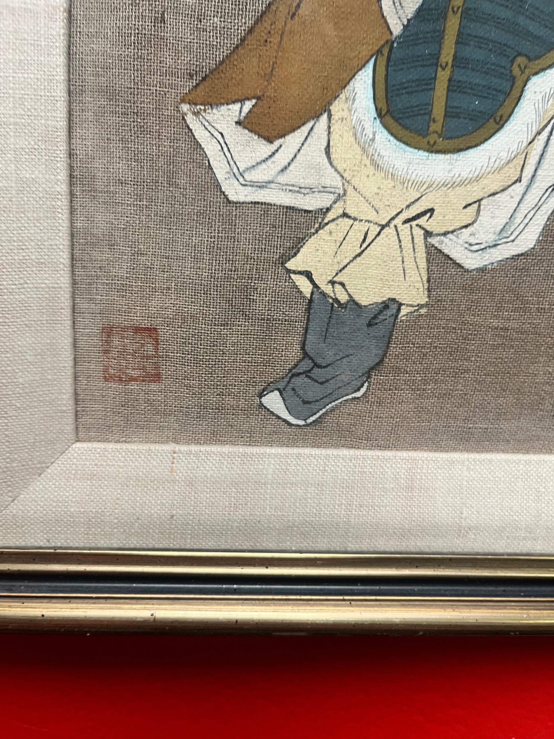 Signed fabulous 18 x 13 Japanese watercolour on linen depicting a samurai exquisite quality and condition late 1800s