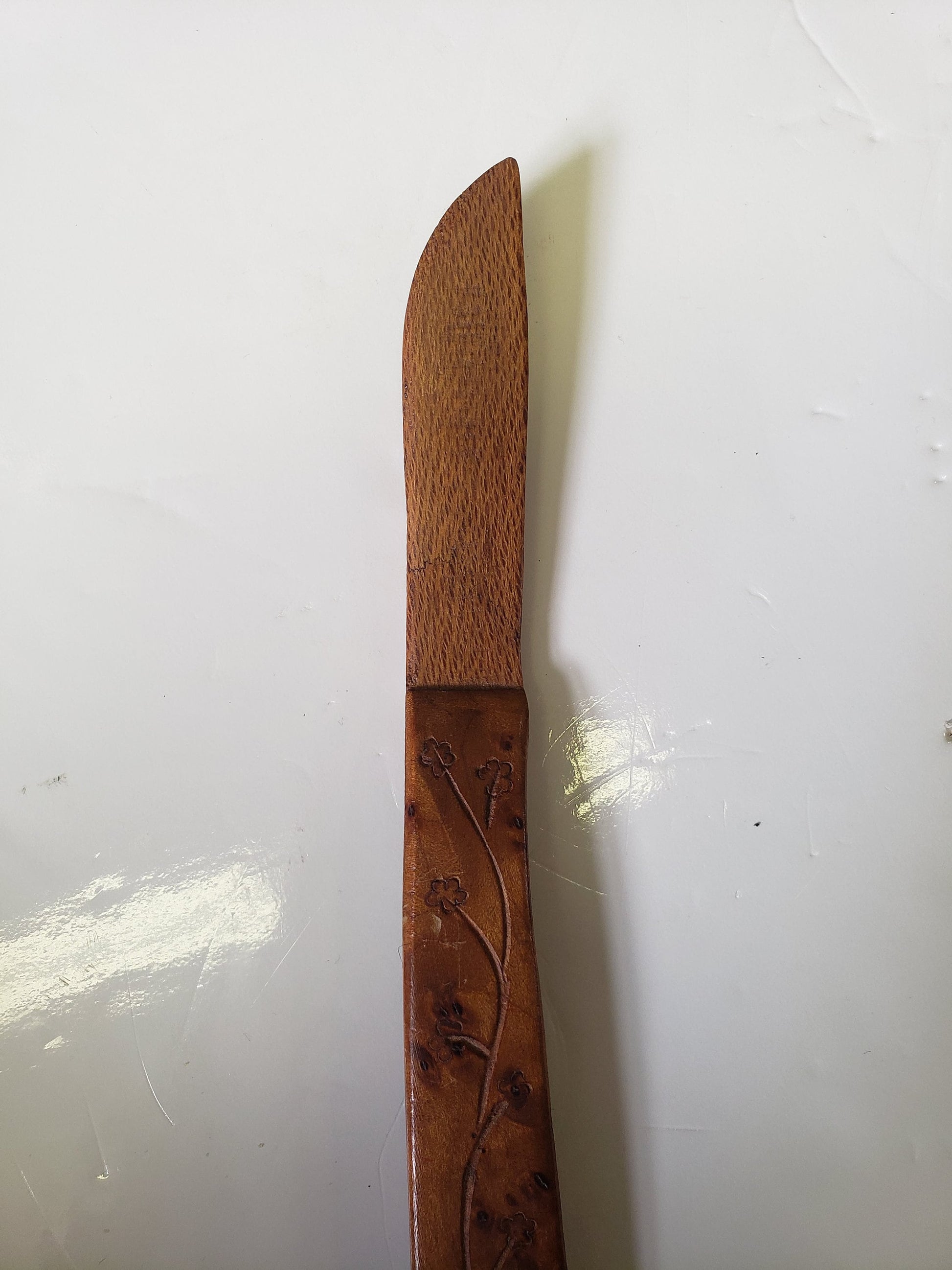 Signed Japanese Rare Engraved Fruitwood Letter Opener