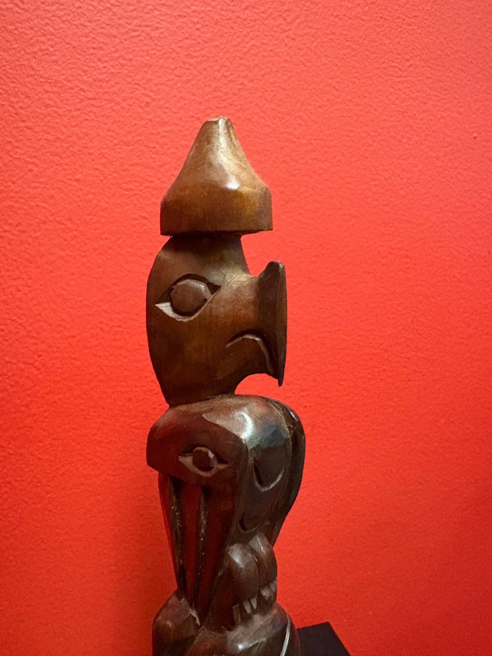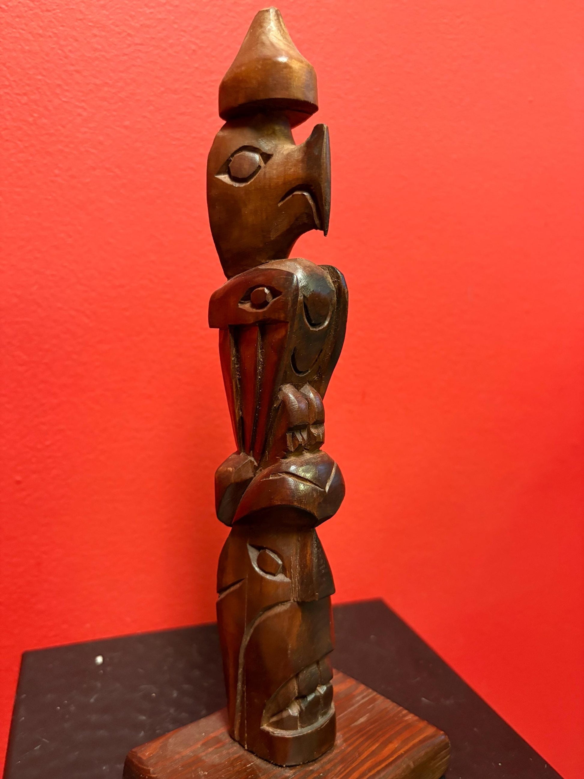 Signed stunning 10 inch carved indigenous First Nations northwest coast carved transformation totem pole with amazing detail! Great value
