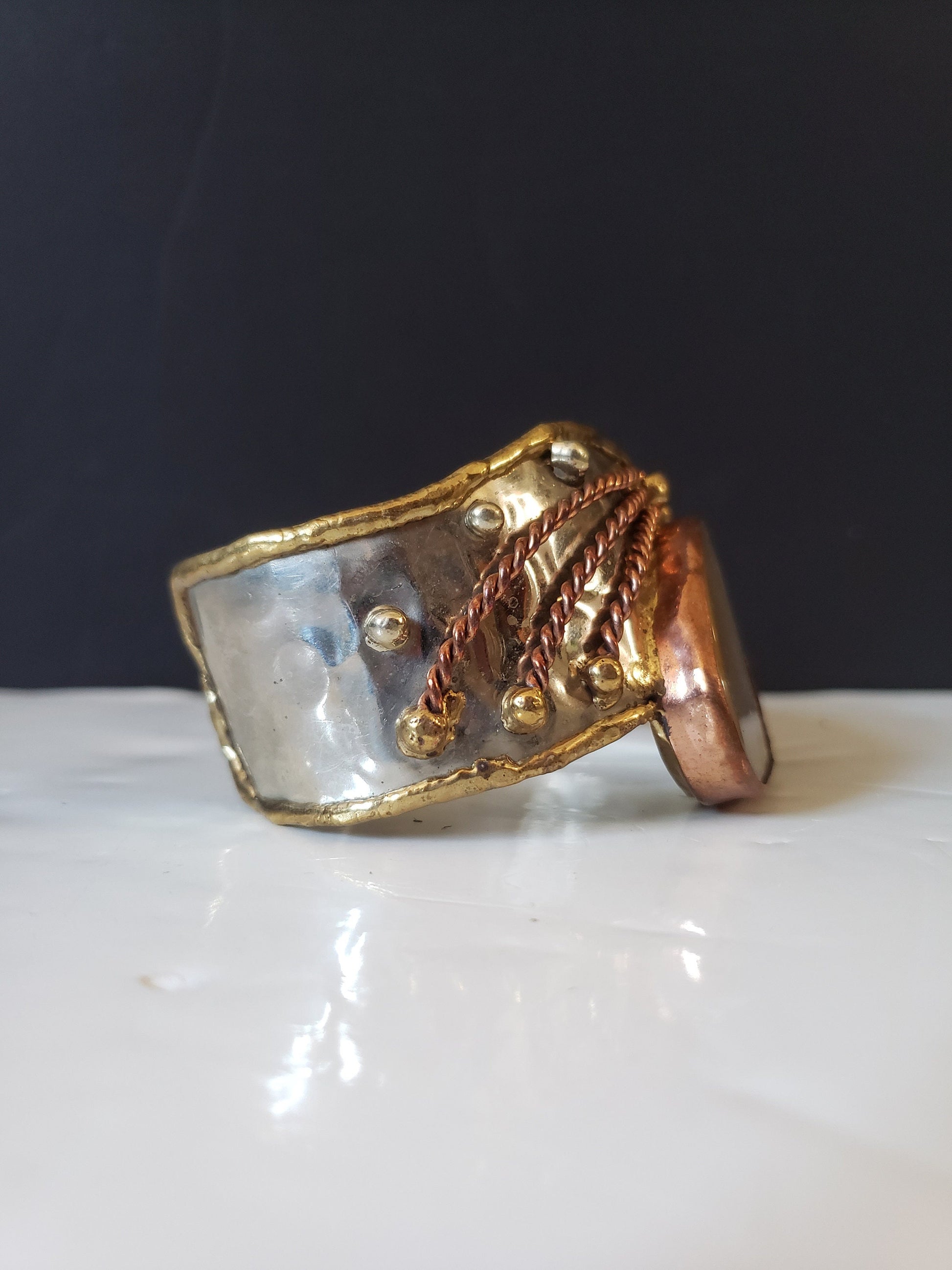 Silver-plated, Copper, and Brass Bracelet with Agate Centerpiece