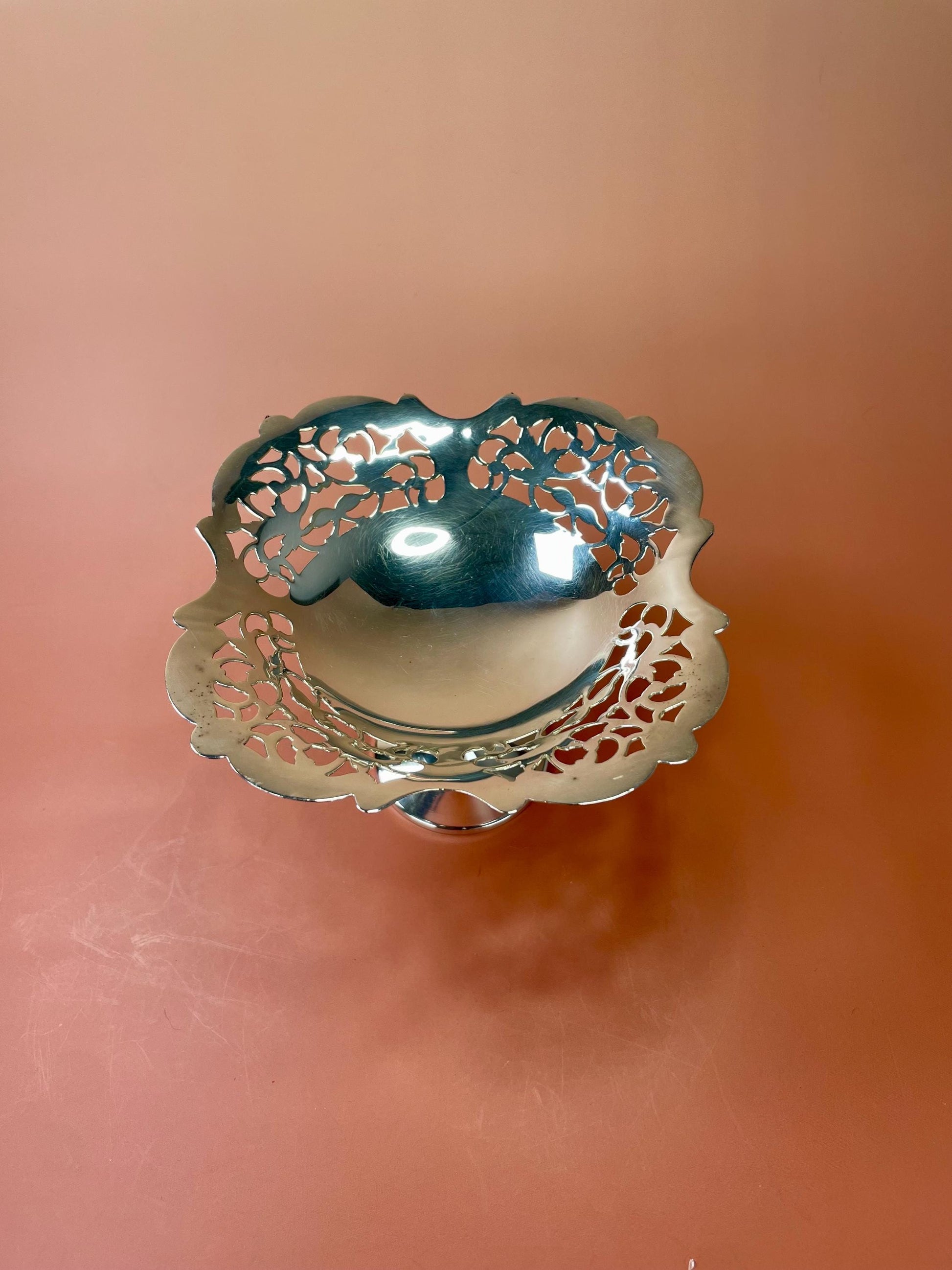 A lovely silver plated stemmed serving dish.