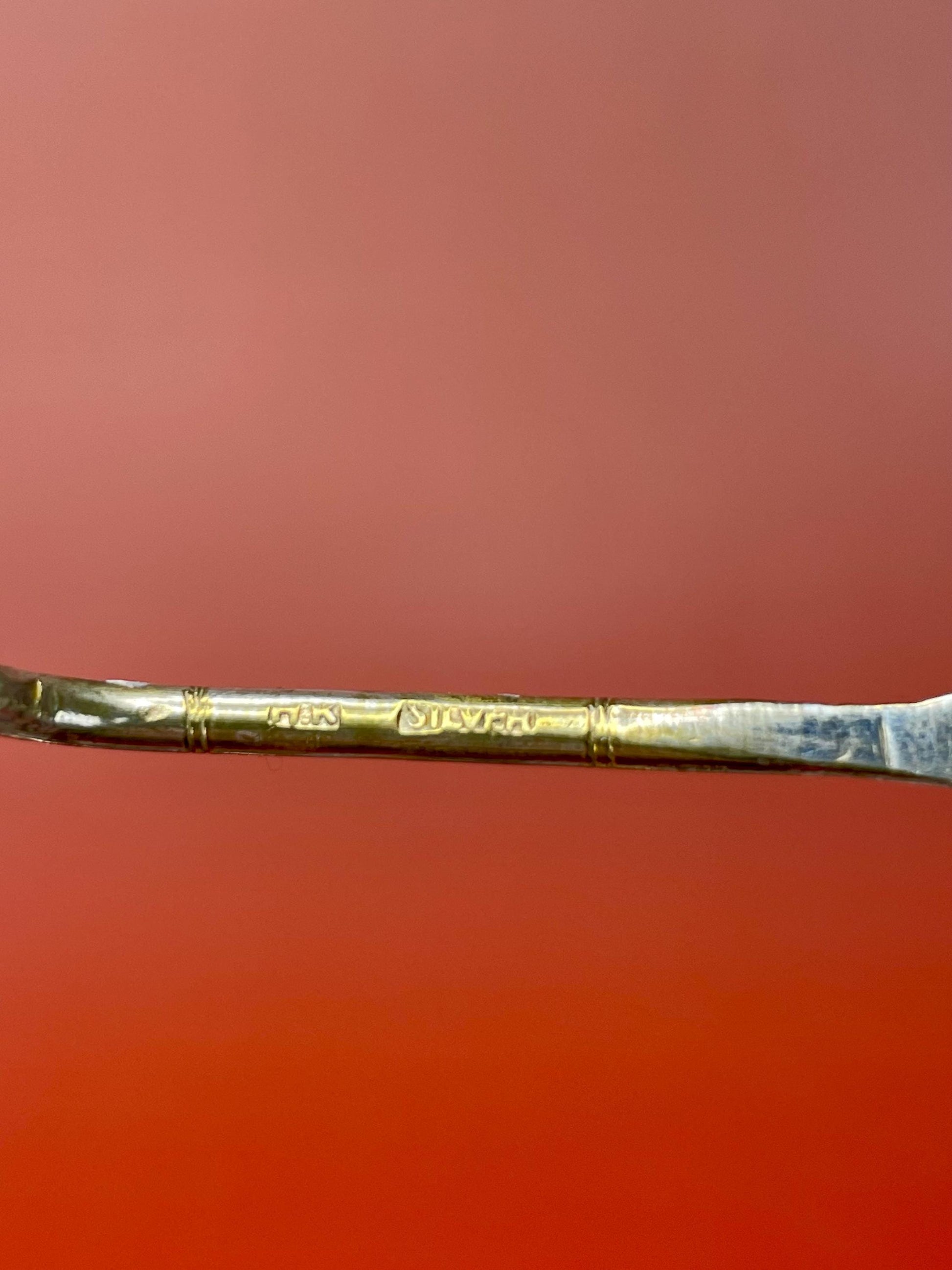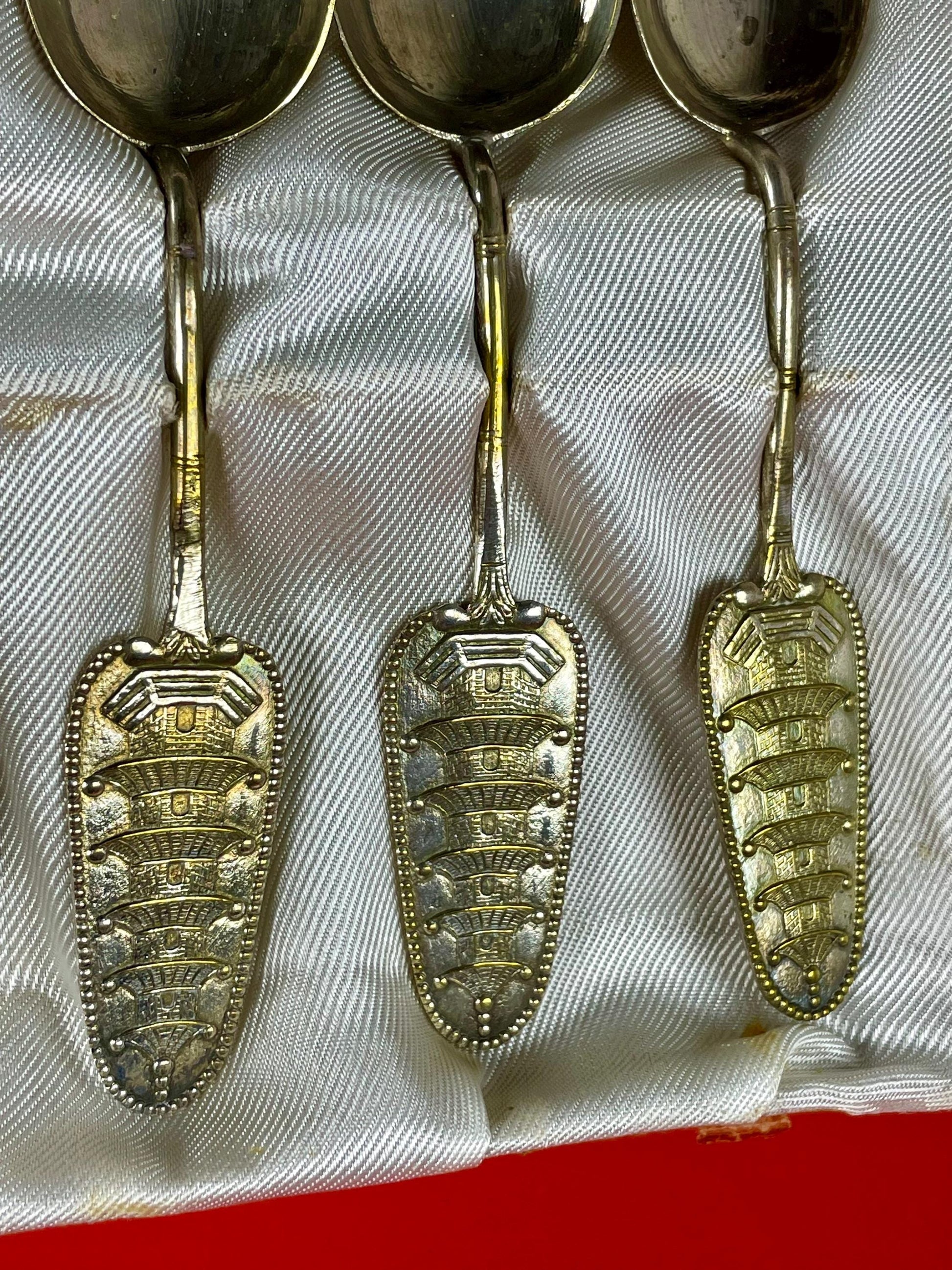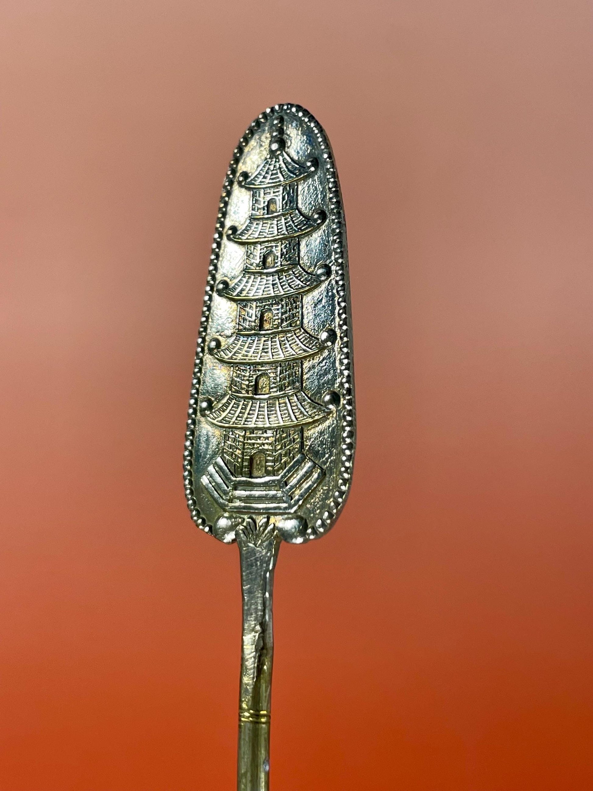 This set of Chinese sterling silver spoons, each approximately 4.75 inches long, comes neatly arranged in a stylish case, perfect for adding a touch of elegance to your table.