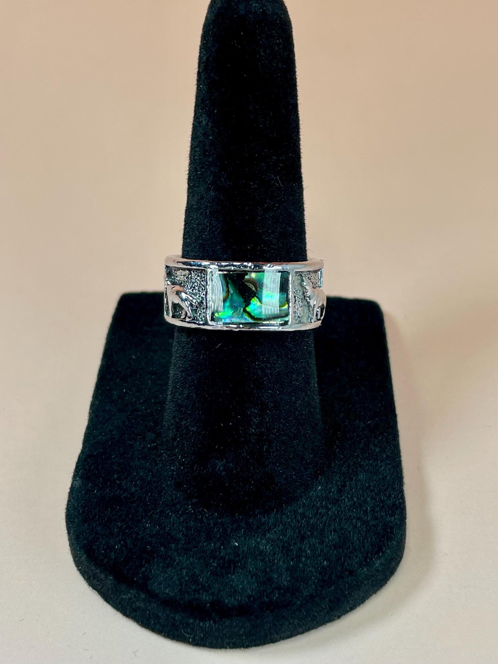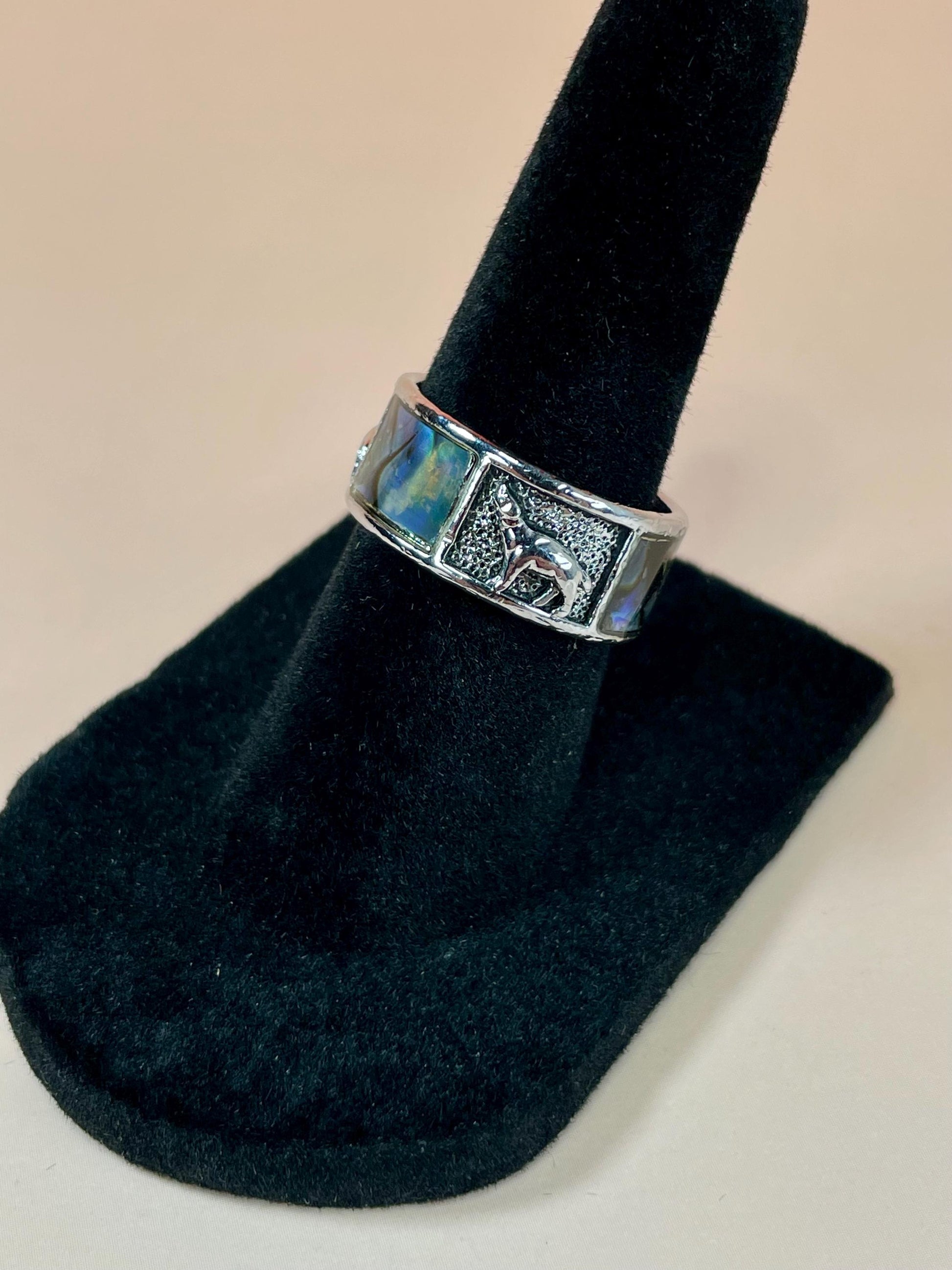 Size 6 Sterling Silver and Abalone ring Wolf Design - B
