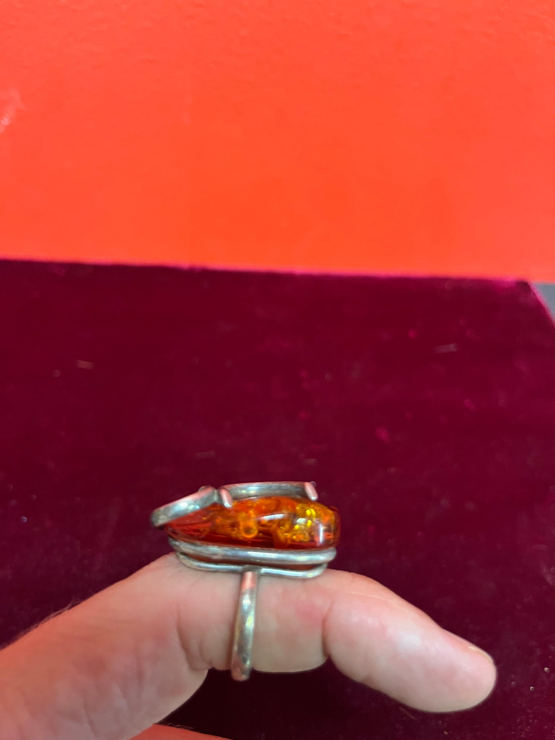 Size 7.5. Authentic Sterling and Baltic amber ring lovely design great gift value priced