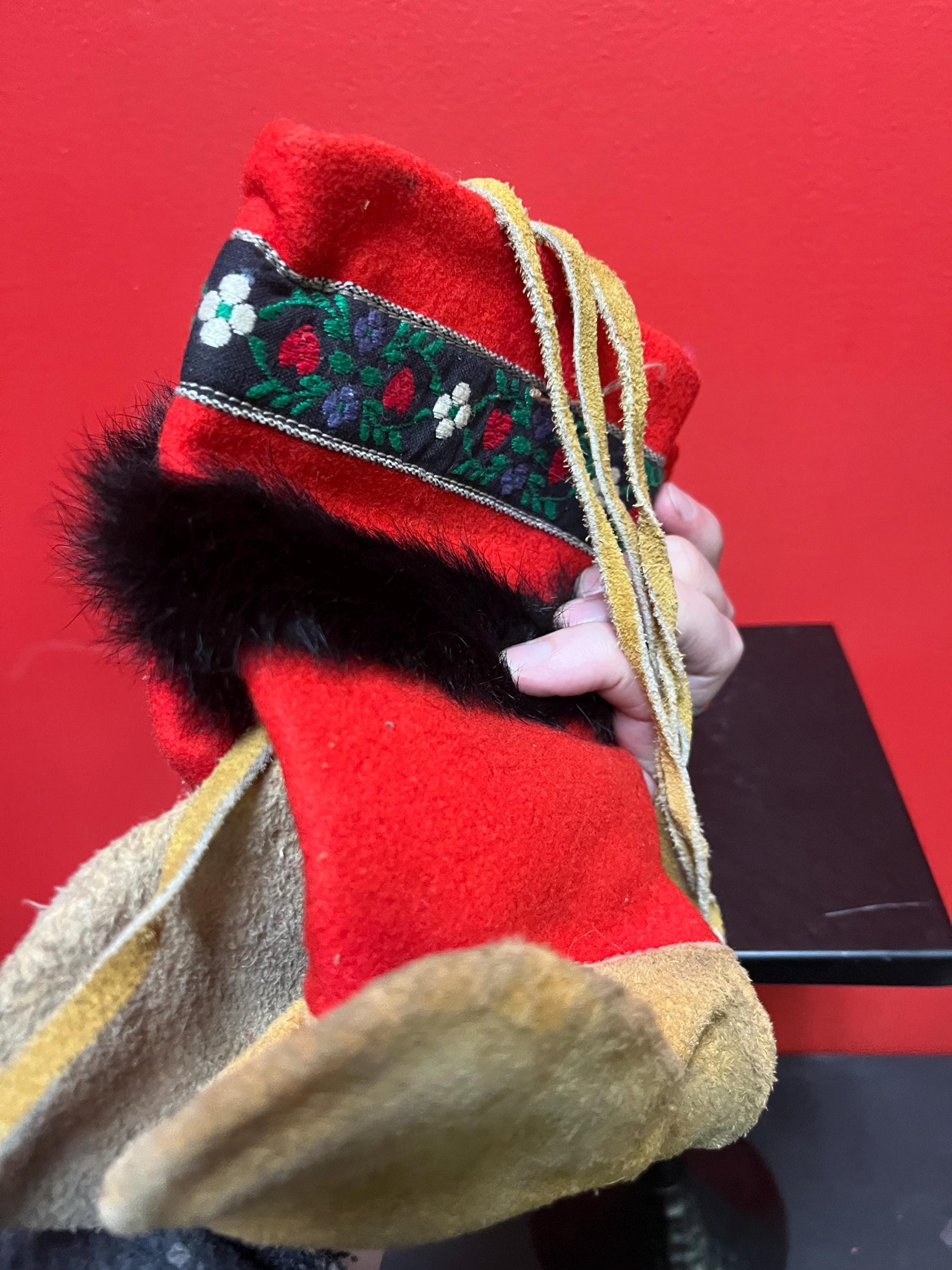 Small 5 inch long, indigenous First Nations leather and beaded moccasin shoes good condition