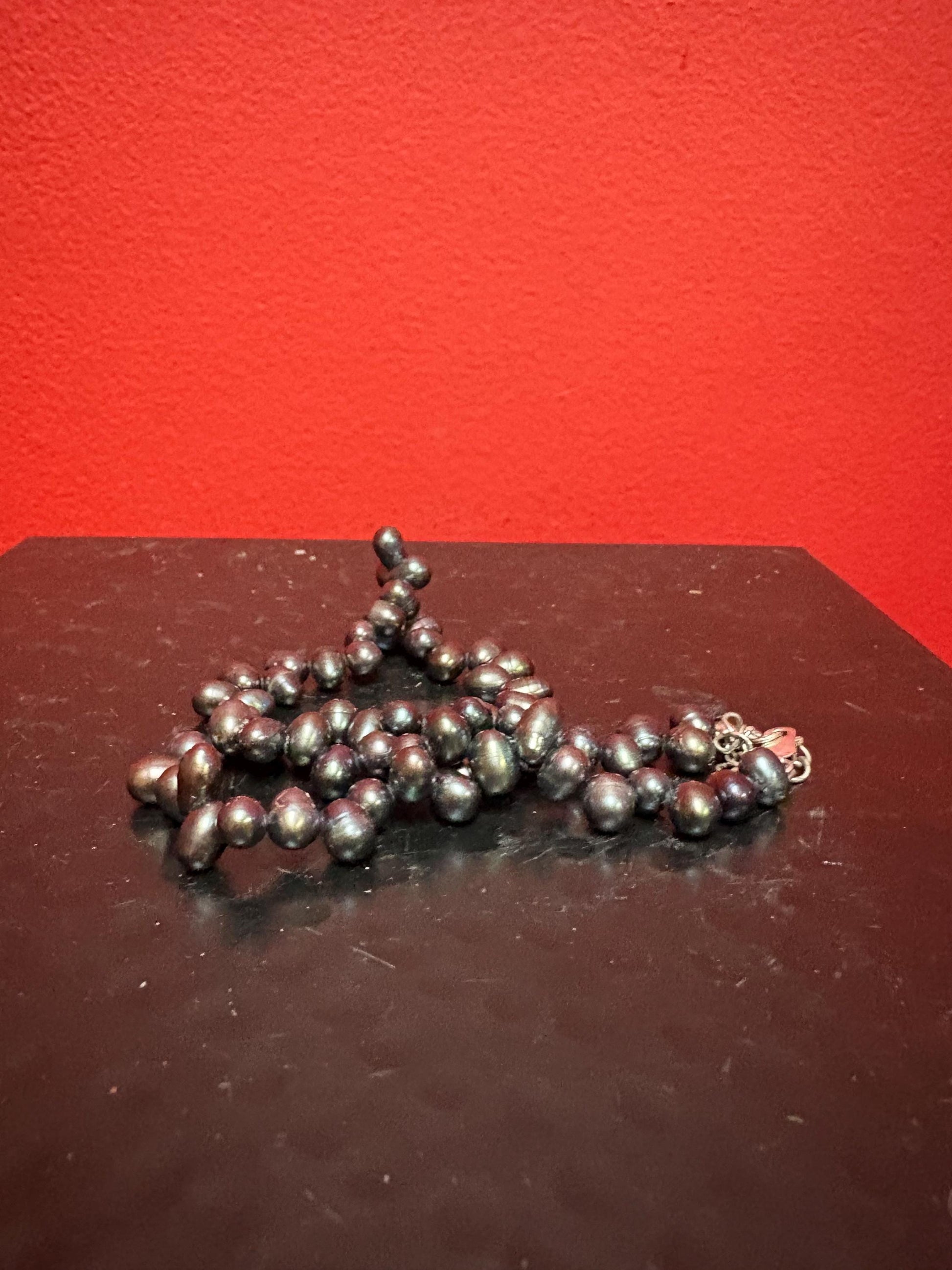 Small beautiful approximately 15 inch long black Fresh seawater pearl necklace— great value and great gift —