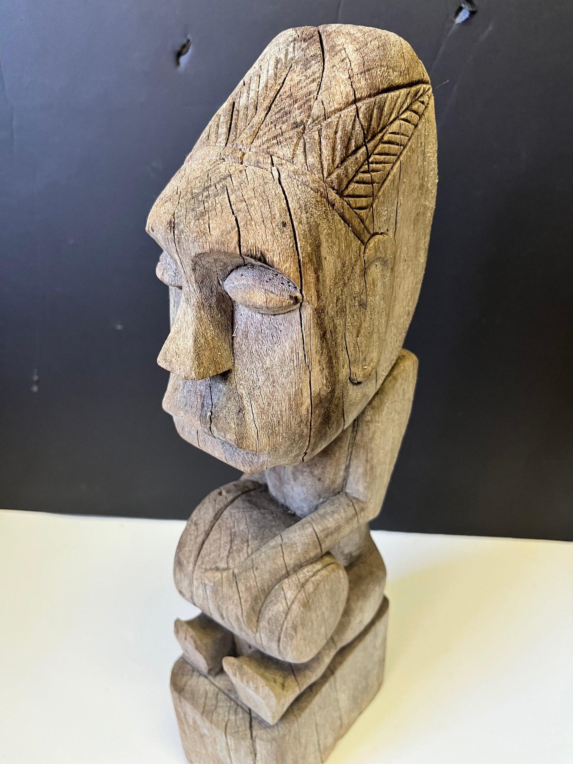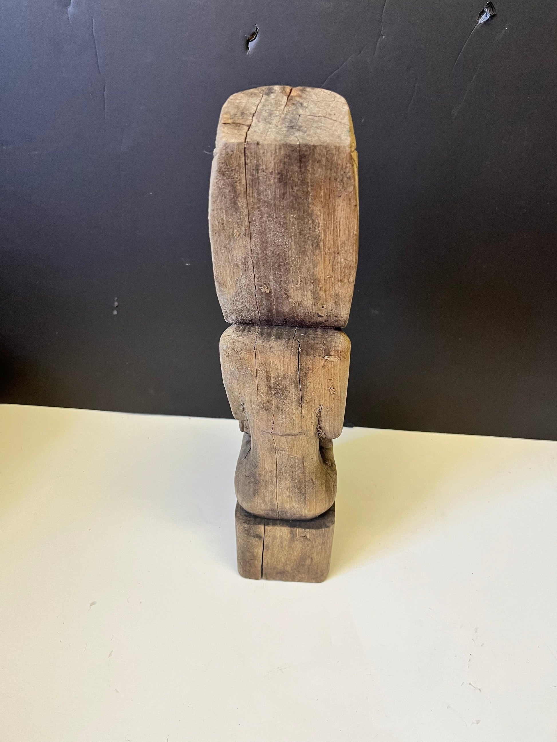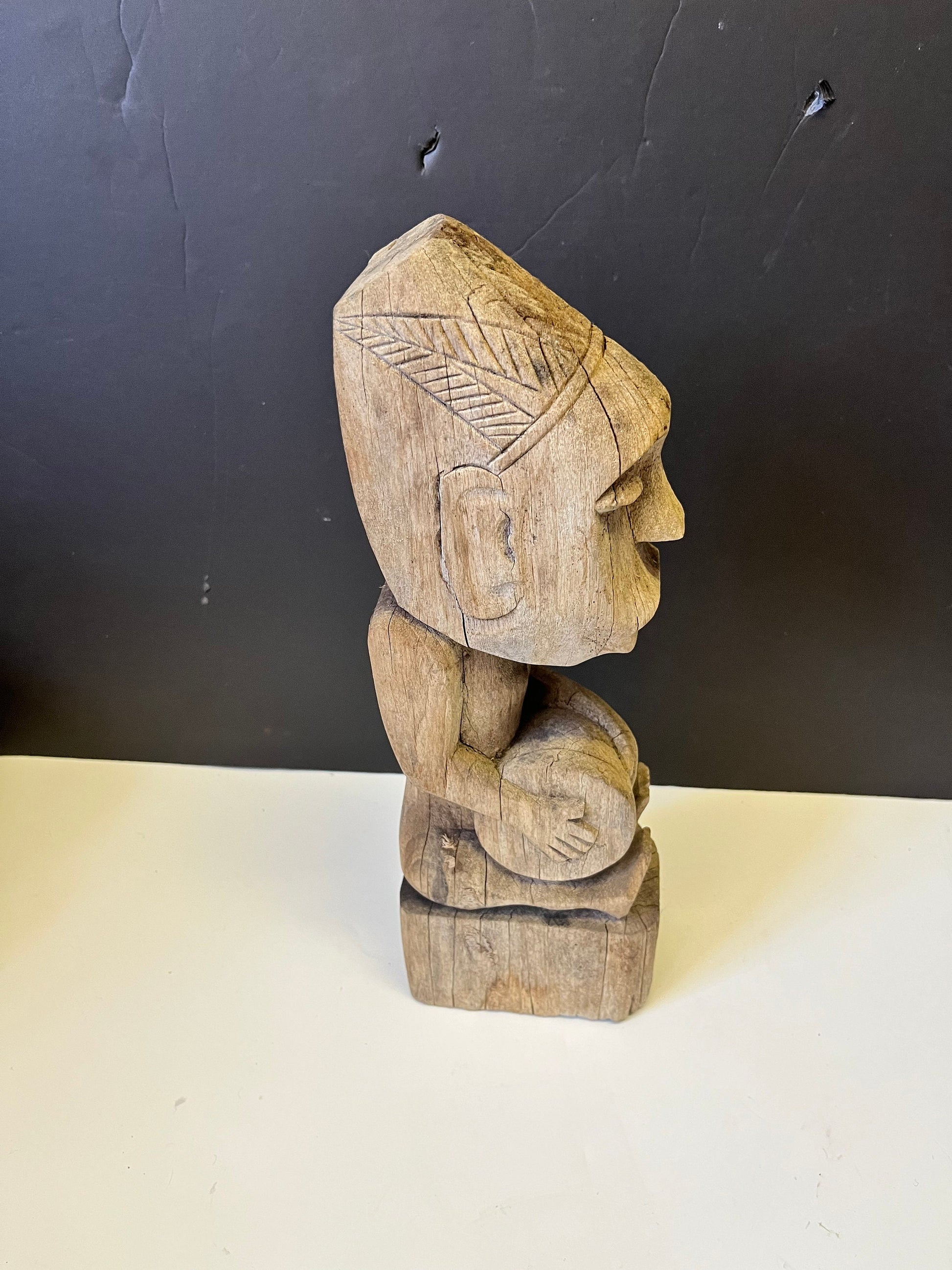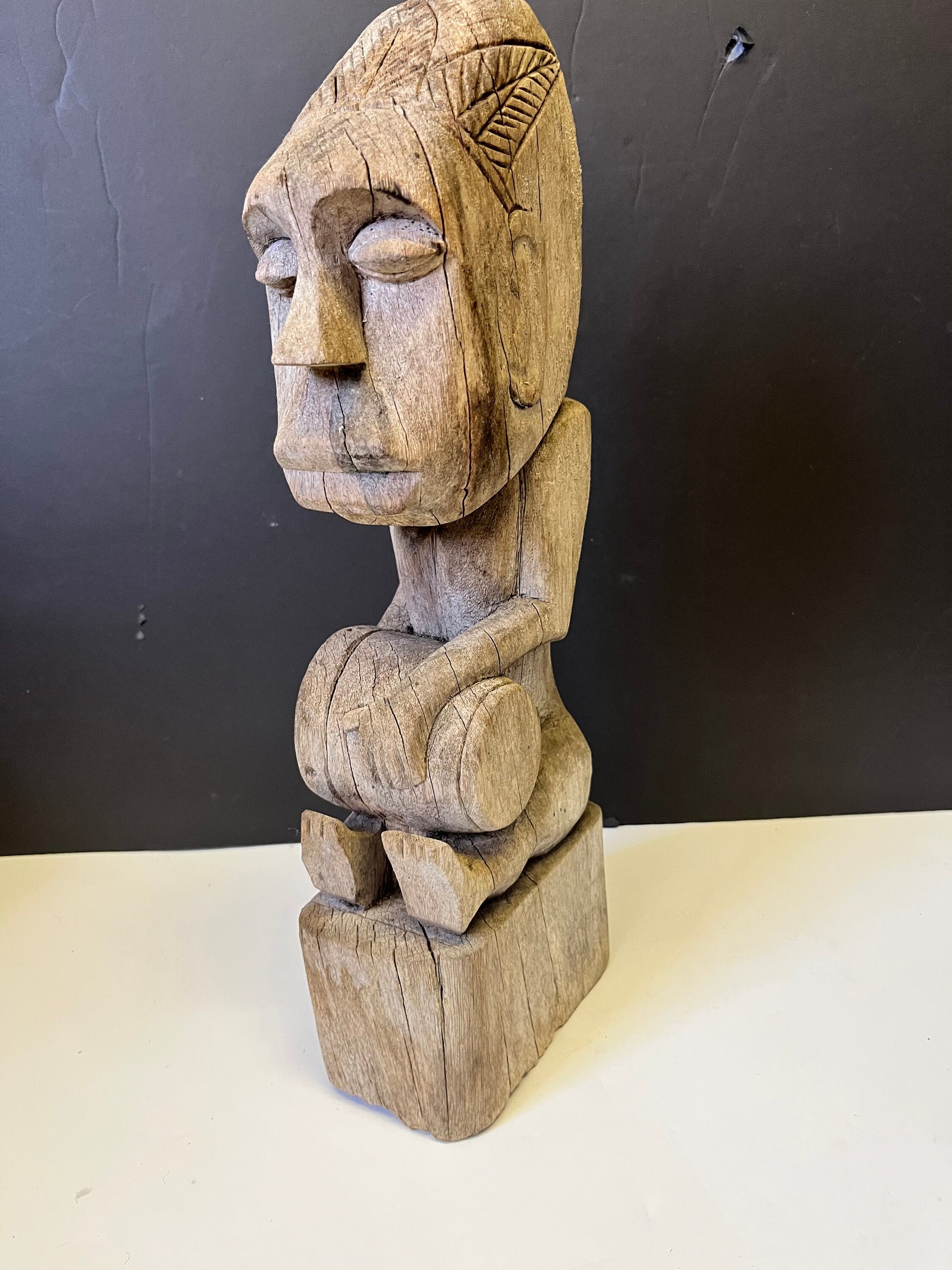Spectacular primitive antique African 14 inch tall statue of a man playing with a drum Natural wonder of art wow wow