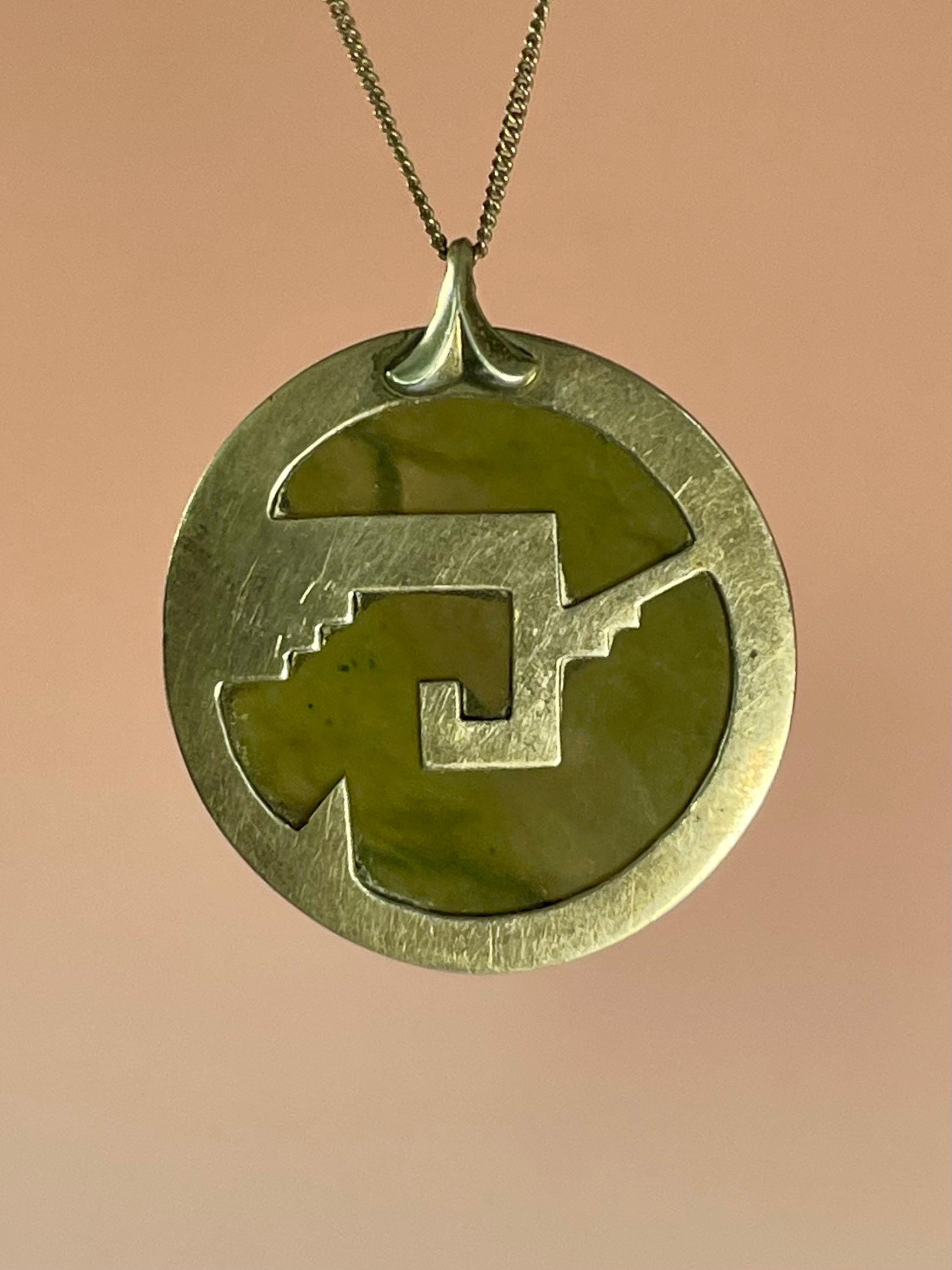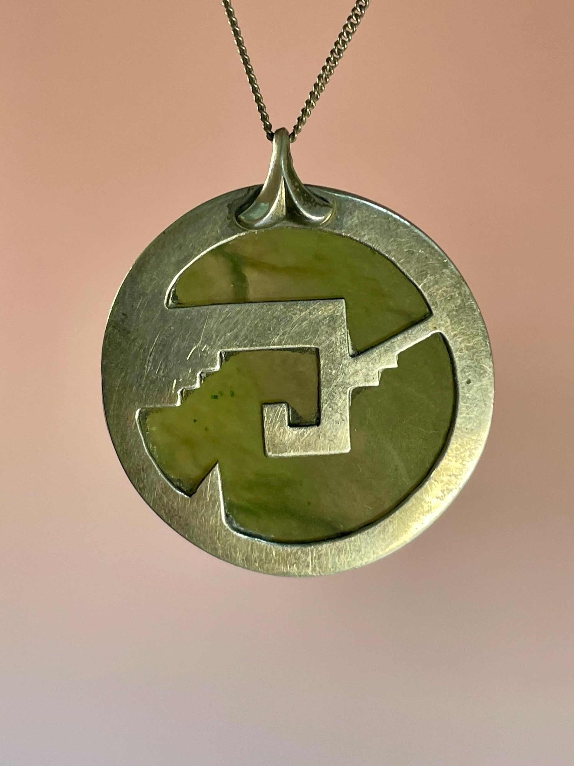 Unique Jade and sterling silver necklace pendant with an interesting and delicate design.
