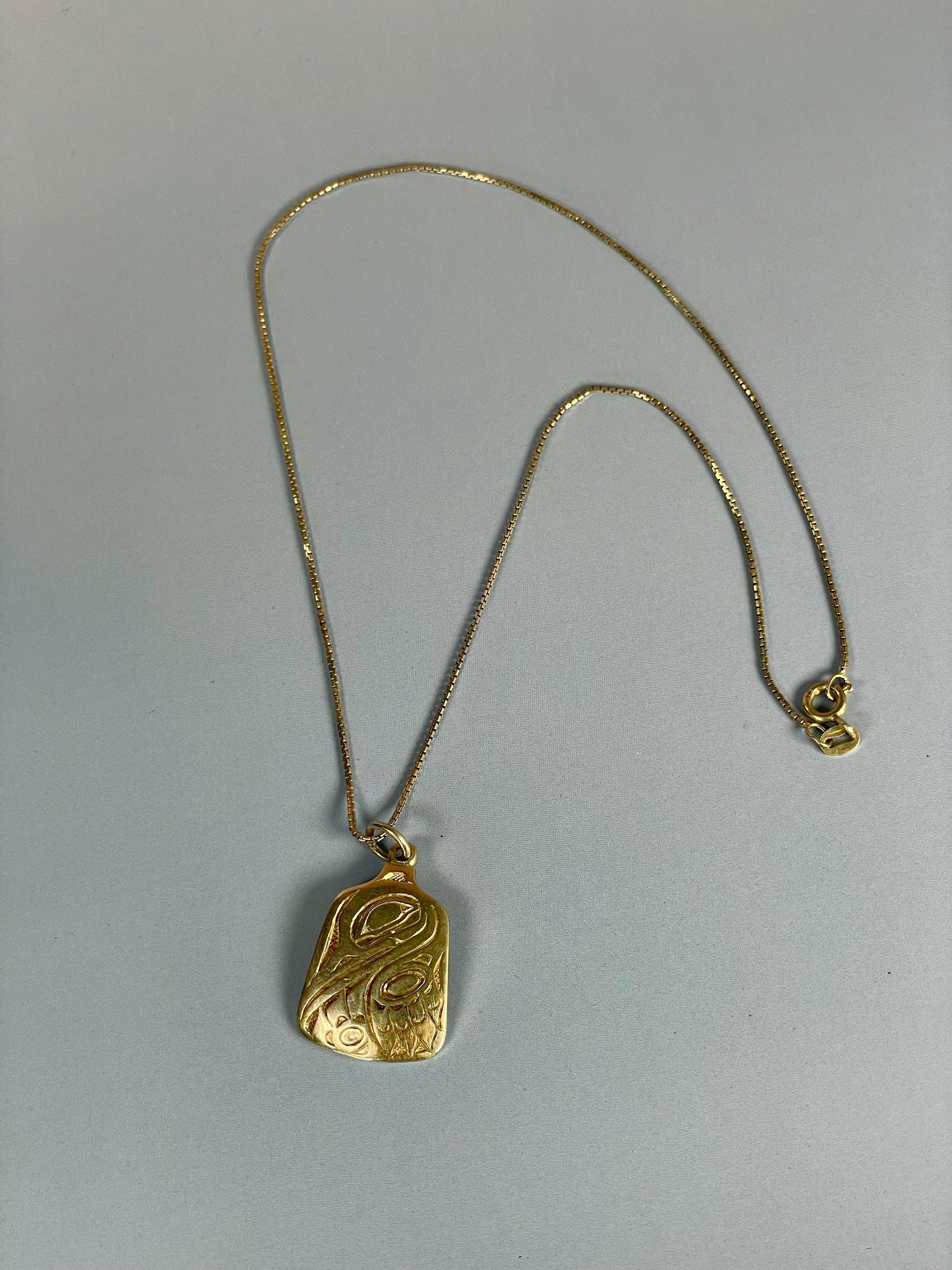 Stunning 1.25 inch long signed indigenous first nations north west coast Sterling silver raven pendant with free chain