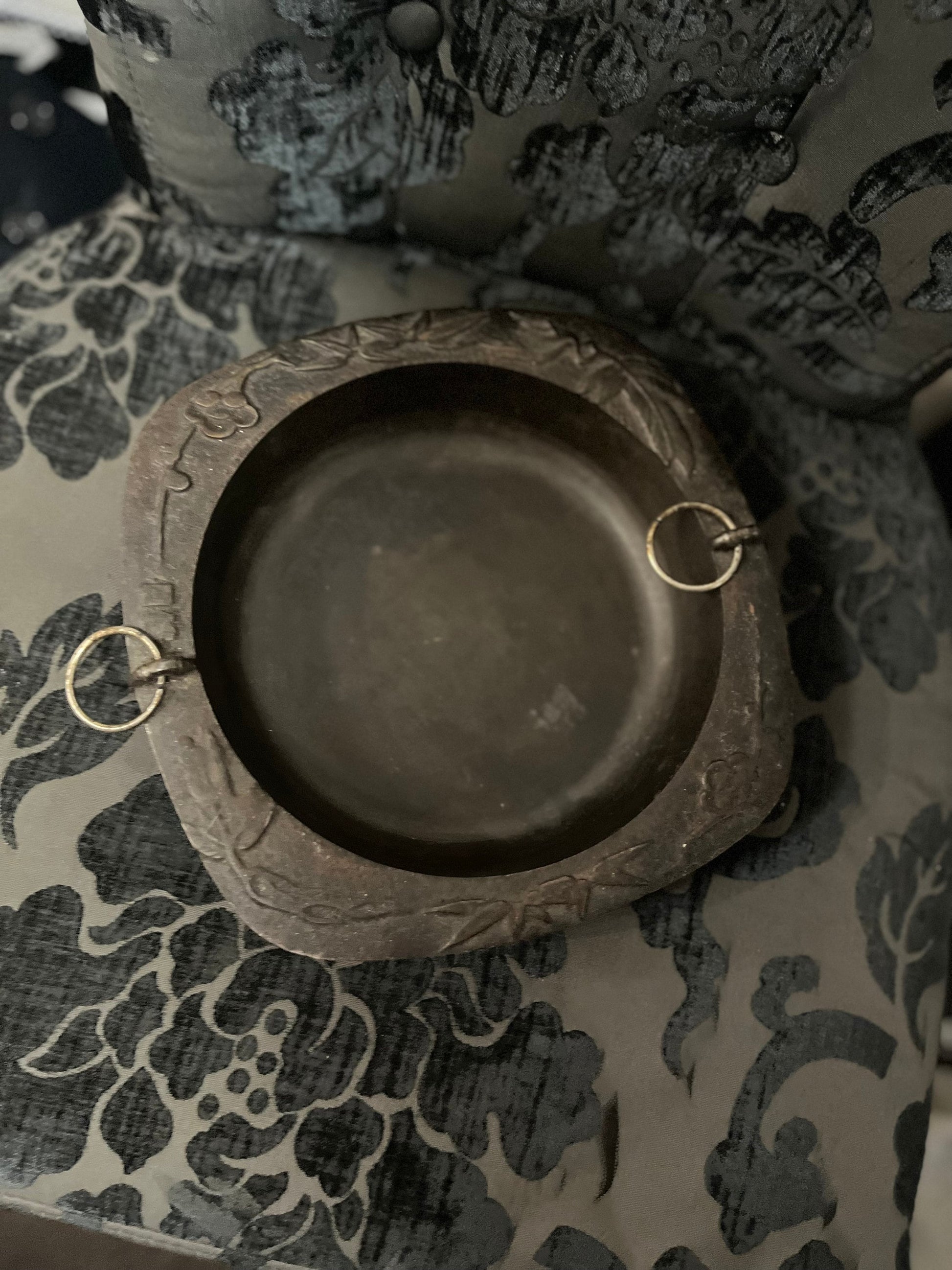 Stunning 11 inch across Japanese Bronze Antique ceremonial dish with handles signed amazing patina wow