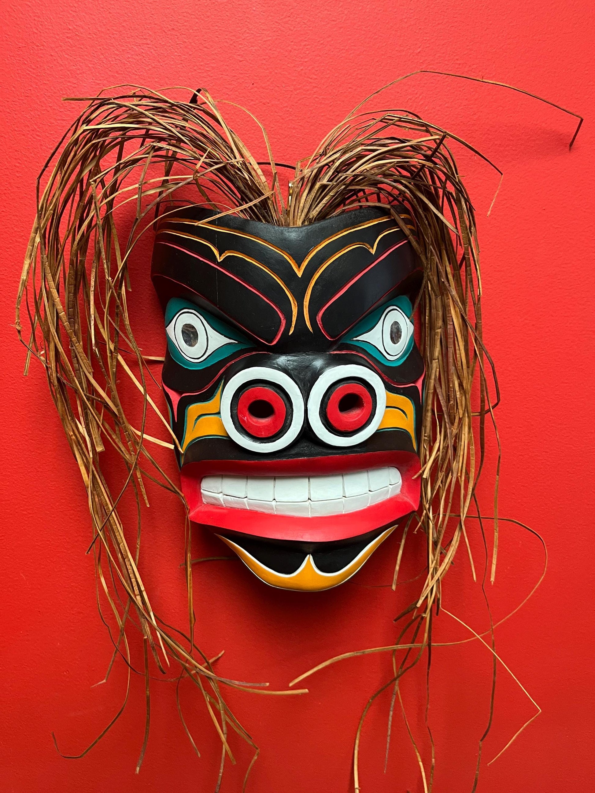Stunning 11 x 8 ( Without hair) indigenous first nations Pacific Northwest Coast signed Mask Highest quality and wonderful detail