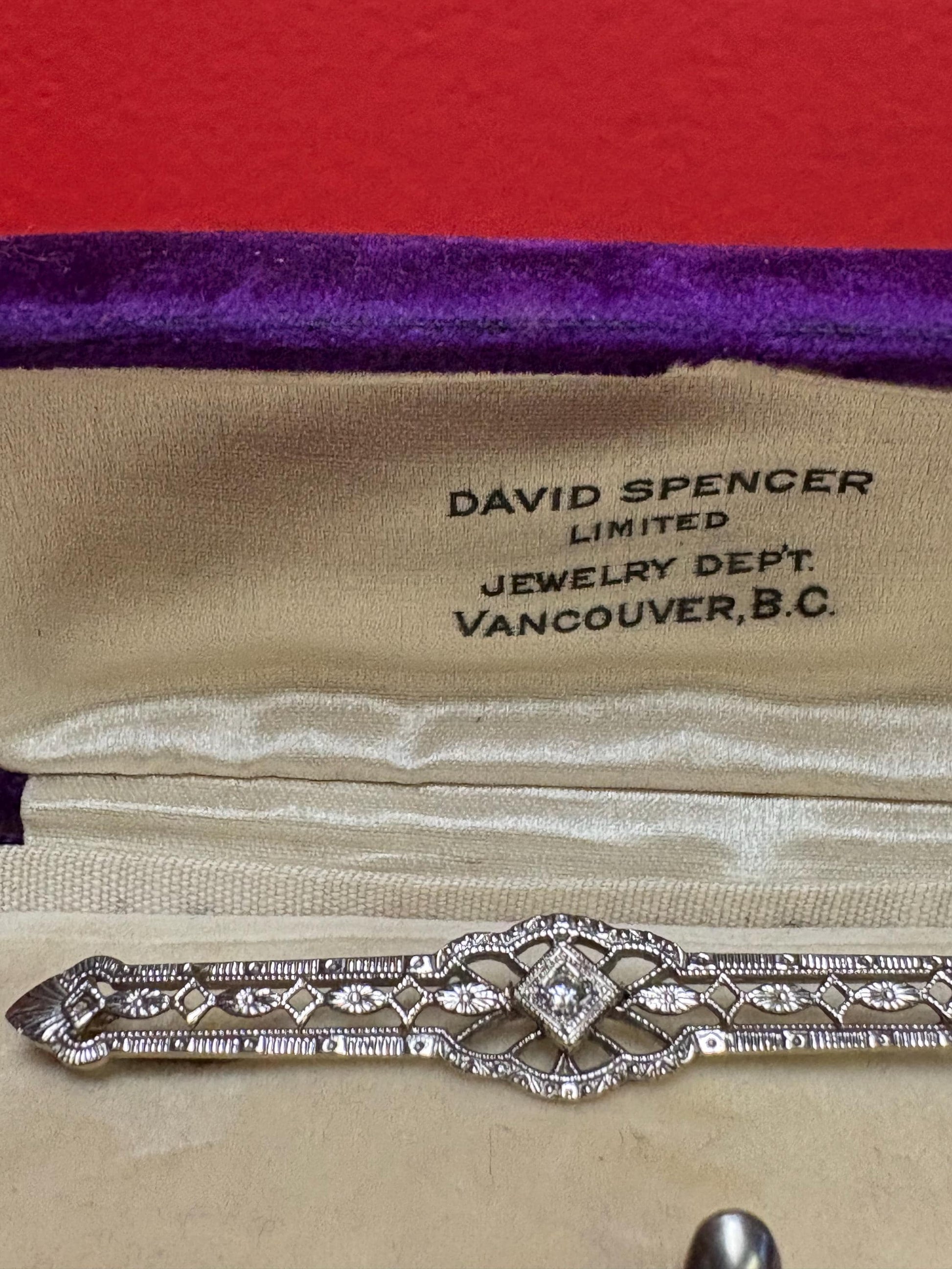 Stunning 12 carat white and yellow gold brooch with diamonds amazing piece in original box from Spencers jeweller in Vancouver - wow -