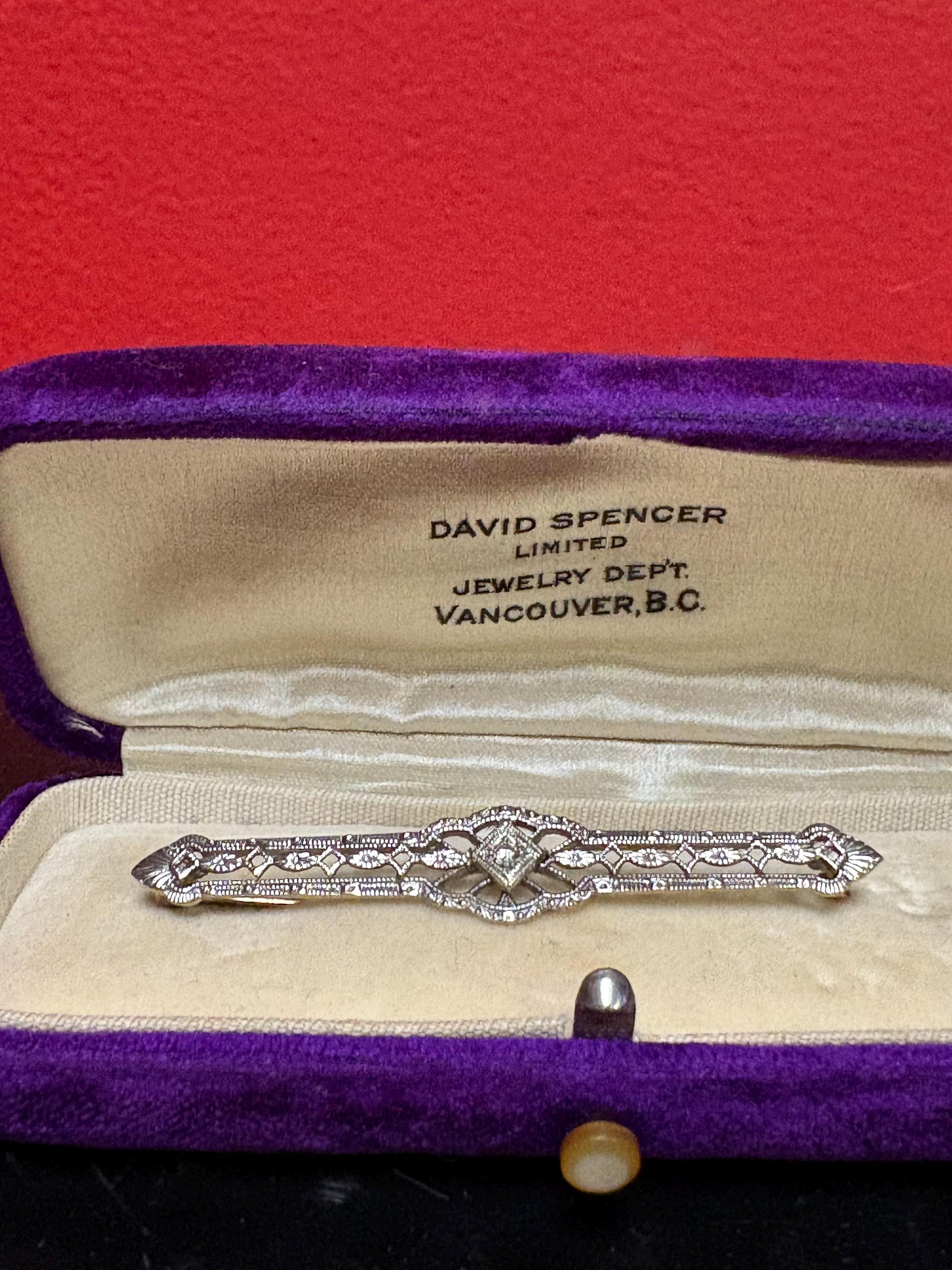 Stunning 12 carat white and yellow gold brooch with diamonds amazing piece in original box from Spencers jeweller in Vancouver - wow - perfect