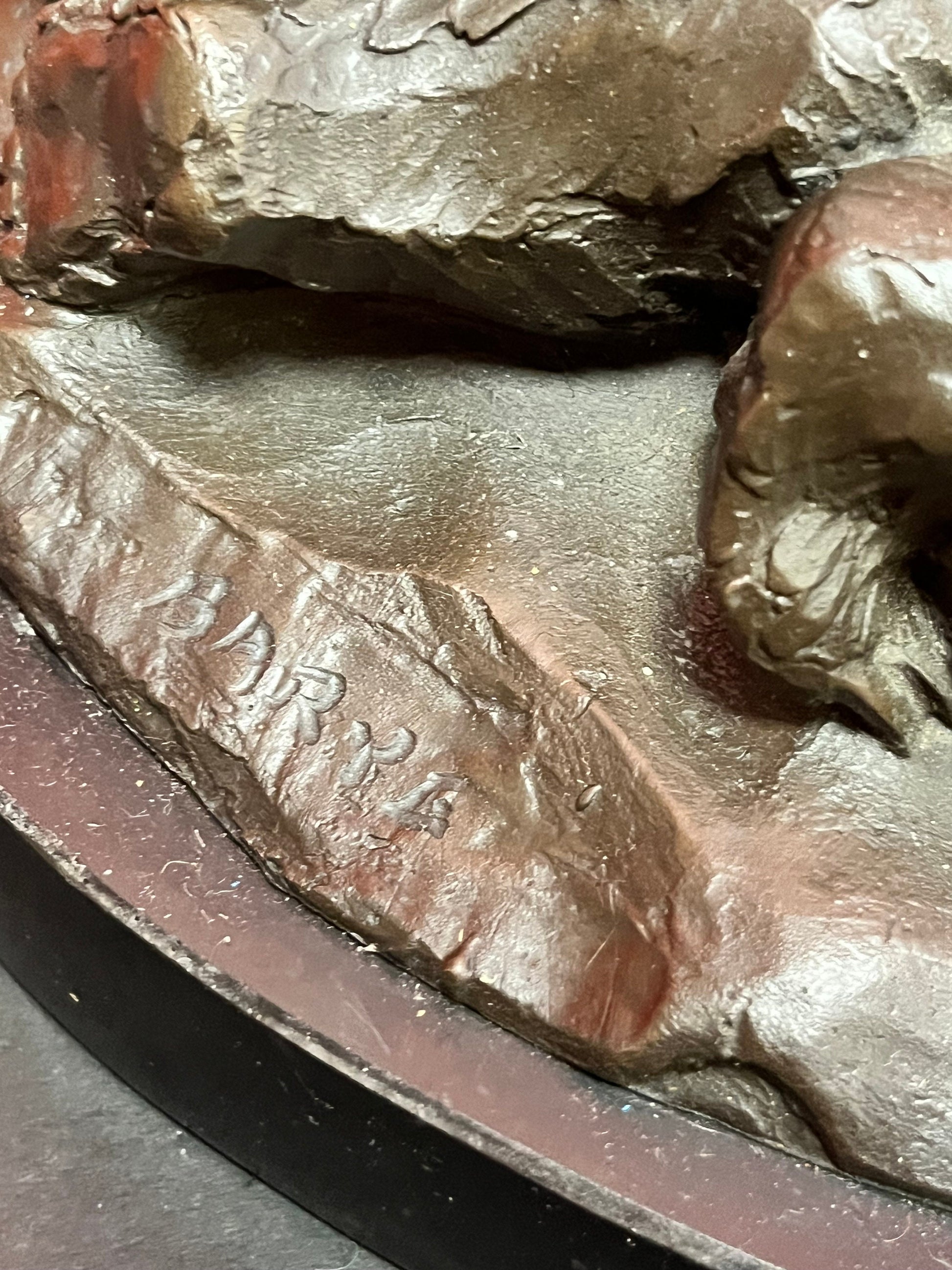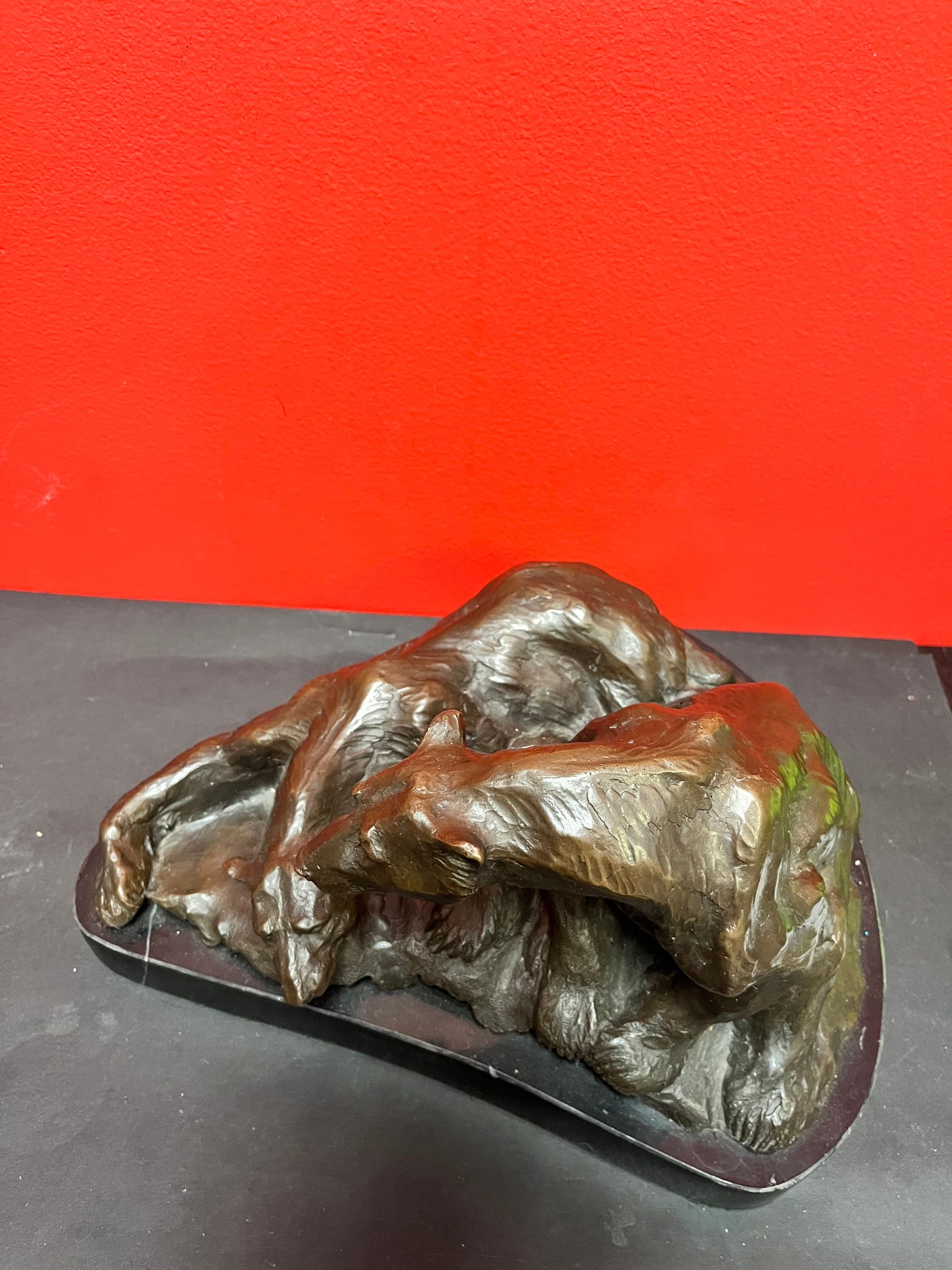 Stunning 13 x 9 x 8 high French signed bronze statue of Bears antique BARYE on marble base huge and realistic