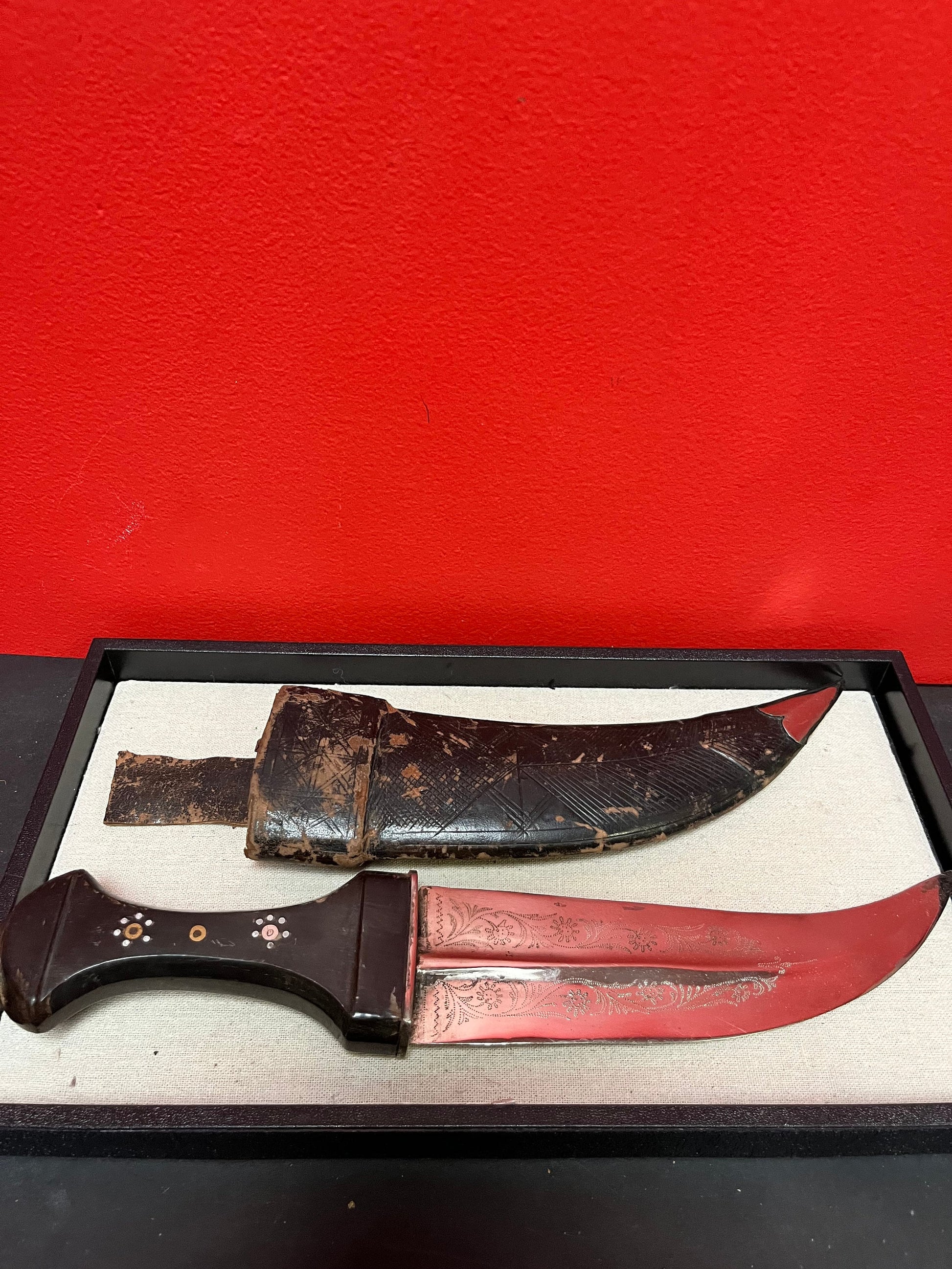 Stunning 14 inch long authentic Ghurka knife in original sheaf wonderful detailed decoration wow piece