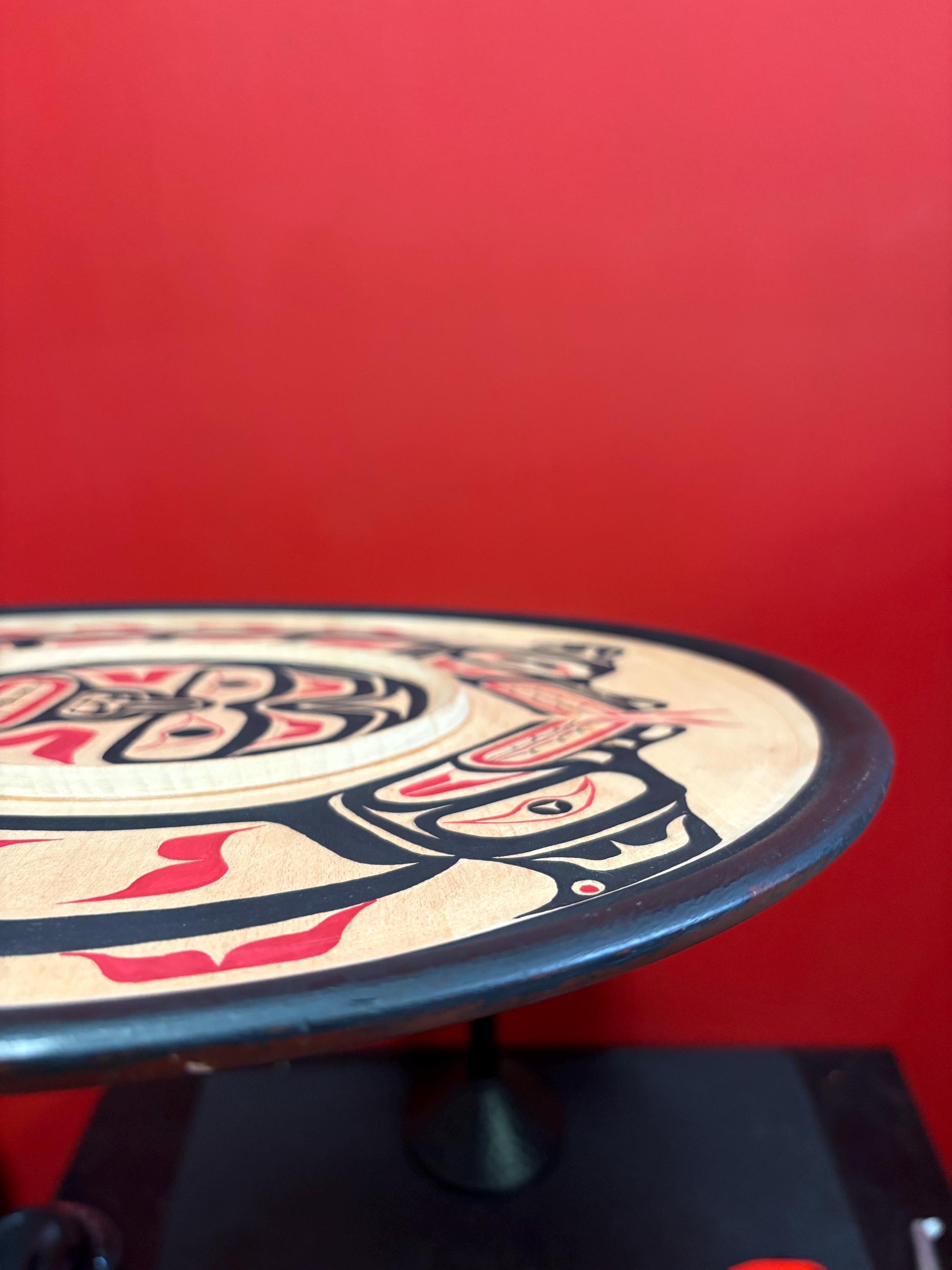 stunning 15.5 inch indigenous First Nations Pacific Northwest coast cedar plaque detecting Sisiuti signed info on back needs hanger