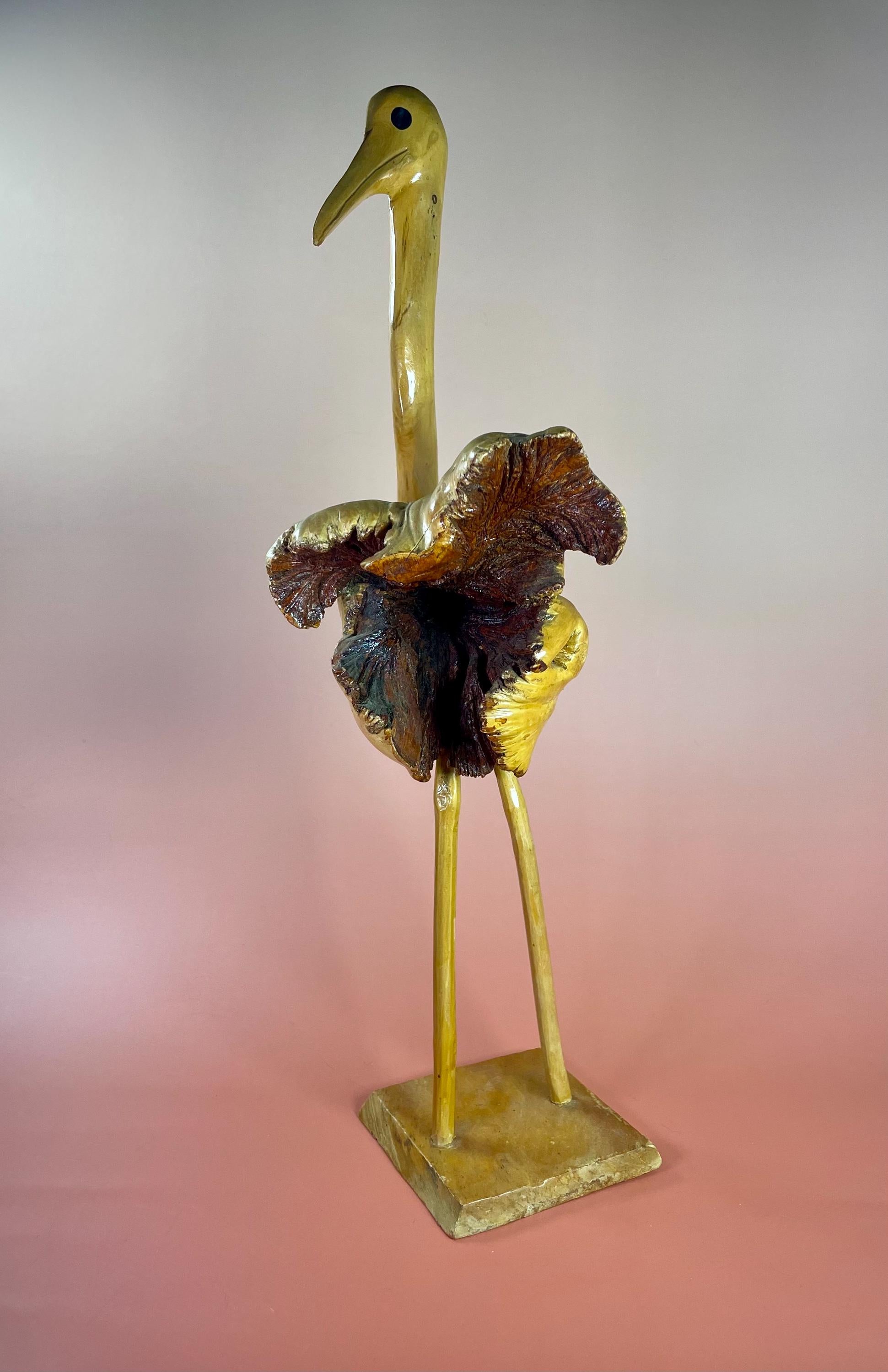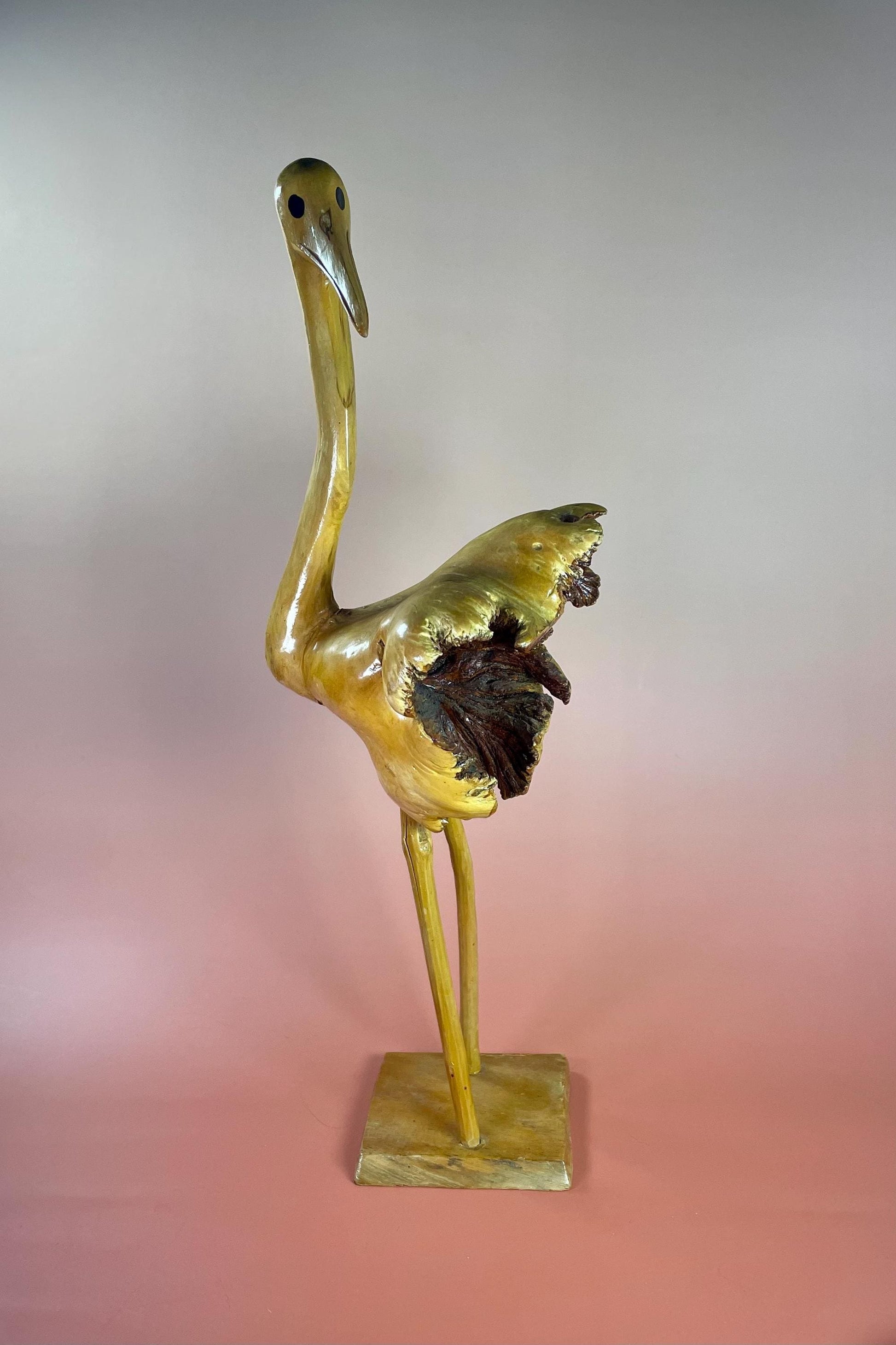 Burl Wood Carved Sculpture of an Ostrich. Very interesting and unique piece of art.