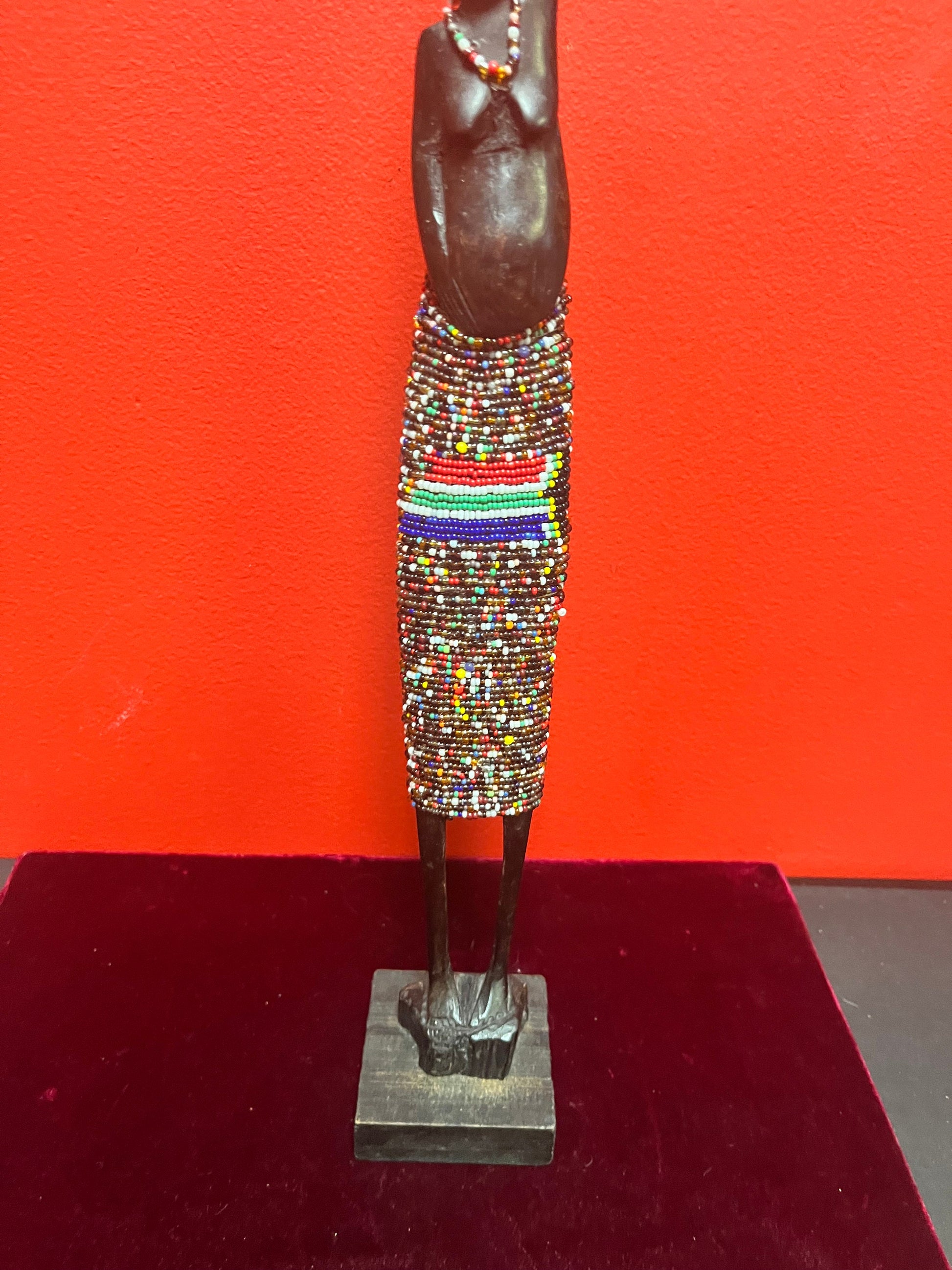 Stunning 17 inch high Ebony and beaded statue of a lady great condition and look