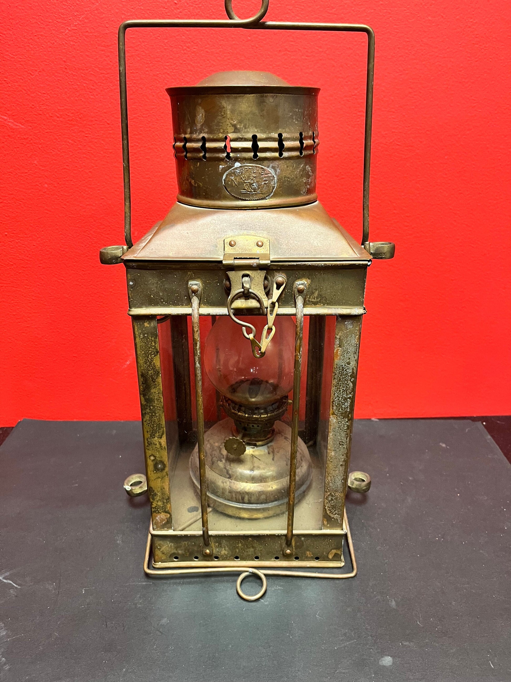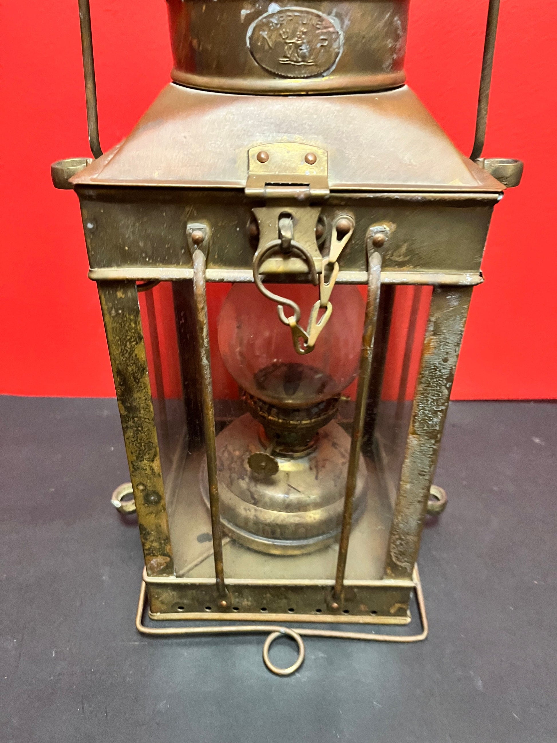 Stunning 17 inch tall antique mint condition Marine brass ships lantern with original glass shade Neptune company