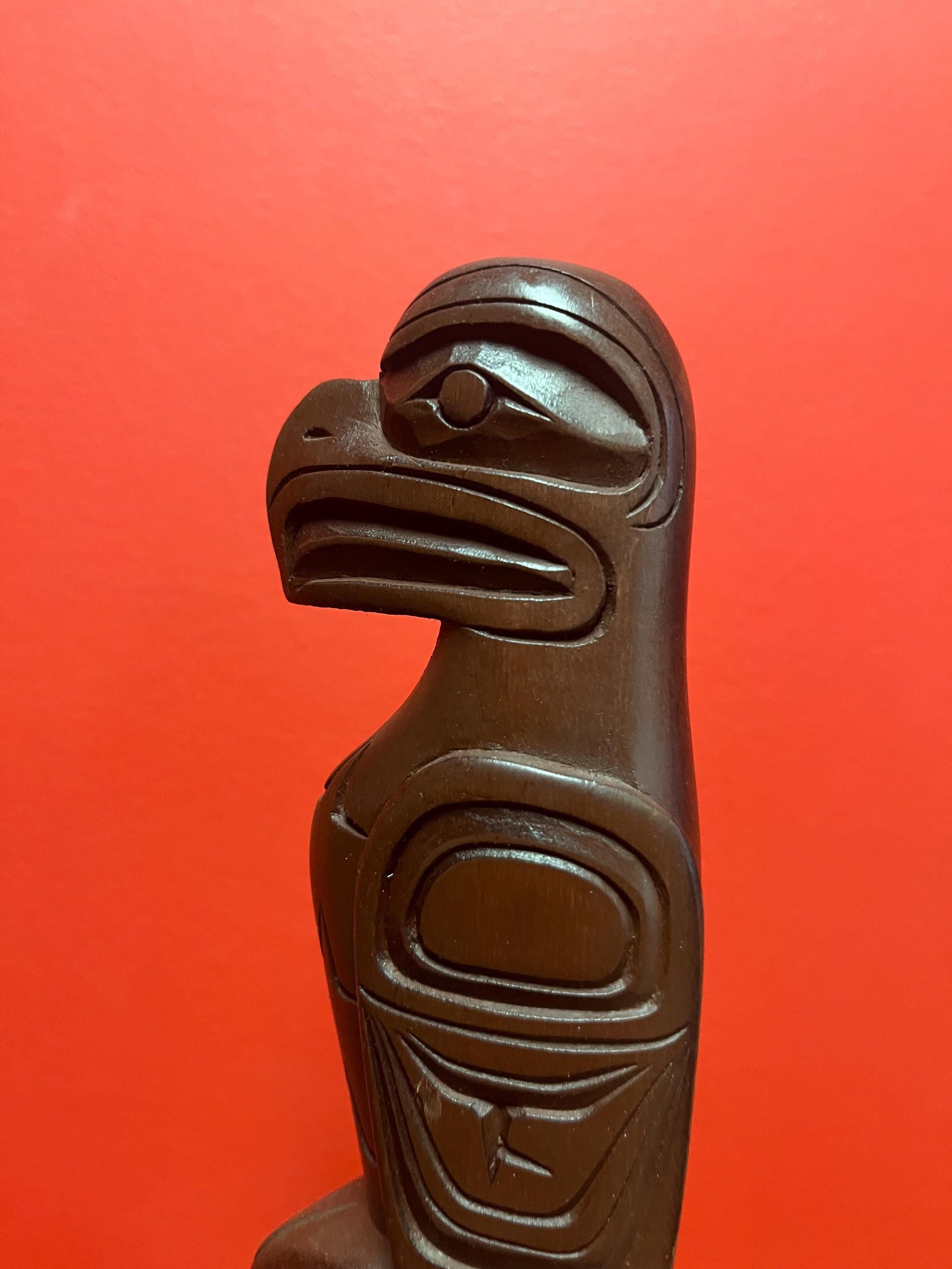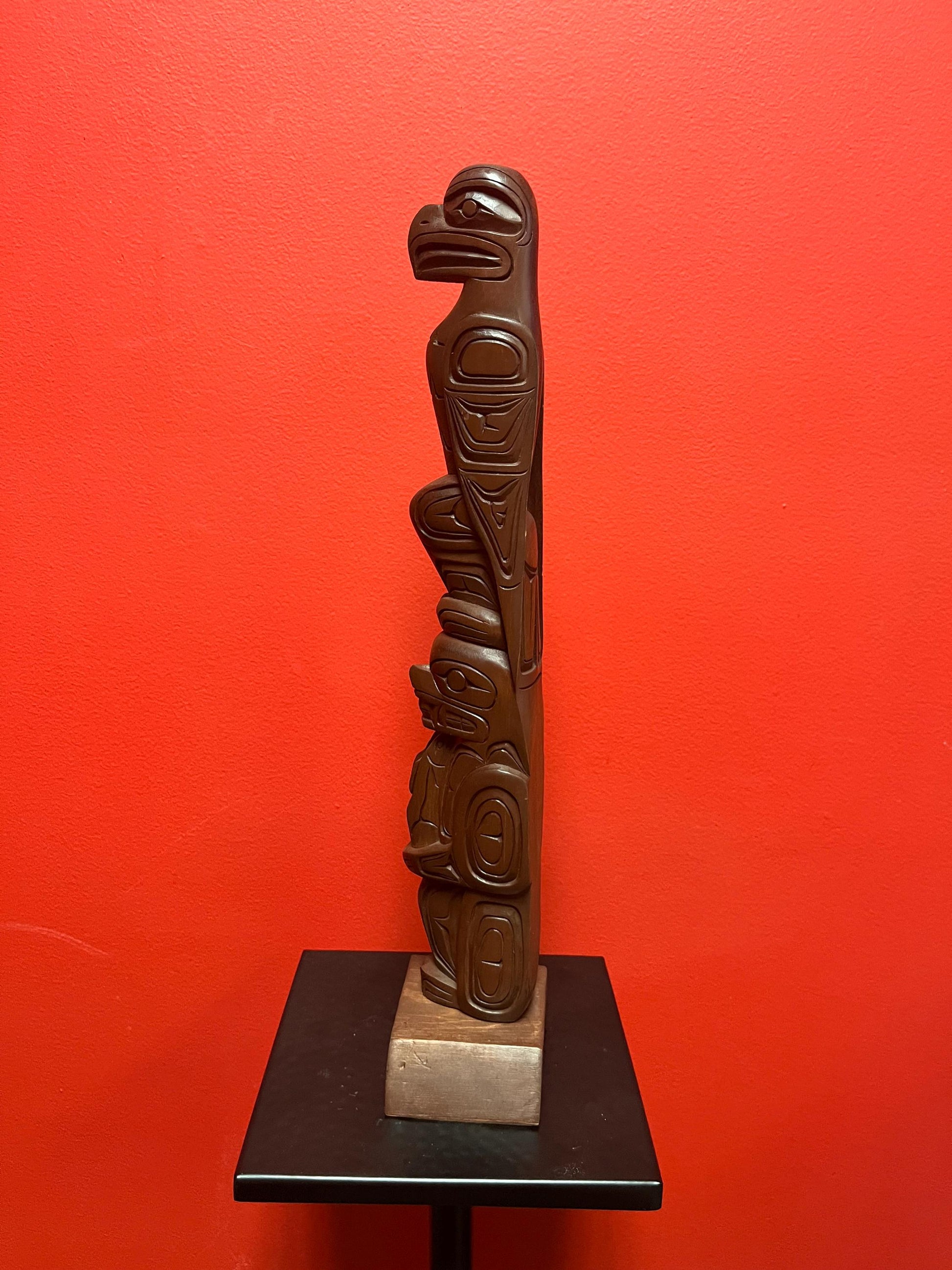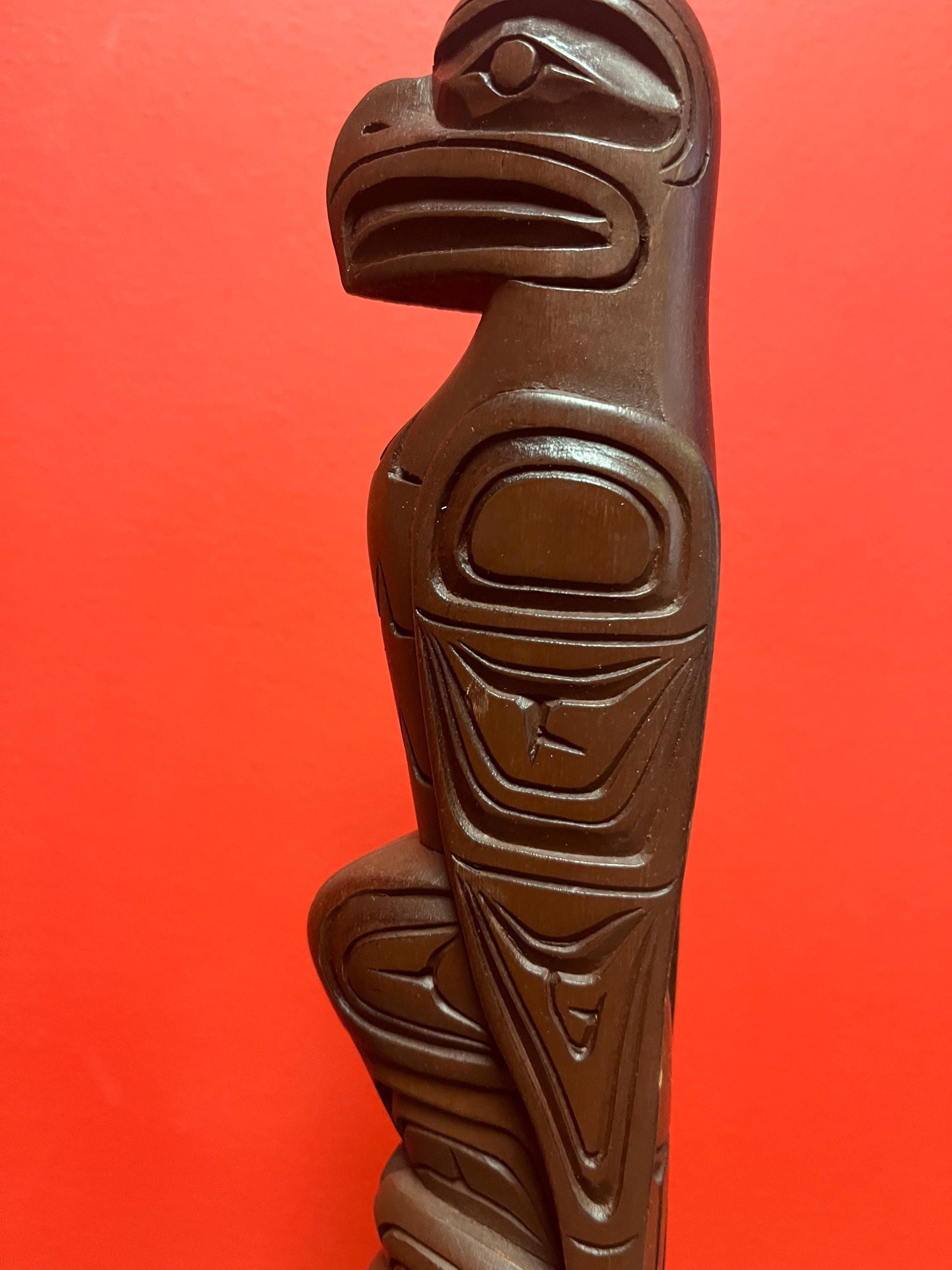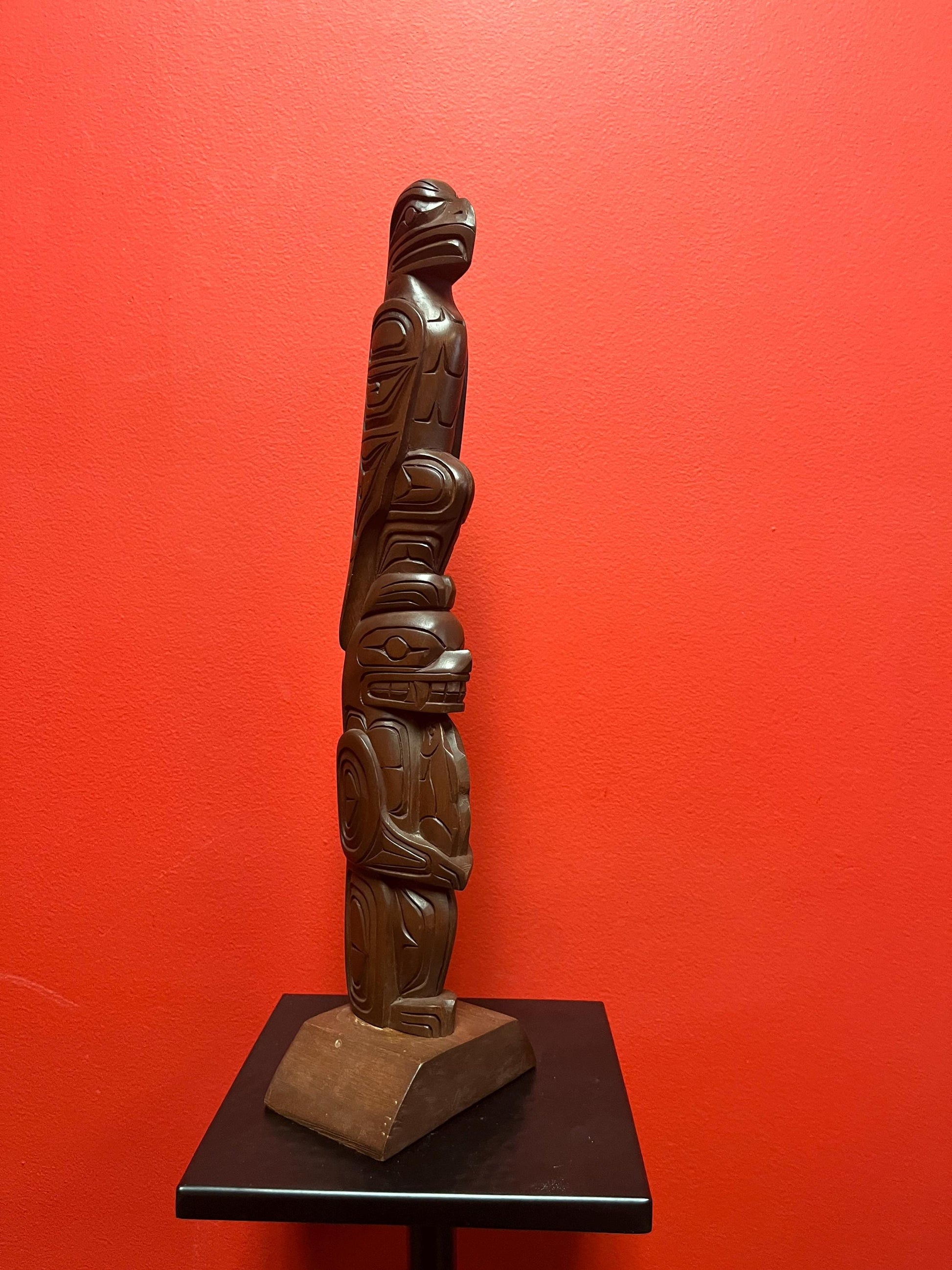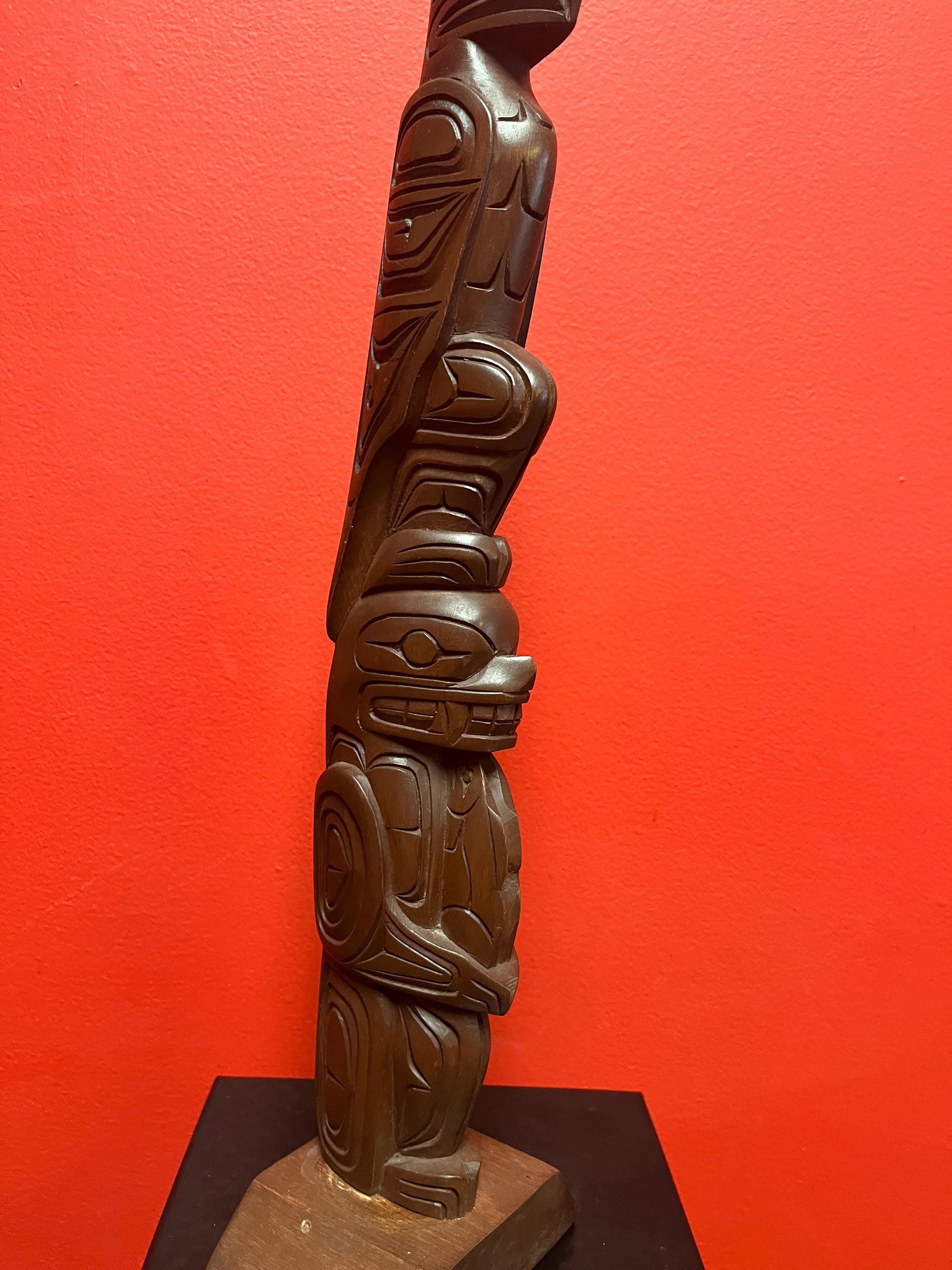 Stunning 17 inch tall Harold Baker indigenous first nations Pacific Northwest Coast Cedar totem pole Sensational detail One of the best