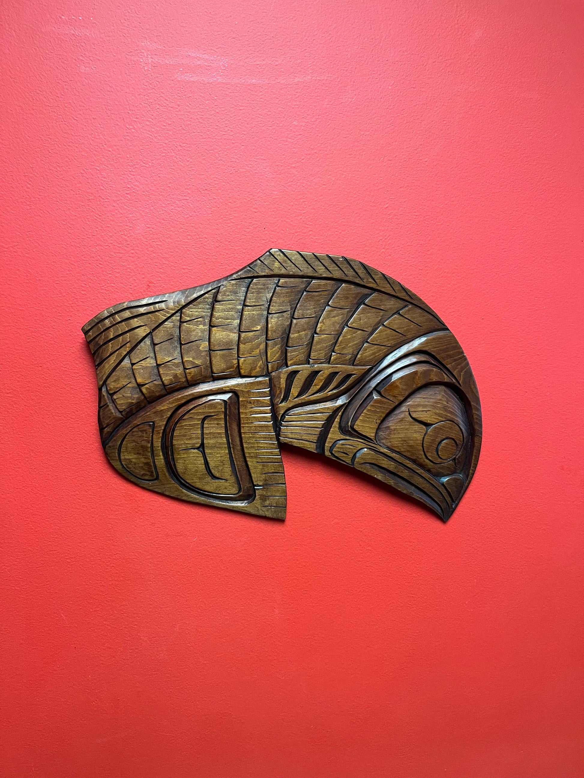 Stunning 17 x 12“ high indigenous first nations specific northwest Coast Willy Hawkins salmon plaque great detail and quality