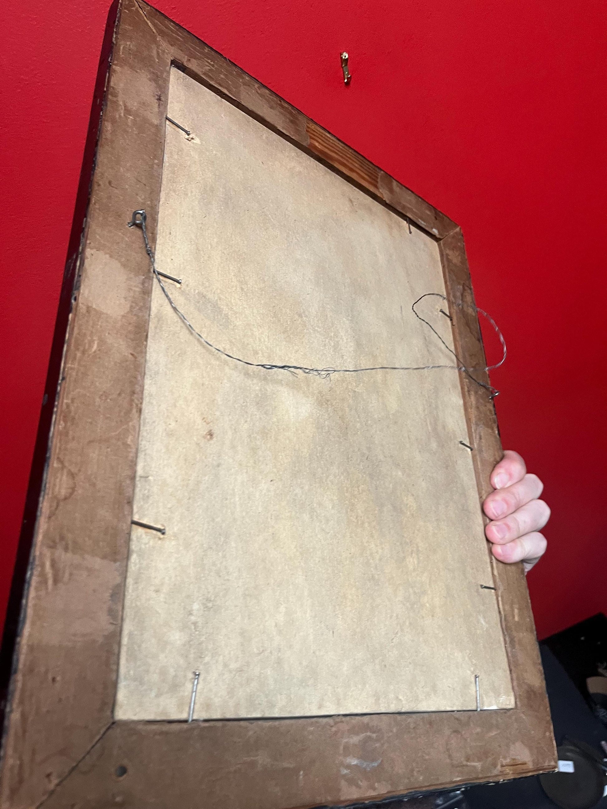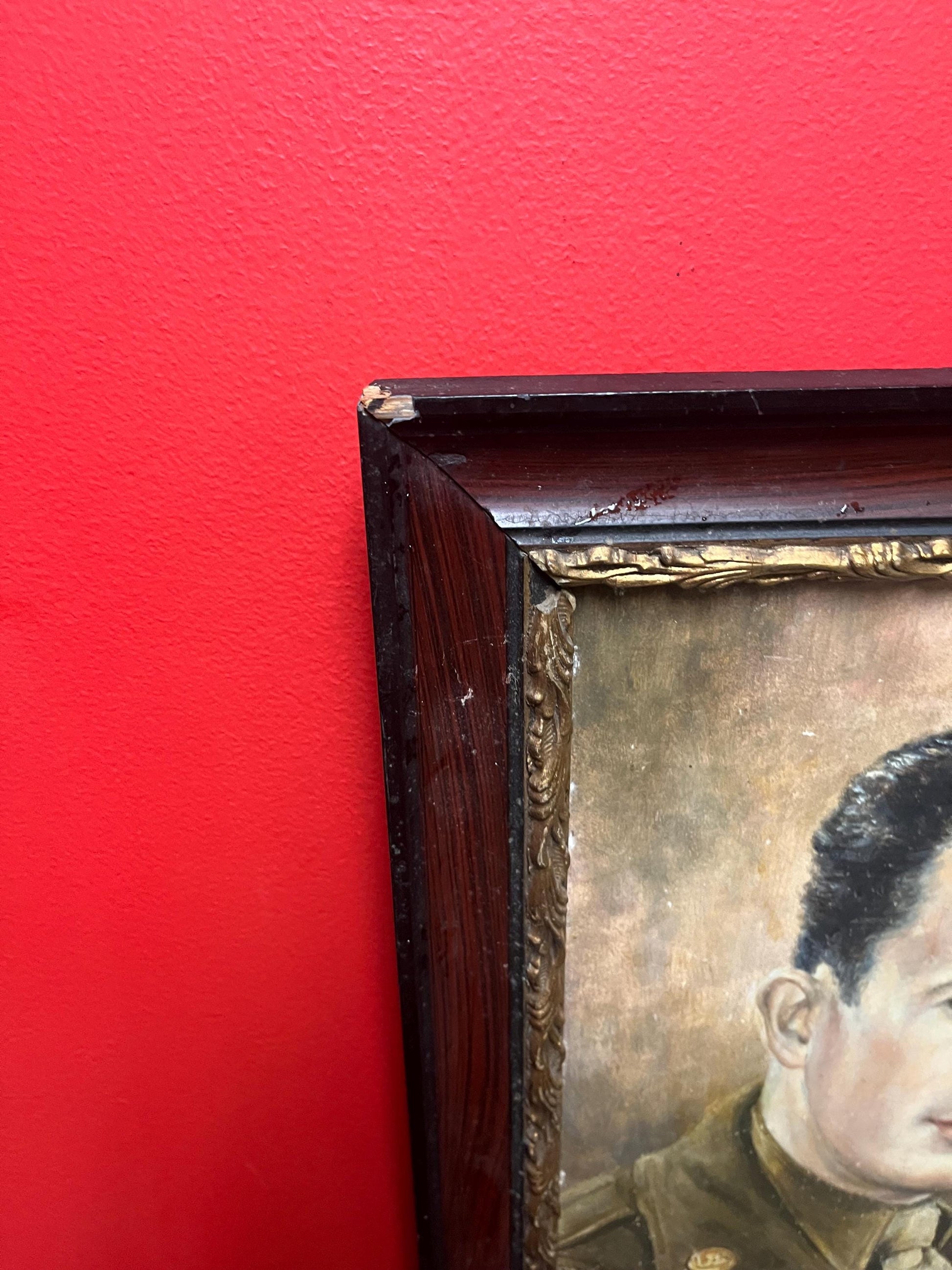 Stunning 17 x 15 framed, signed French oil painting of a US soldier some minor minor damage- wonderful historical piece