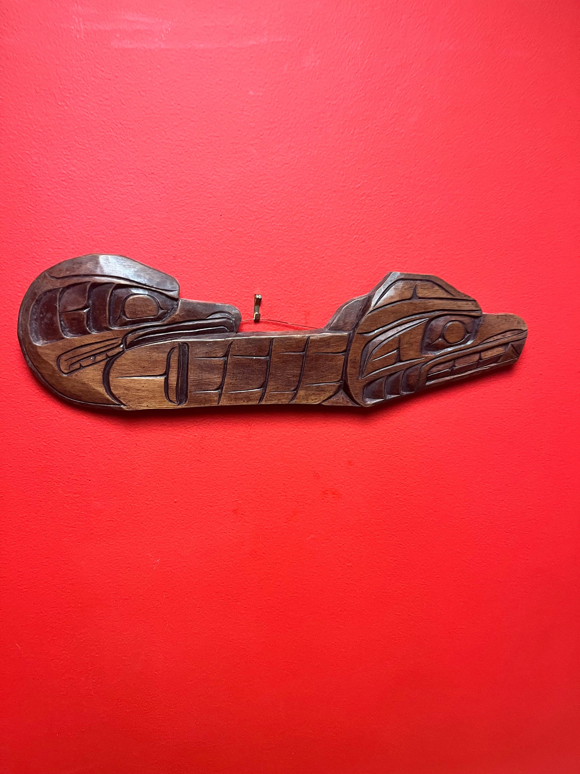 Stunning 18 x 6 indigenous raven and bear plaque by Albert Bruce ready to hang indigenous first nations Pacific Northwest coast beauty