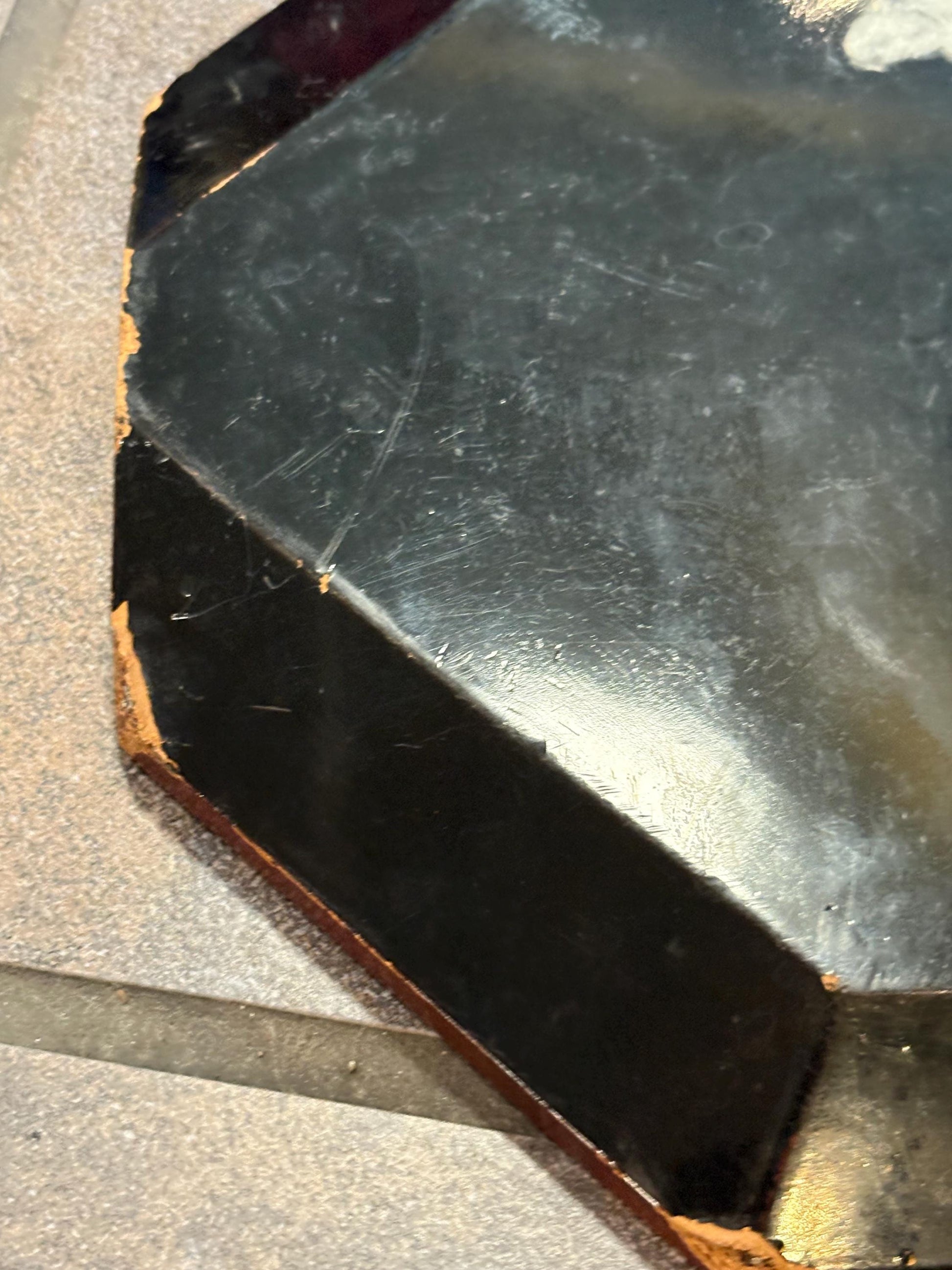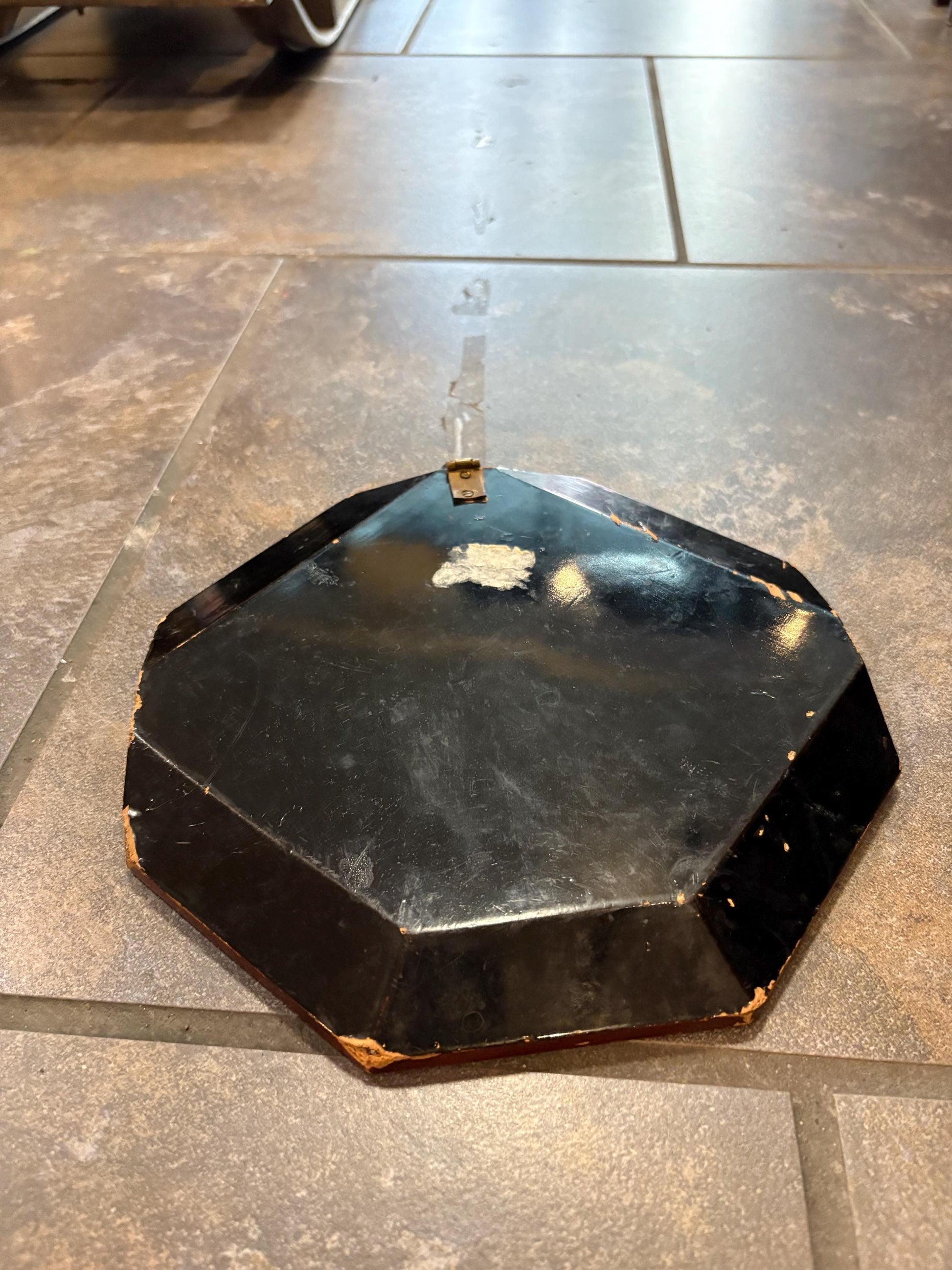 Stunning 19 century Japanese lacquer plaque ready to hang — 9 inches across — some scratches —