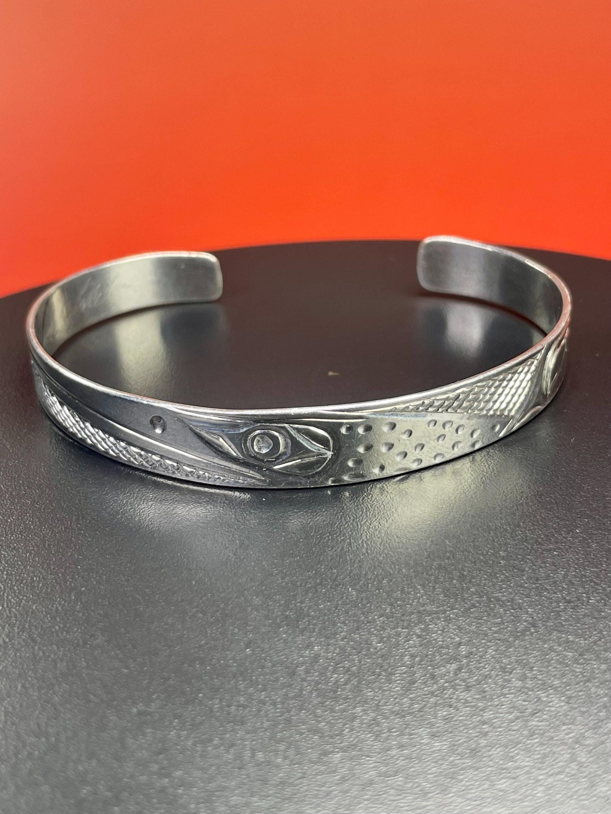 Stunning 2 1/2 inch wide indigenous first nations northwest coast Sterling Solomon Seaweed Hummingbird bracelet amazing detail