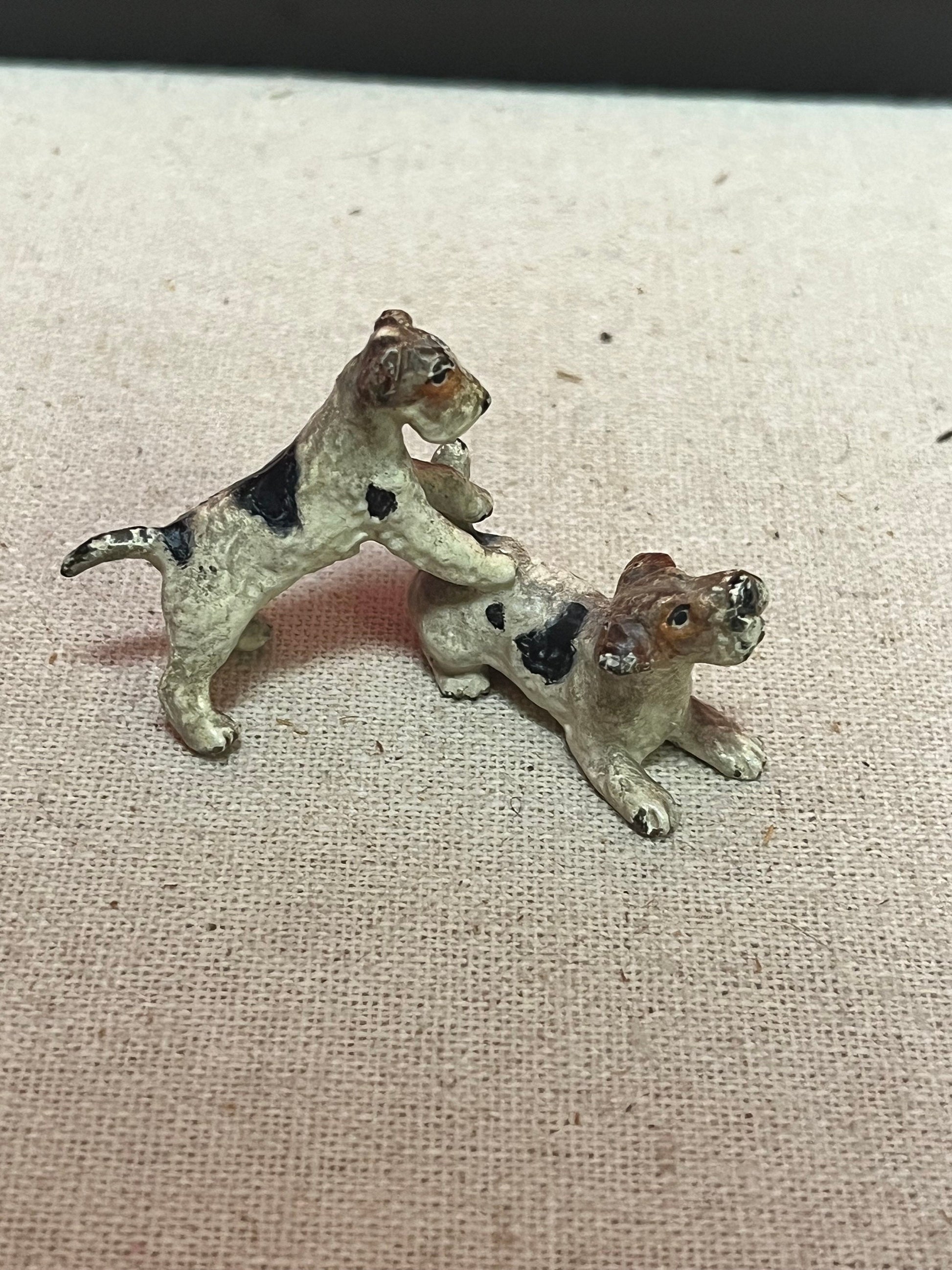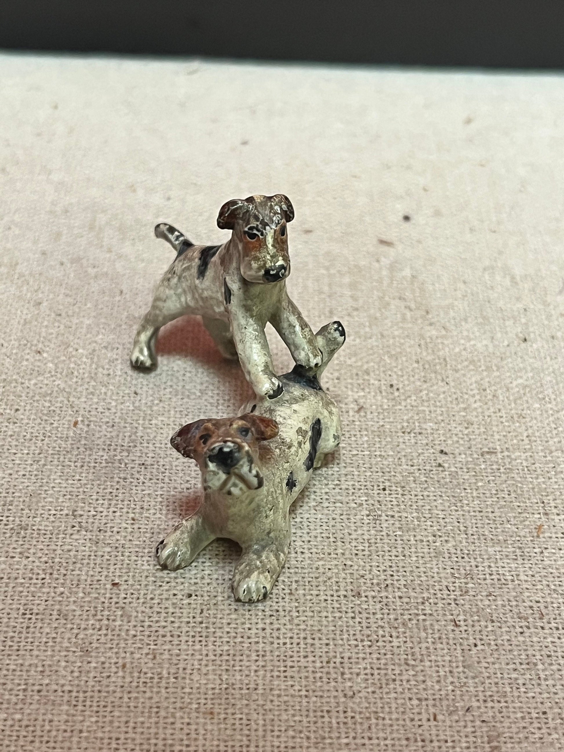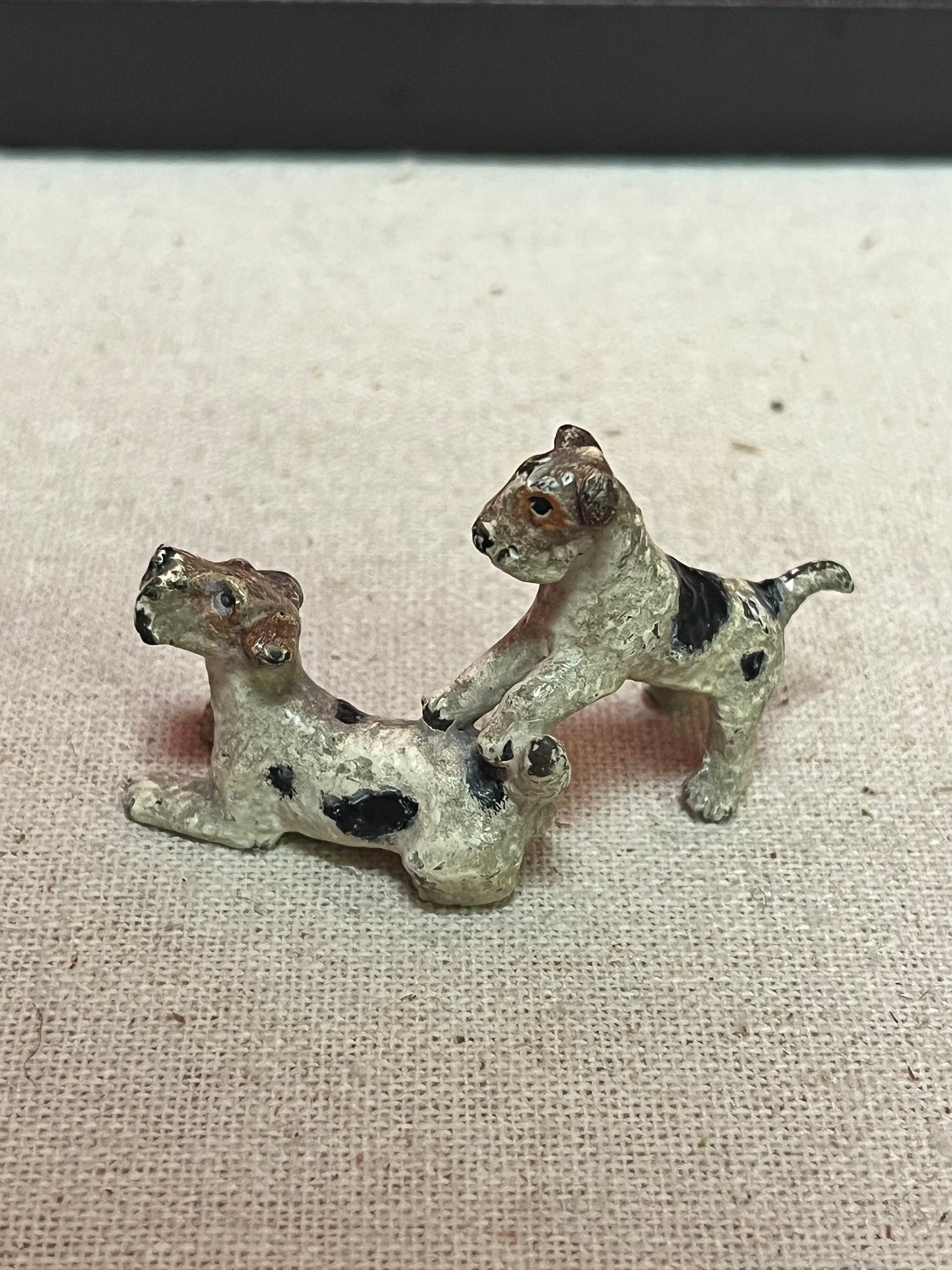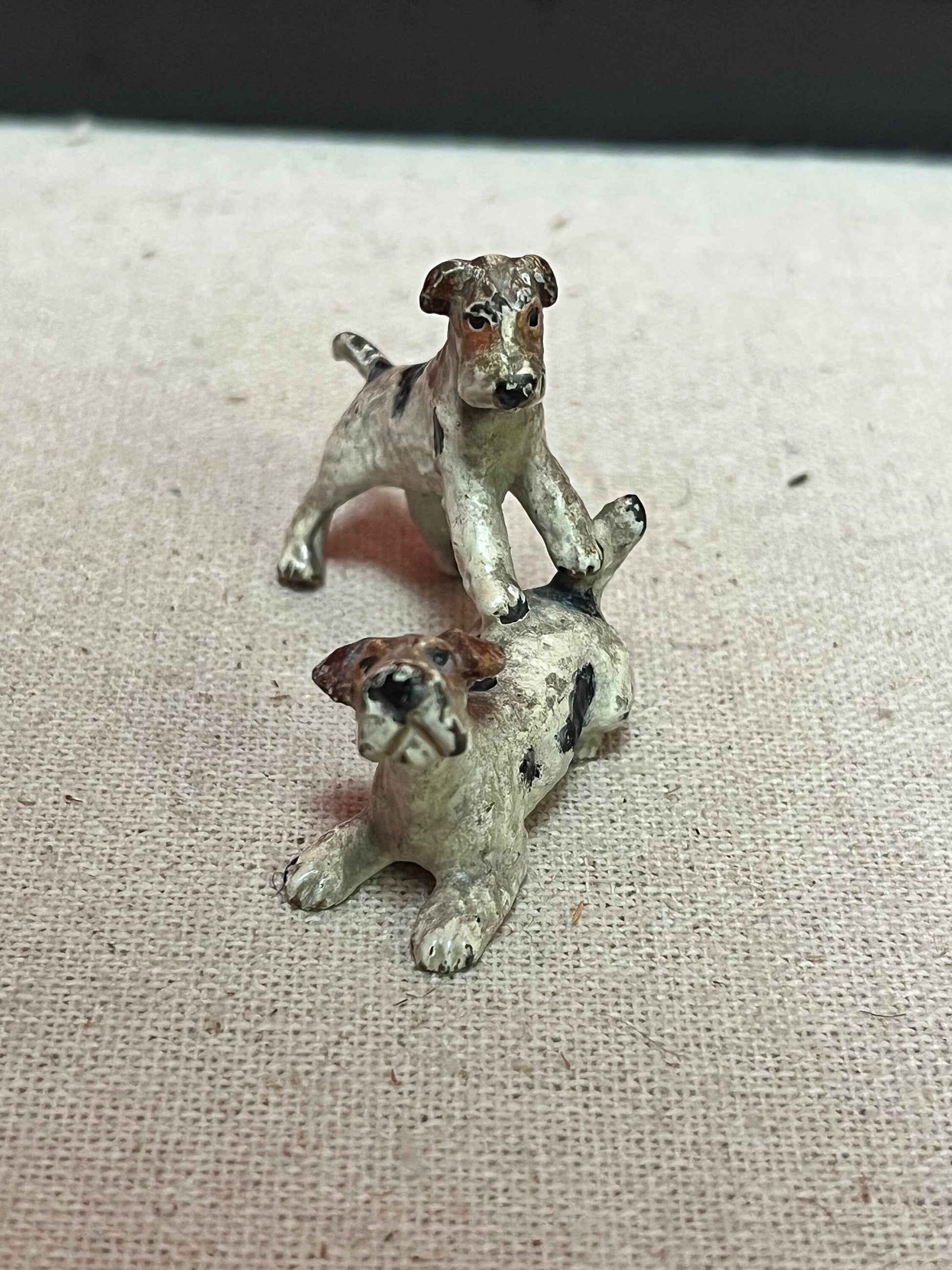 Stunning 2 inch Franz Bergman cold painted bronze terrier dogs wrestling in good condition wow