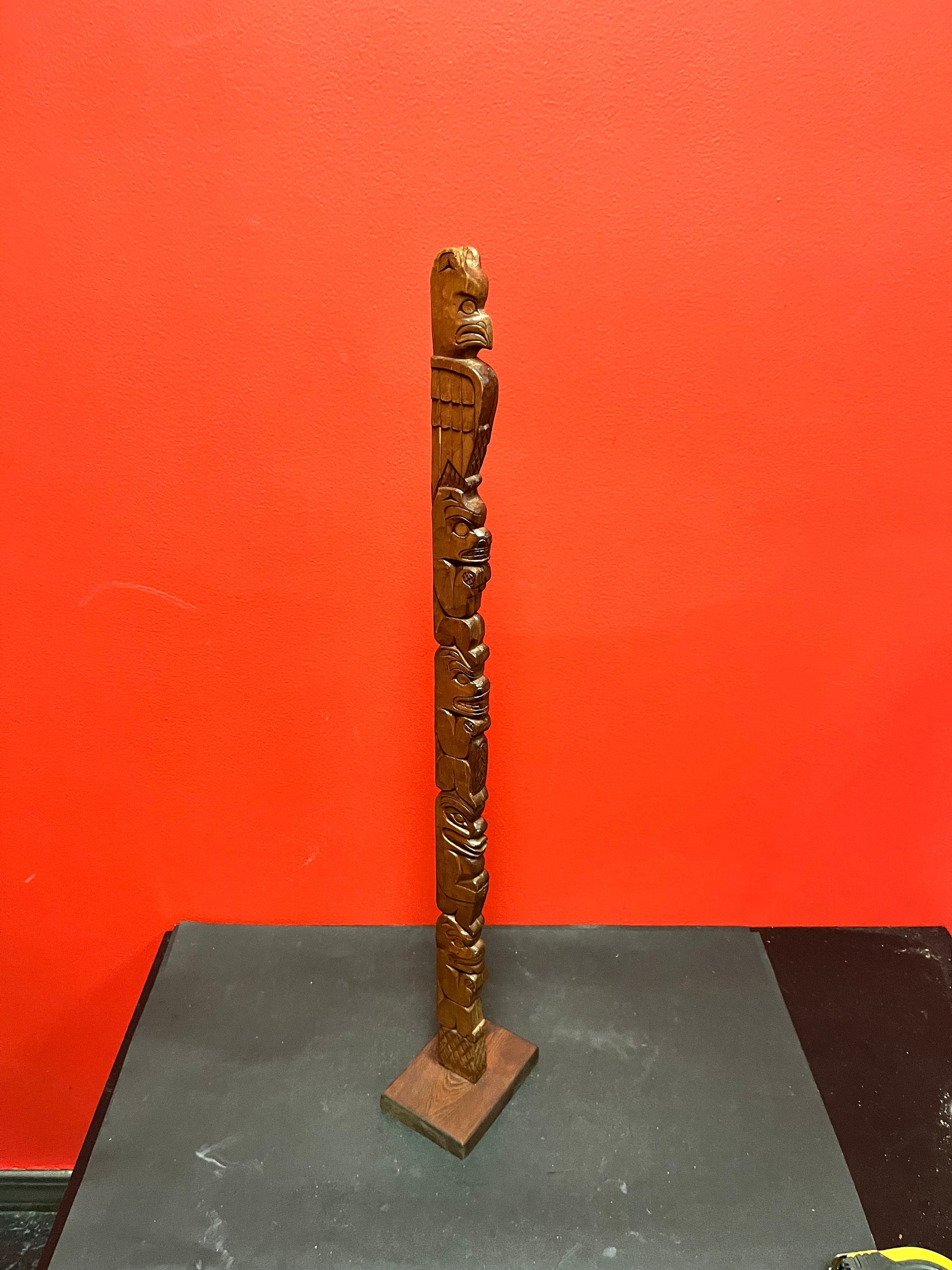 Stunning 25 inch tall transformation totem pole signed beauty indigenous first nations Pacific northwest Coast intense detail
