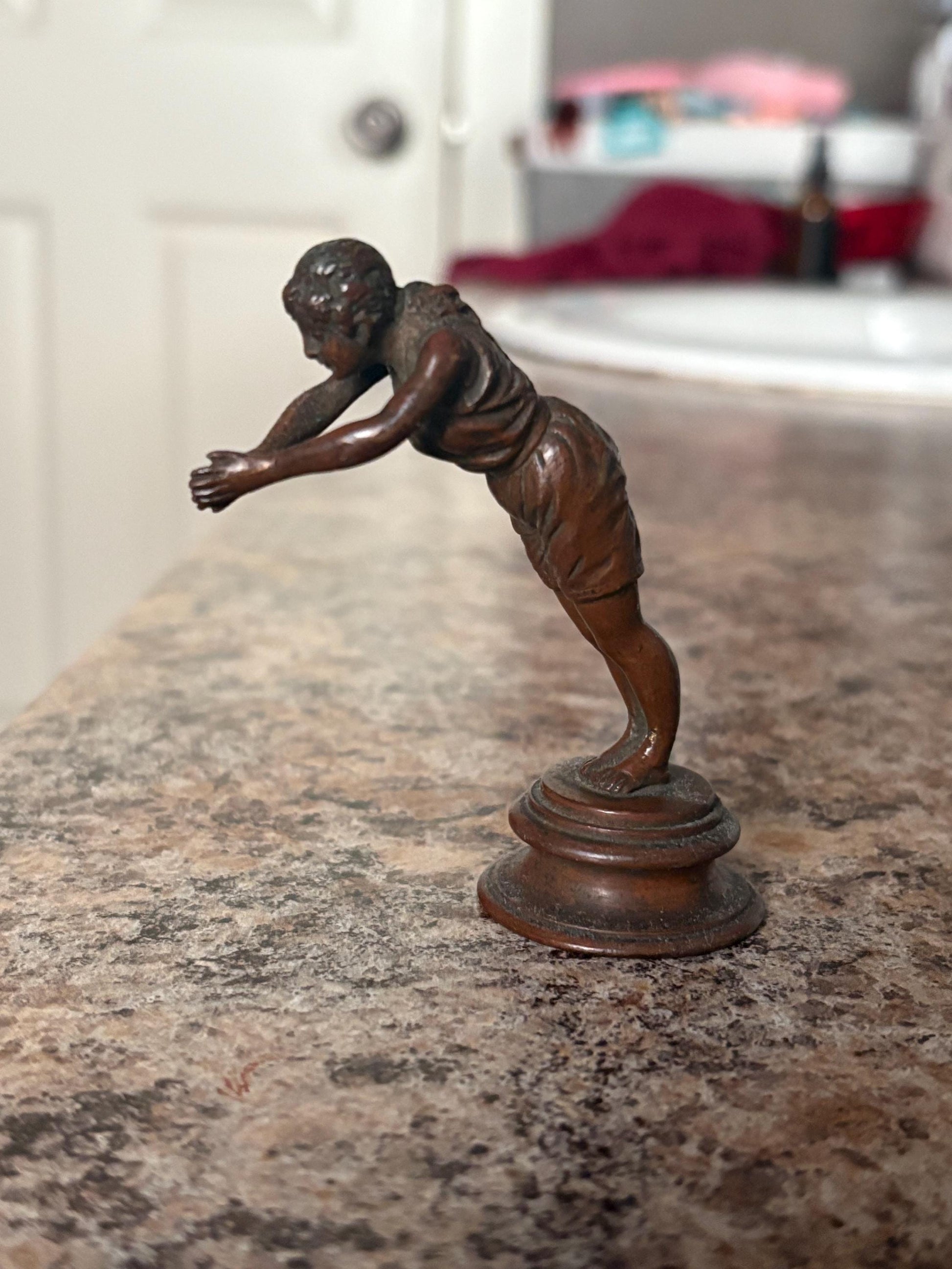 Stunning 3 1/2 inch tall European antique bronze of a lady diving amazing detail and patina perfect for your cabinet or as a gift