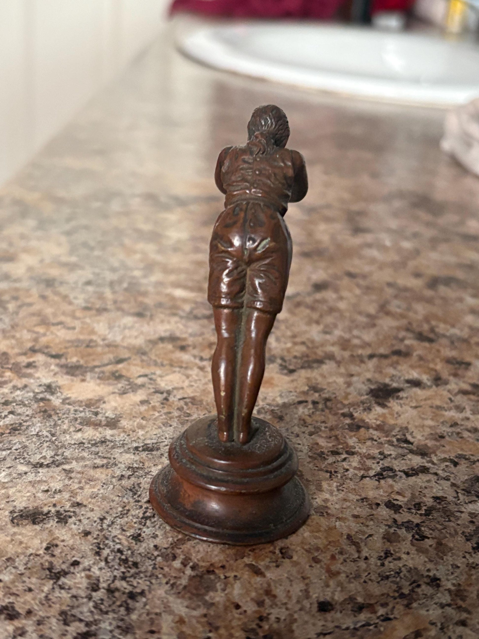 Stunning 3 1/2 inch tall European antique bronze of a lady diving  — amazing detail and patina — perfect for your cabinet or as a gift