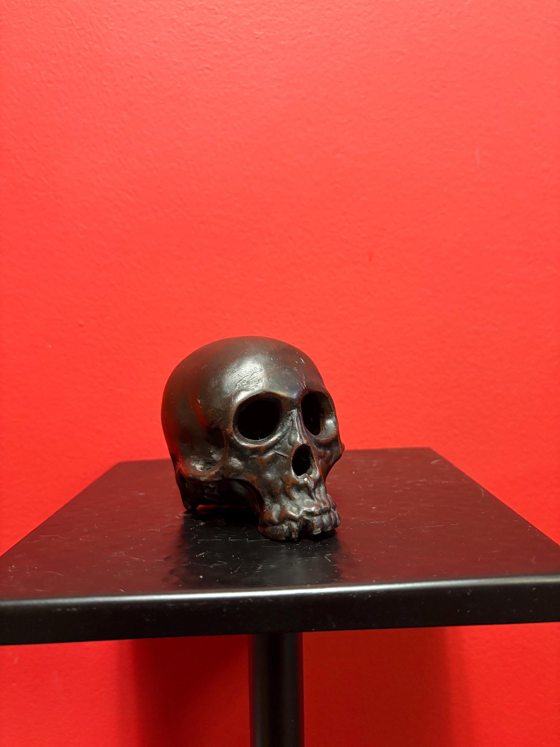 Stunning 3 inch old bronze skull bust amazing patina very heavy and great detail special piece perfect gift