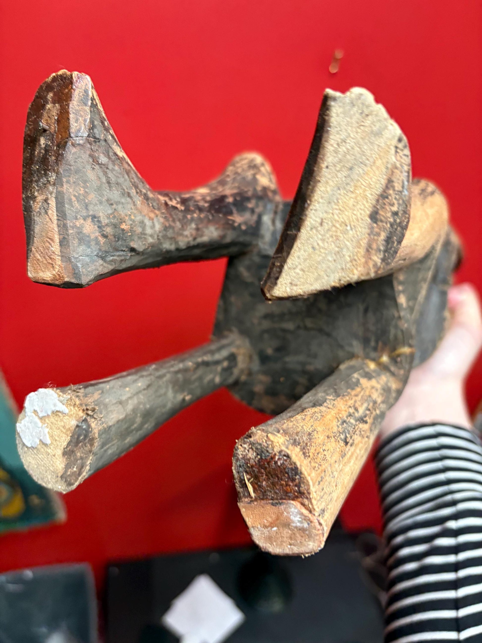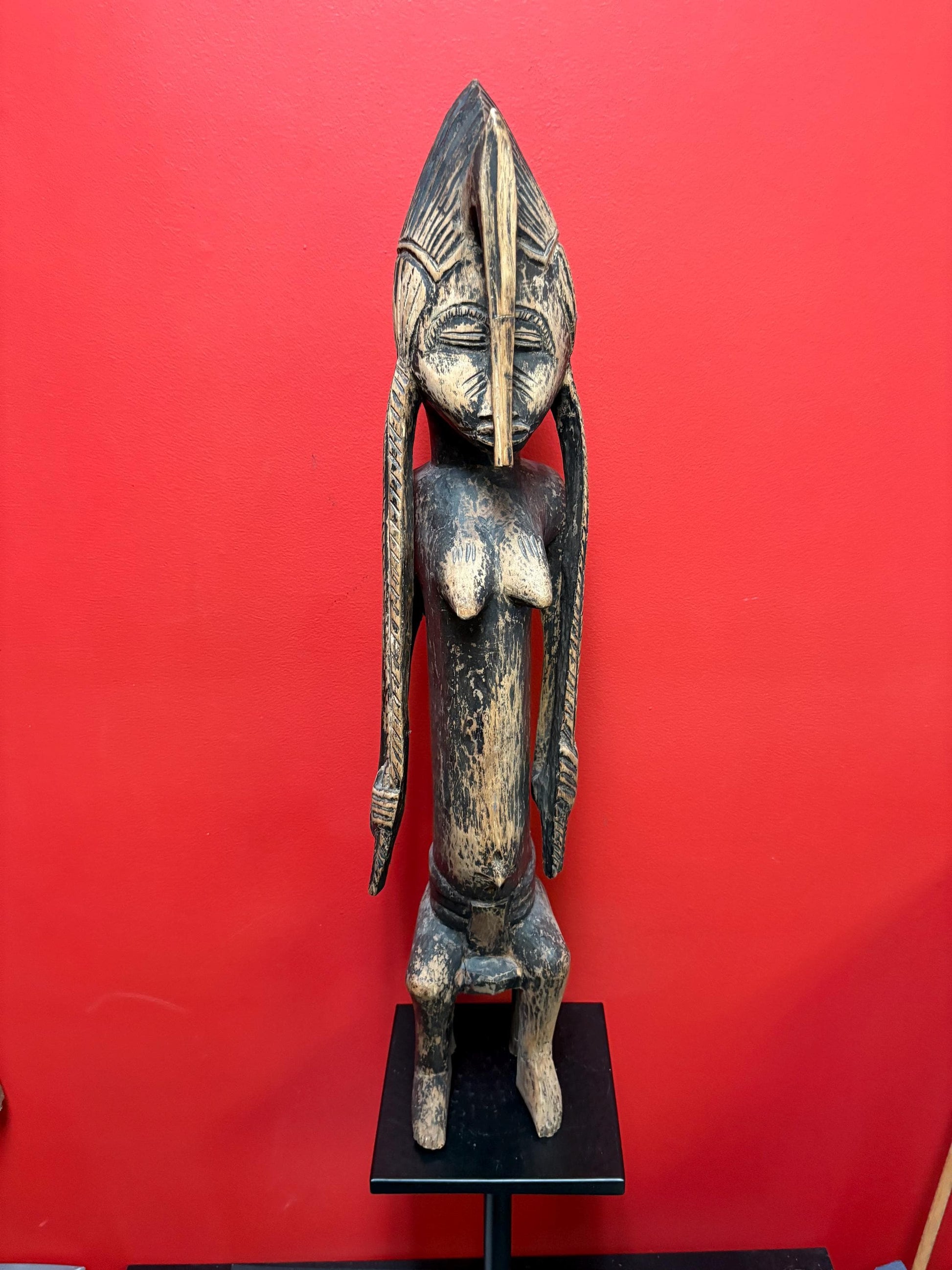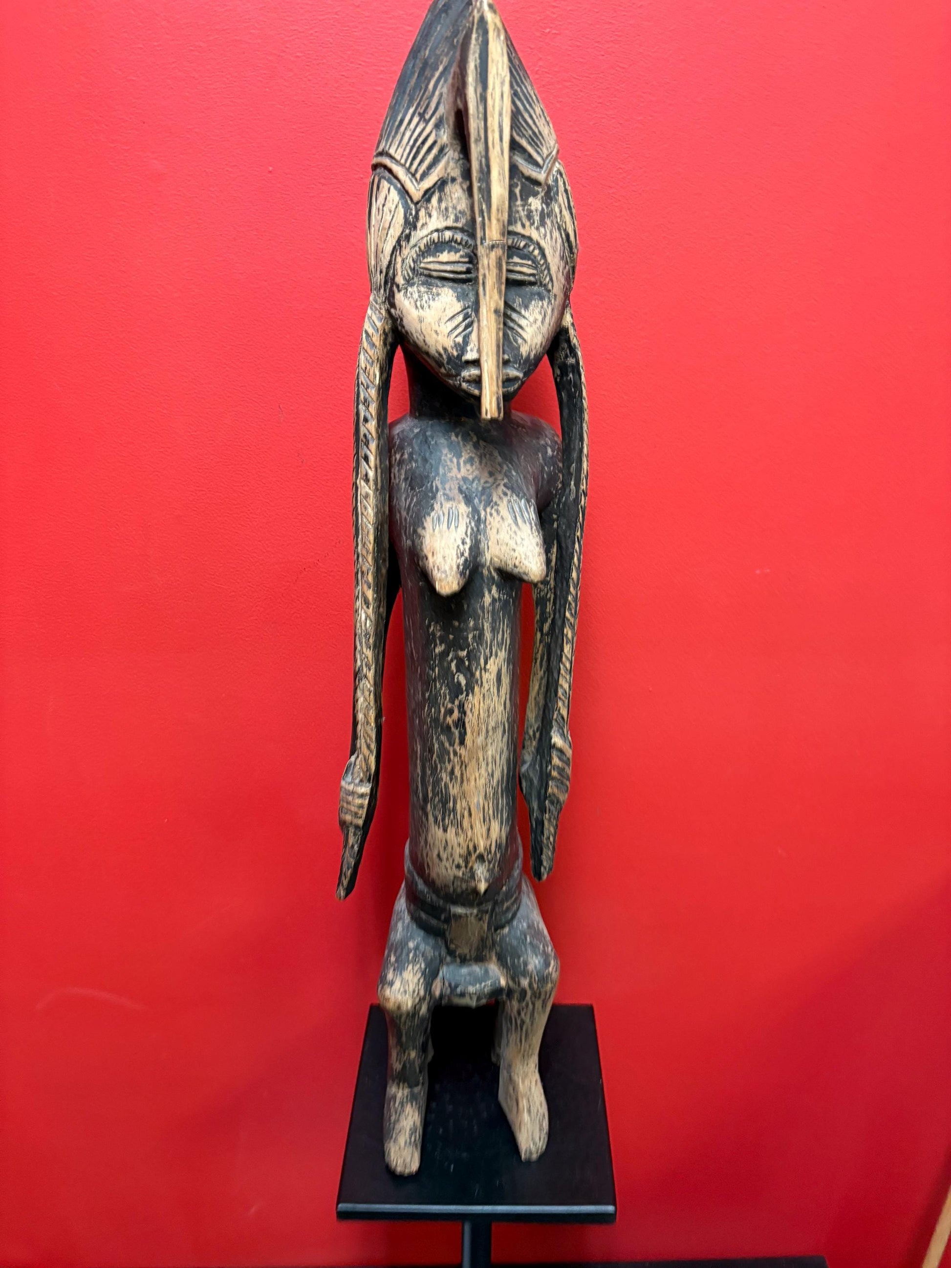 Stunning 32 inch tall antique Nigerian statue of a seated woman - fertility statue great condition see photos old beauty