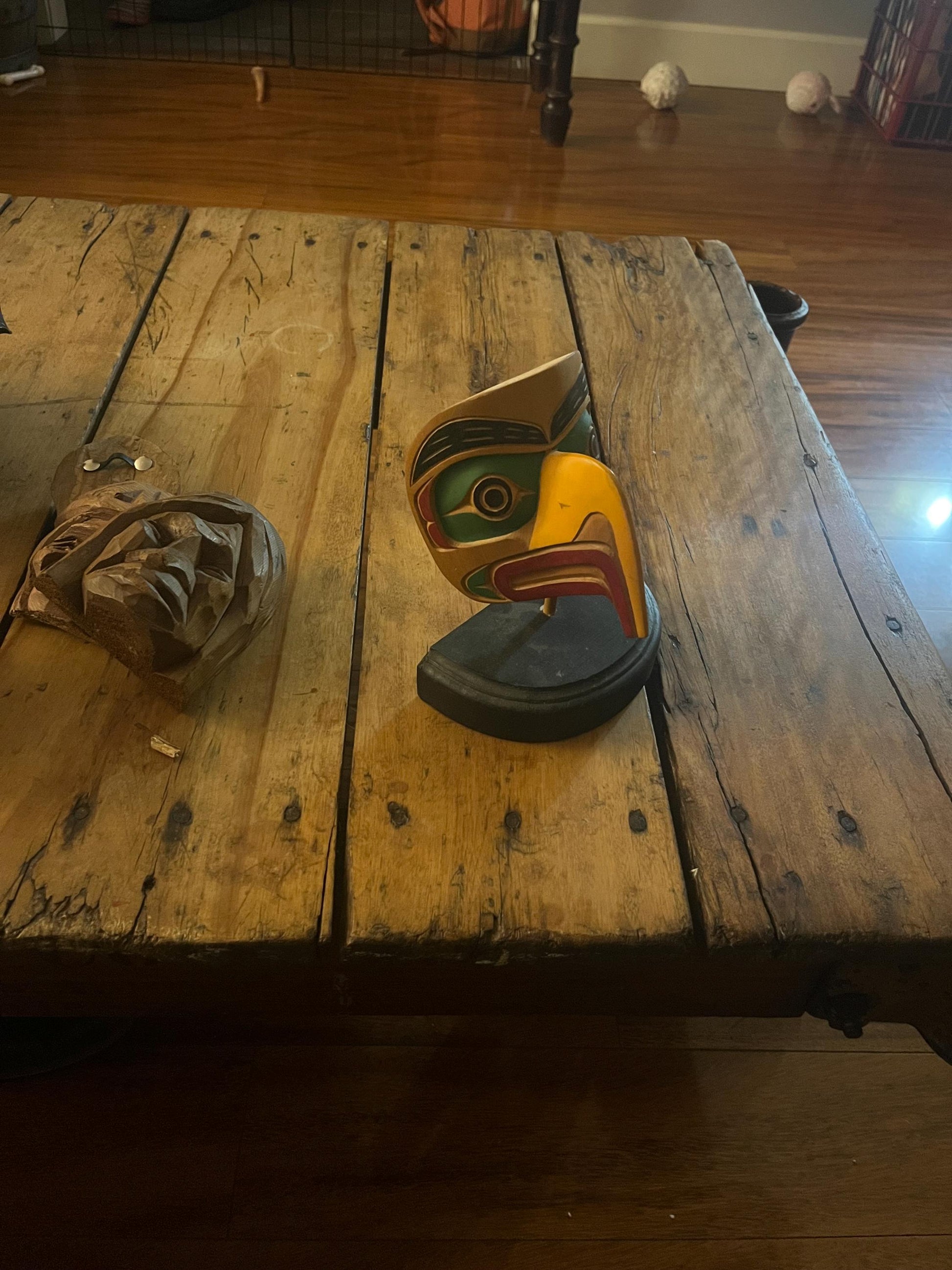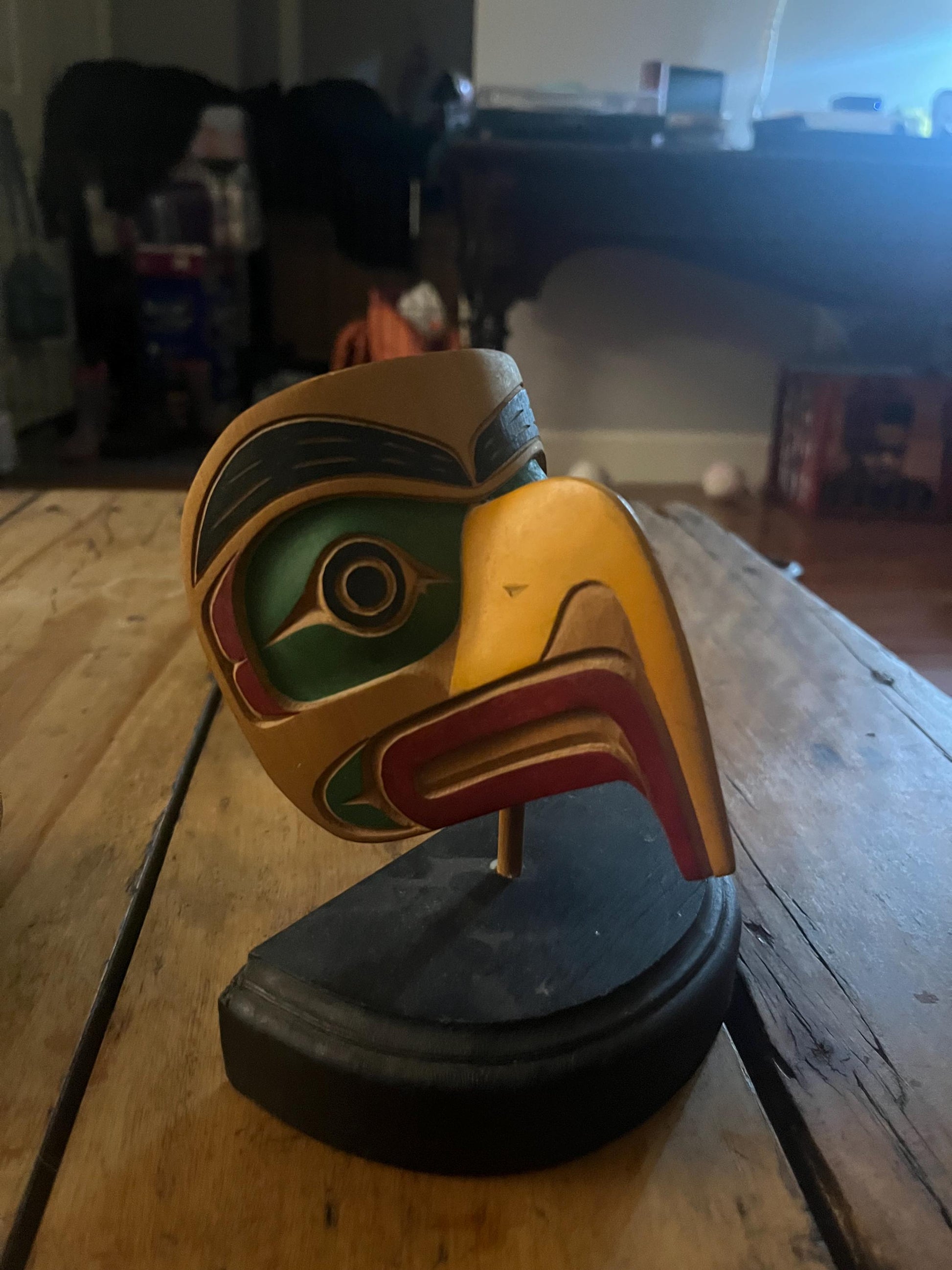 Stunning 7 inch indigenous first nations Pacific Northwest painted mask on stand amazing detail and quality wow
