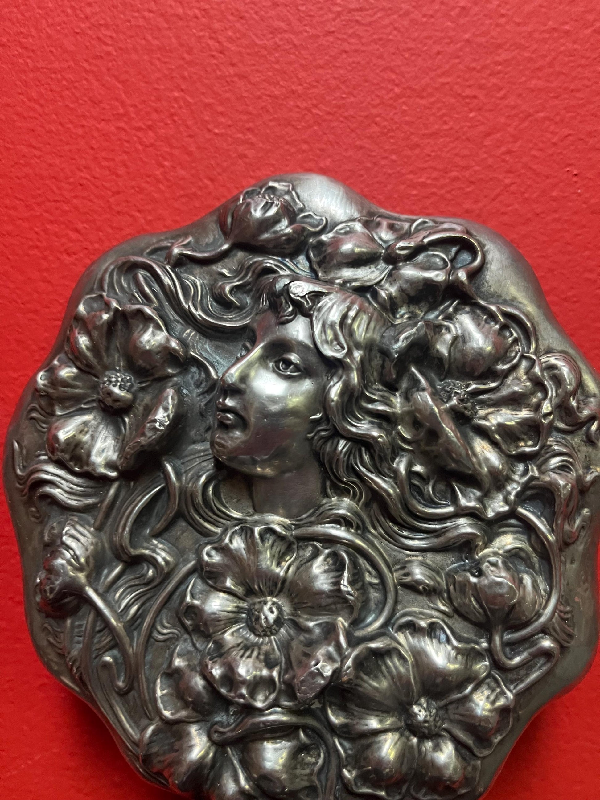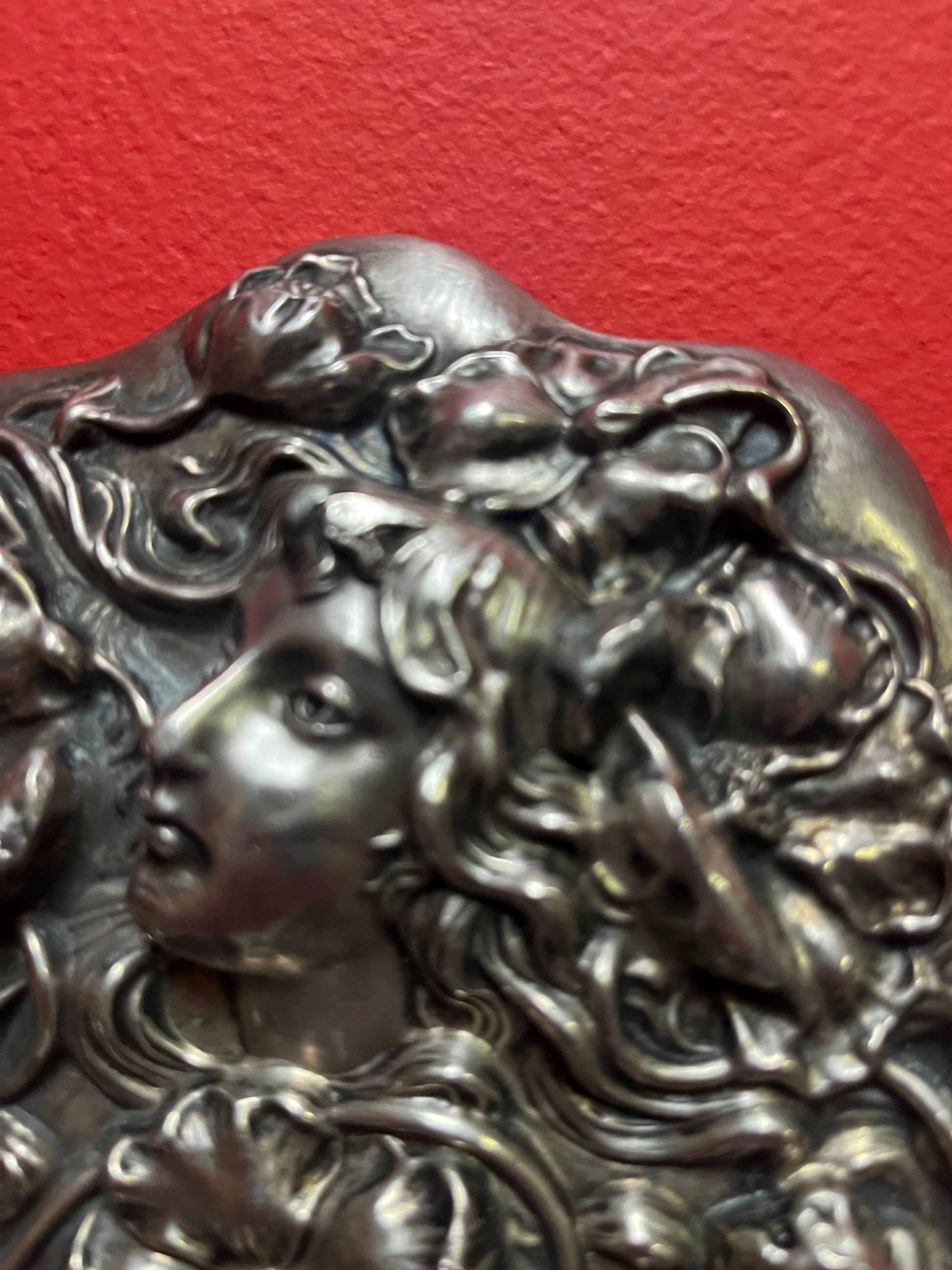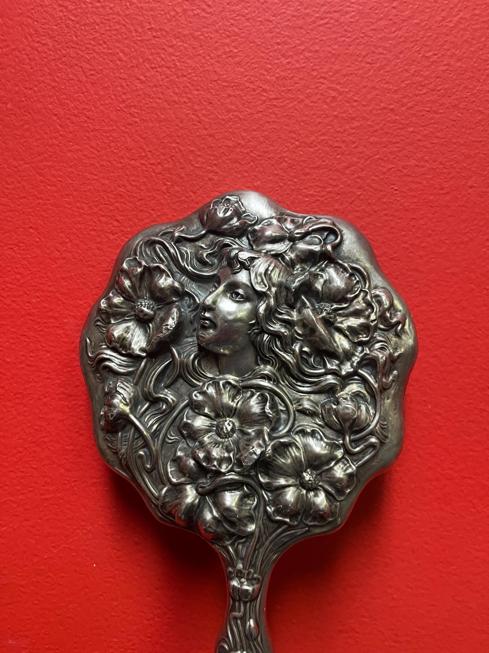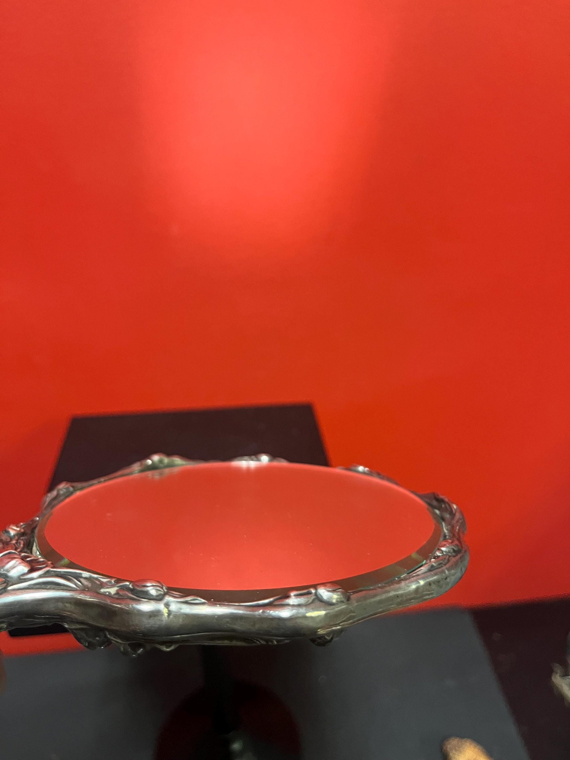 Stunning 9.5 inch long 1910 American sterling hand mirror with embossed flowers tiny tiny dents around the edge - great gift and great value - B